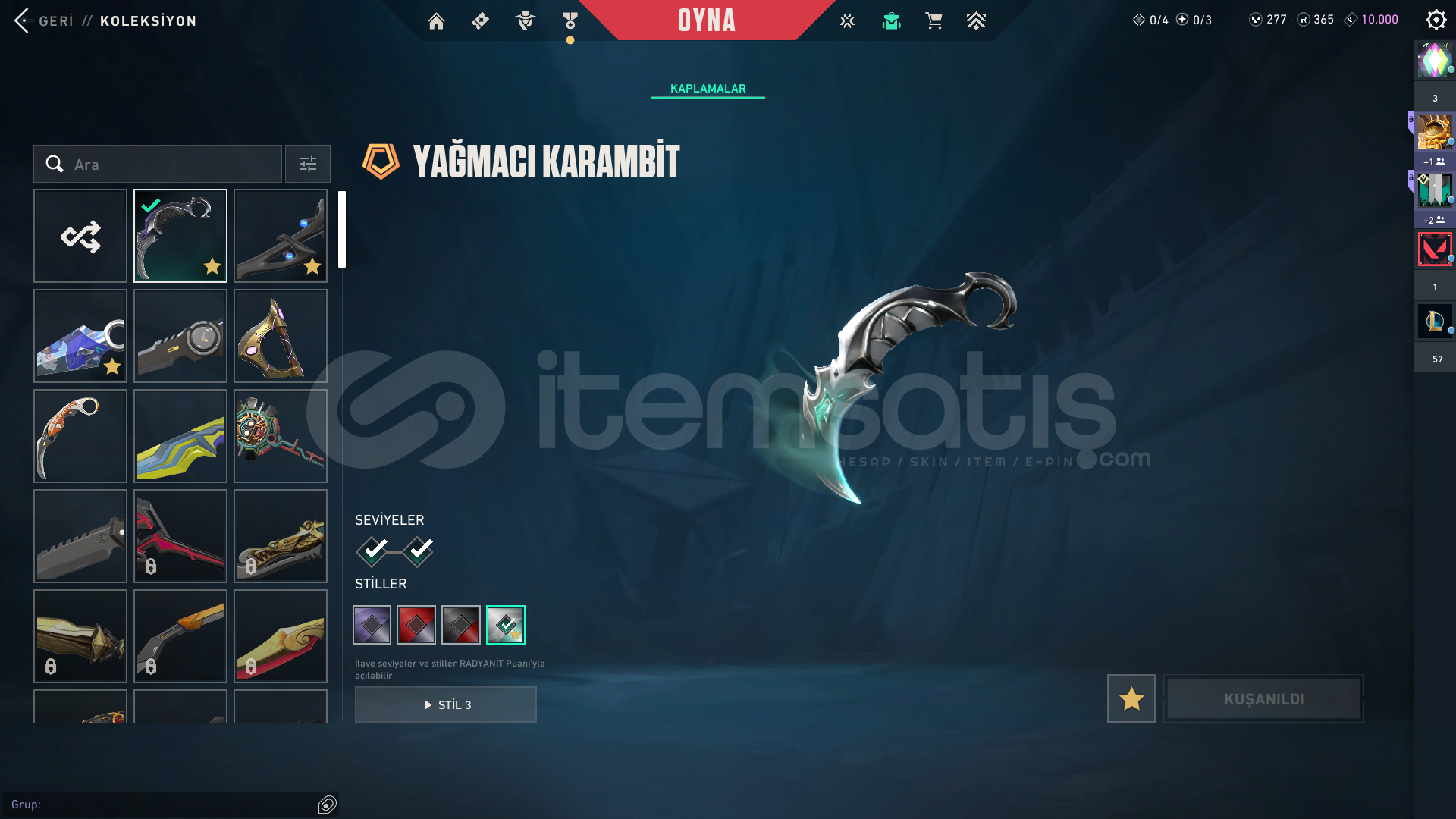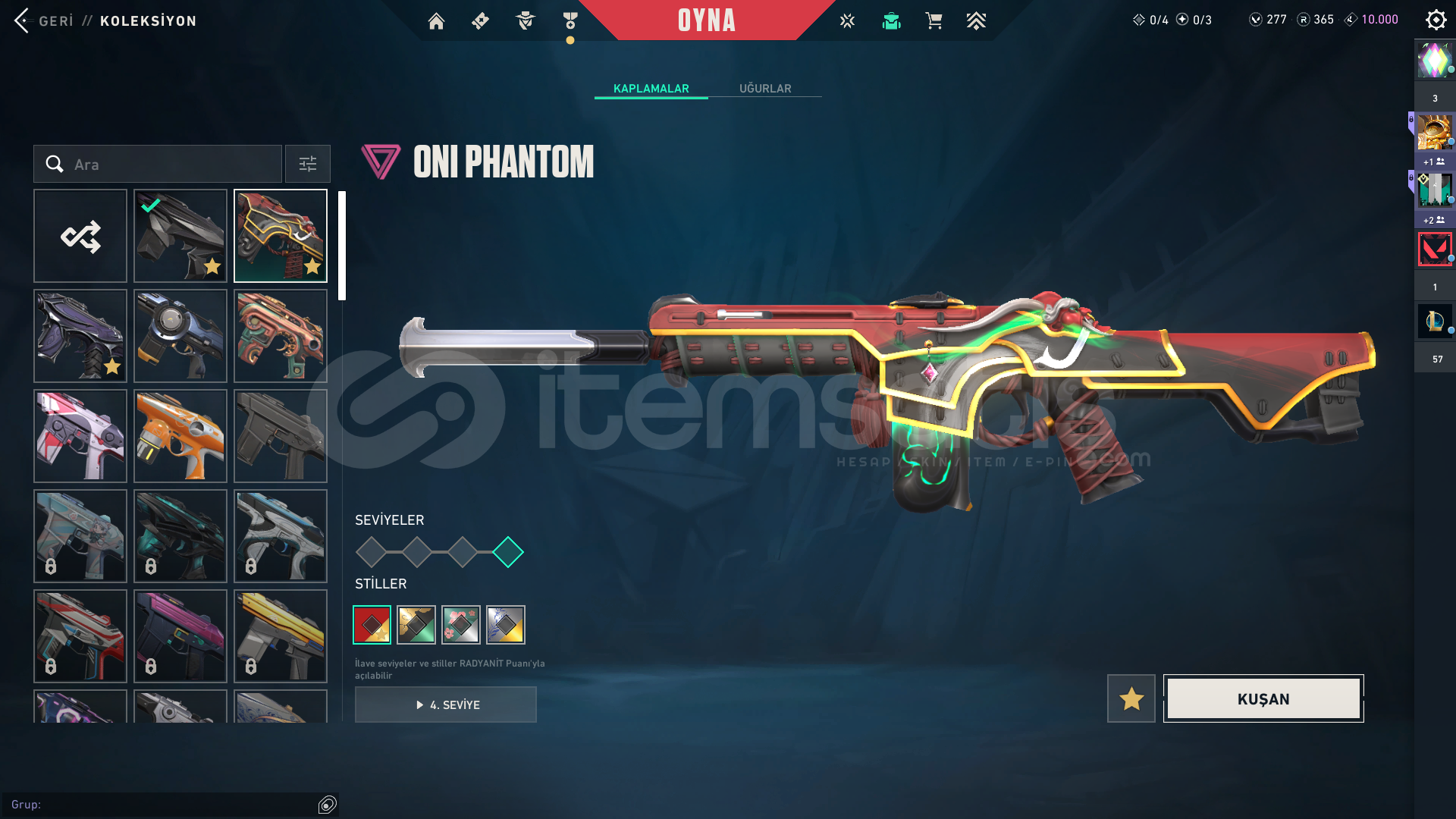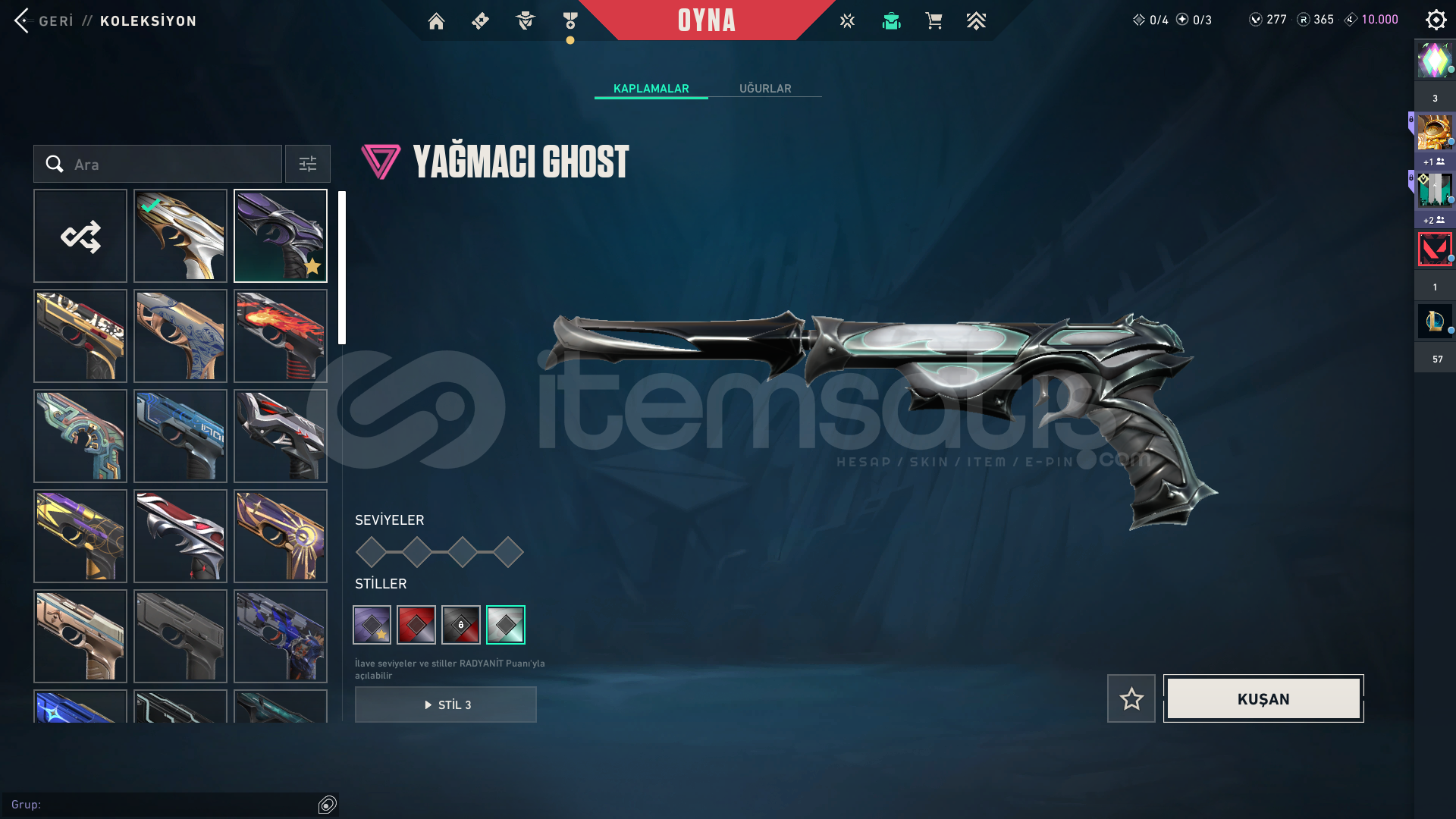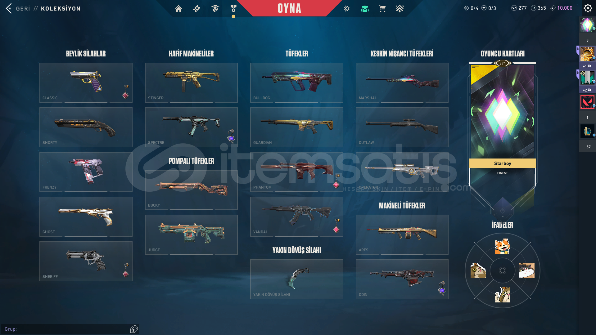 TABANCALAR: ASİL CLASSİC, AMAZON SHORTY, FATİH VE YAĞMACI GHOST, YAĞMACI SHERİFFSİLAHLAR: YAĞMACI SPECTRE1-ONİ PHANTOM2-ANOMALİ PHANTOM3-YAĞMACI PHANTOM VANDALLAR1-RGX VANDAL2-ASİL VANDAL3-IŞIK MUHAFIZI VANDAL4-EJDER VANDAL OPERATÖR1-KÖKEN OPERATÖR ODİN1-YAĞMACI ODİN BIÇAKLAR1-YAĞMACI KARAMBİT2-VALORANT GO 1.CİLT3-SARMAL HANÇER2 sezon immo bitirdim kendi hesabım bebek ...