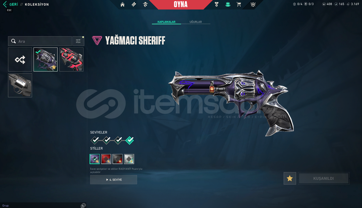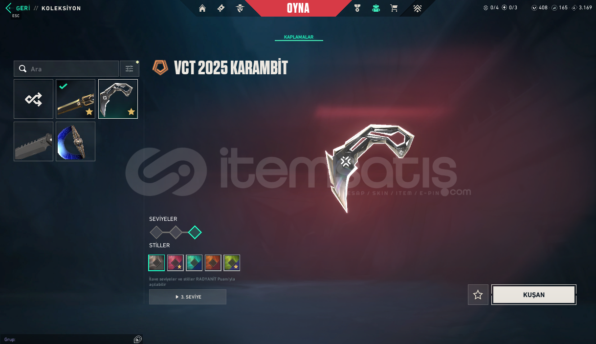 RANK:UNRANKEDSUNUCU:EULEVEL: 63ENVANTER DEĞERİ: 22,425 VP Terminus A QuoVCT 2025 KarambitChampions 2025 VandalSentinels of Light VandalChampions 2025 Butterfly KnifeReaver SheriffXenohunter PhantomForsaken ClassicByteshift JudgeMinima Spectre.SYS SheriffByteshift Vandal.SYS BuckyTeam Ace PhantomHue Shift ShortyRefractrix StingerCoalition: Cobra JudgeDoom Wing OdinDoom Wing ShortyRefractrix ClassicDoom Wing MarshalHue Shift BulldogRefractrix GuardianCoalition: Cobra OdinTOPLAM VALO...