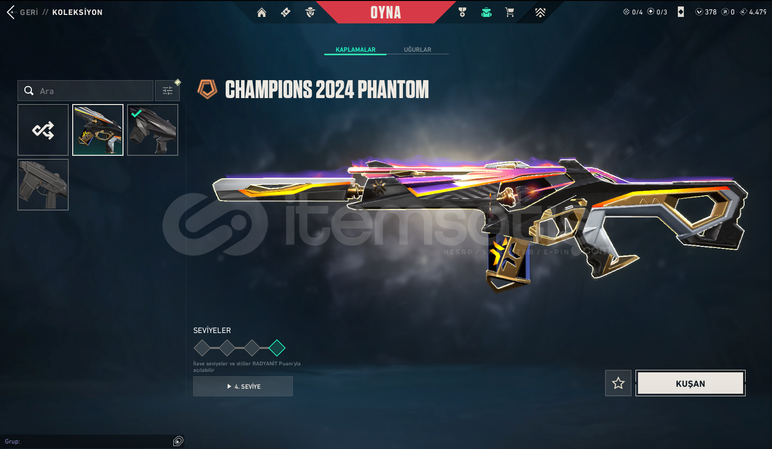 RANK:UNRANKEDNOT:EU TR GİRER /AKTİF OYNUYORUM EU TR GİRER HİÇBİR FARKI YOKTURLEVEL: 90ENVANTER DEĞERİ: 30,272 VP Singularity VandalSingularity GhostChampions 2024 PhantomDivergence VandalKuronami VandalSingularity SheriffChampions 2024 BladeSingularity PhantomSingularity Butterfly KnifeSingularity SpectreBubble Pop ClassicComet GhostOverlay SheriffTOPLAM VALORANTTA:13 SkinTOPLAM LOLDE:100 SKİN🧨 Ürün Açıklamas&...