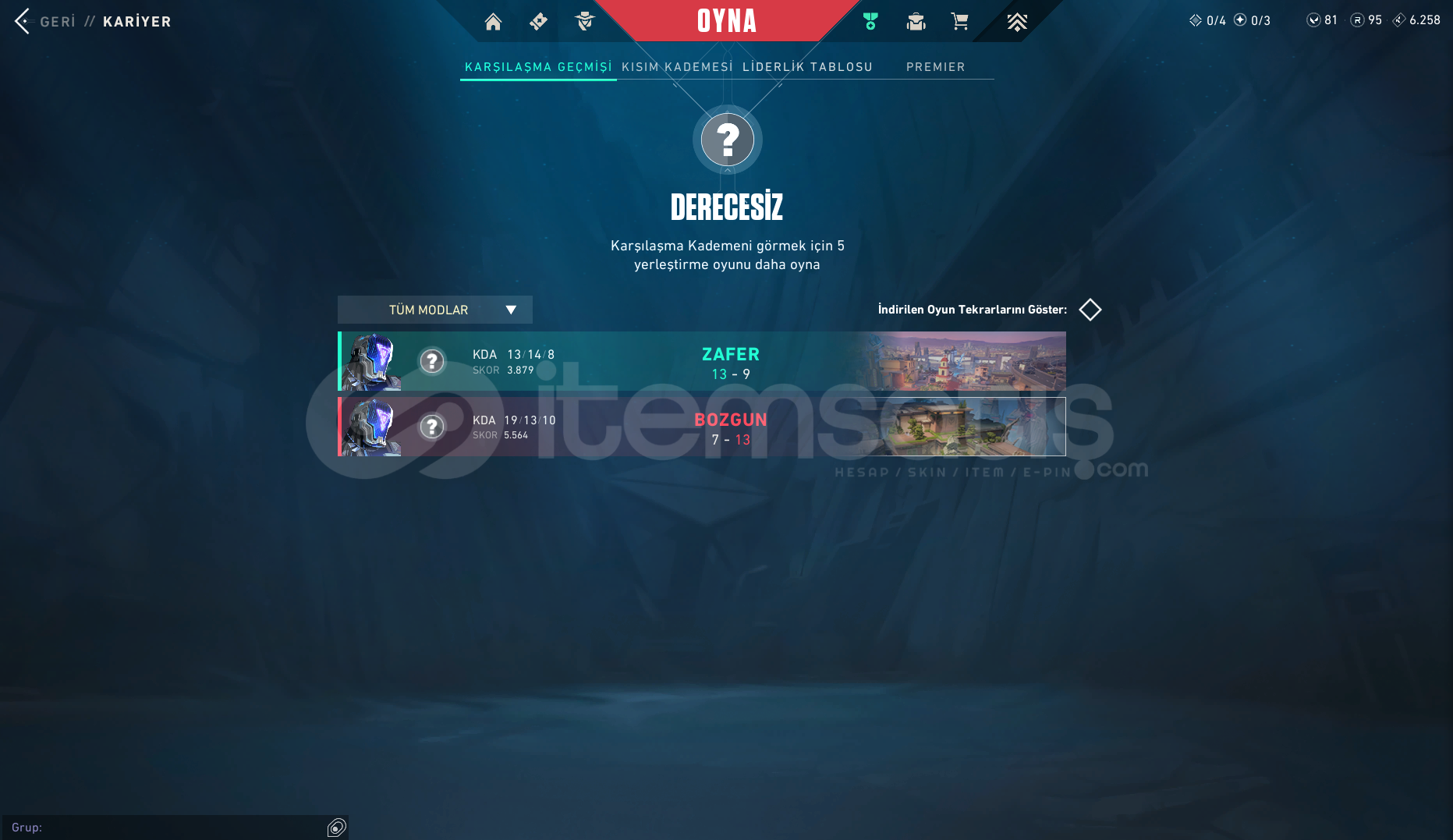 • Rank: Unranked | Hesap Seviyesi: 169