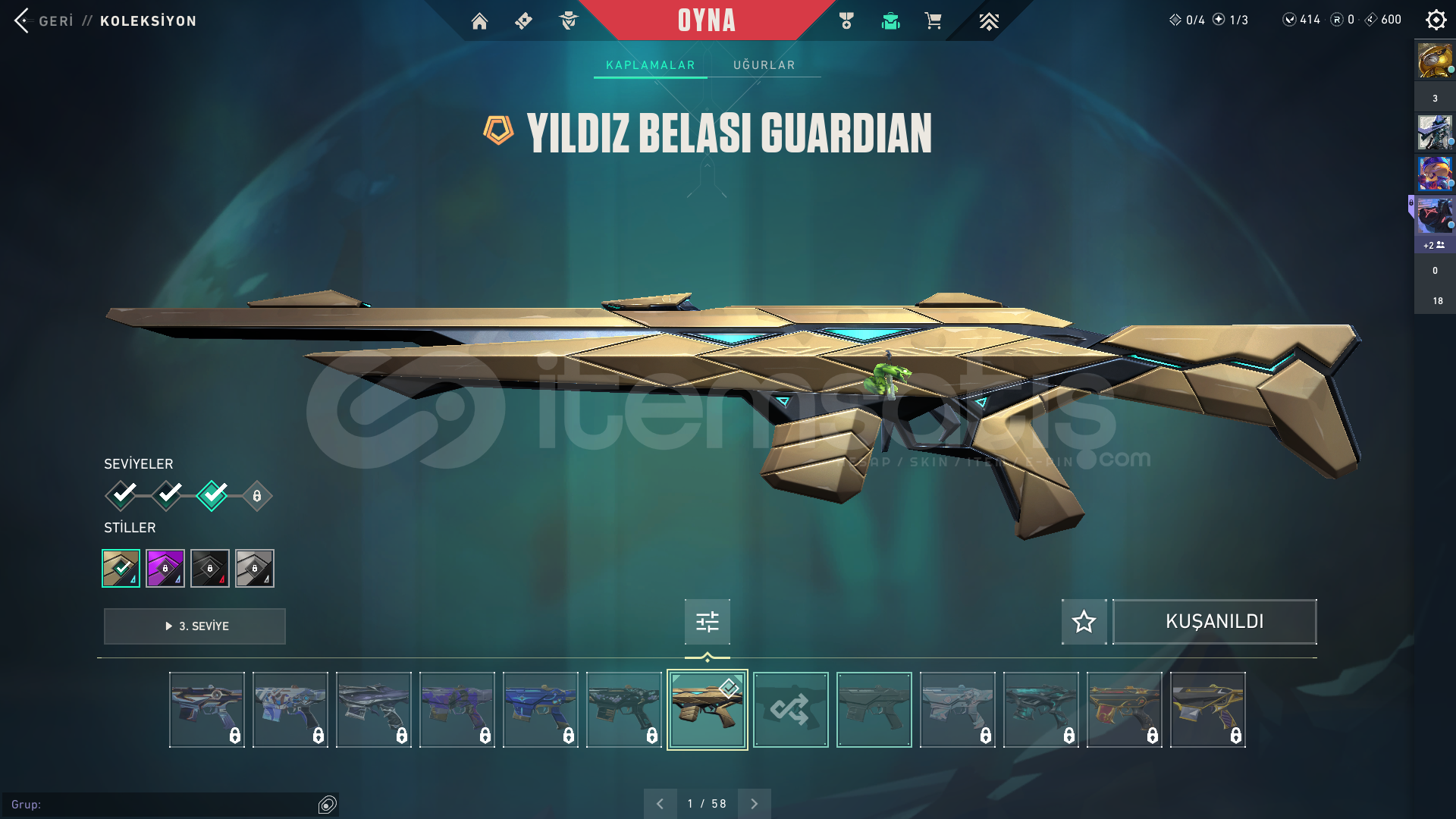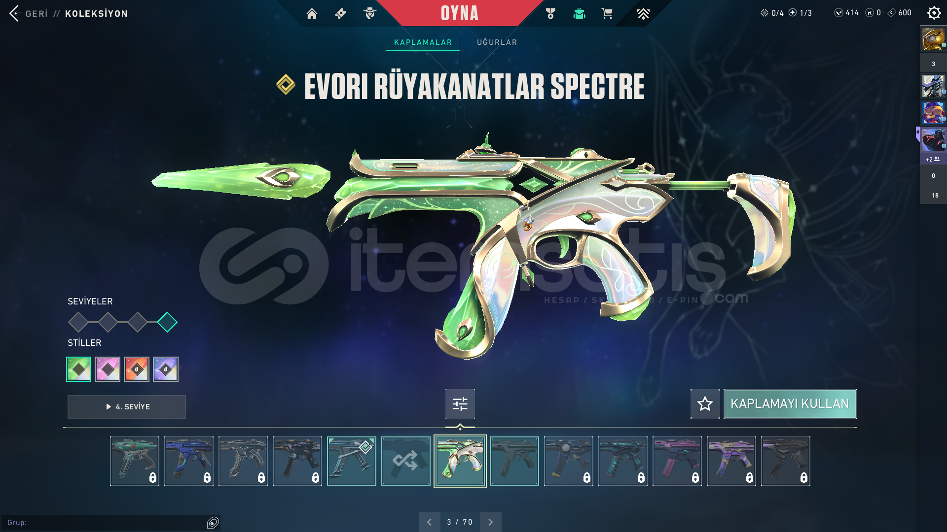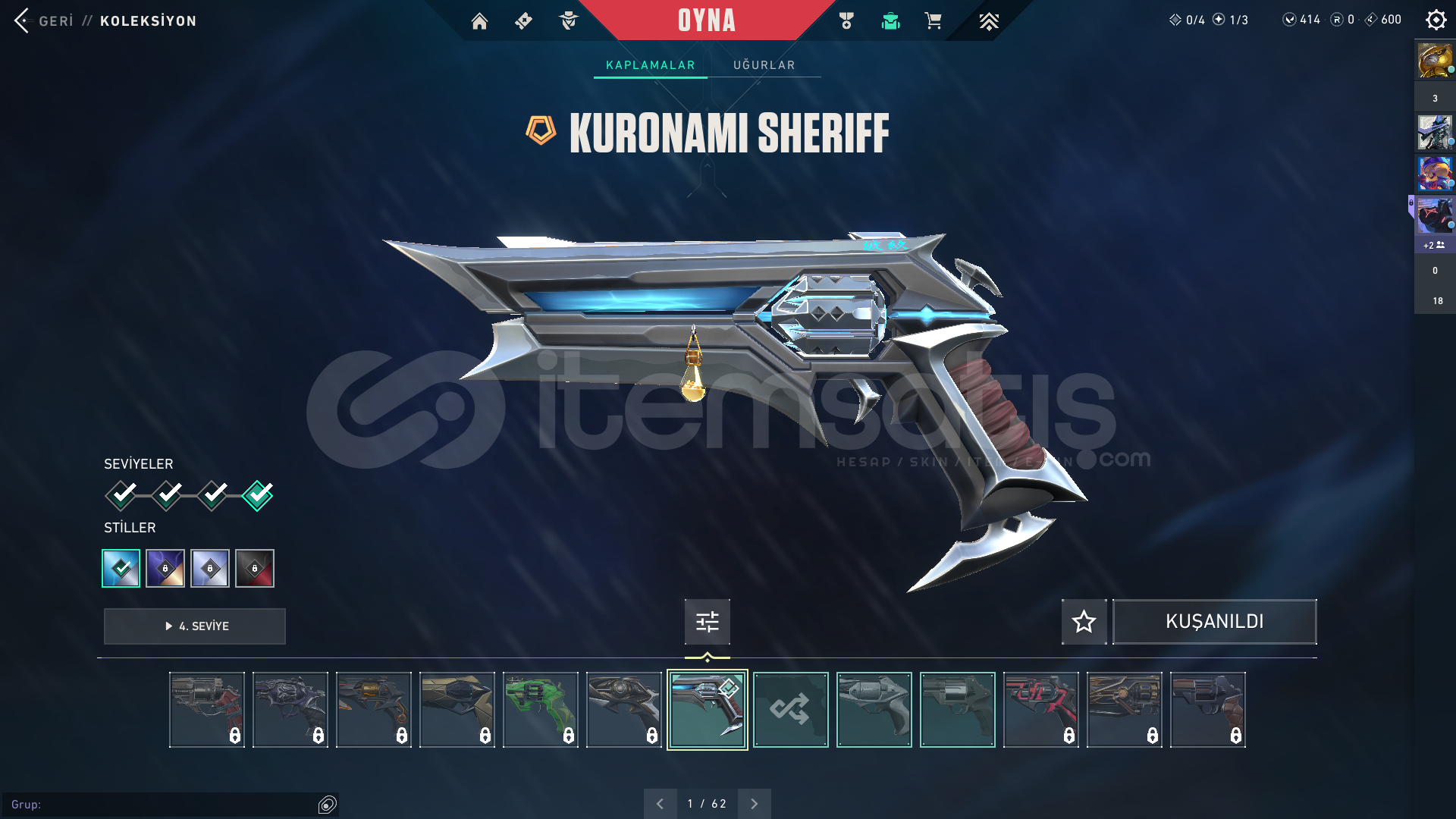 Merhaba 44K VP harcanmış hesabımızla ilgili detaylar aşağıda verilmiştir.İlan şuanda indirimdedir fırsatı kaçırmayın.> Sunucu: EU ( İstanbul sunucusuna girer. )> Rank: Unranked> Level: 52> Envanter Değeri ve Envanter Hakkında: 44.000+ VP - 23 SKİNRadiant Entertainment System BulldogRadiant Entertainment System PhantomEvori Dreamwings SpectreKuronami SpectreMagepunk SparkswitchSpectrum PhantomAraxys G...