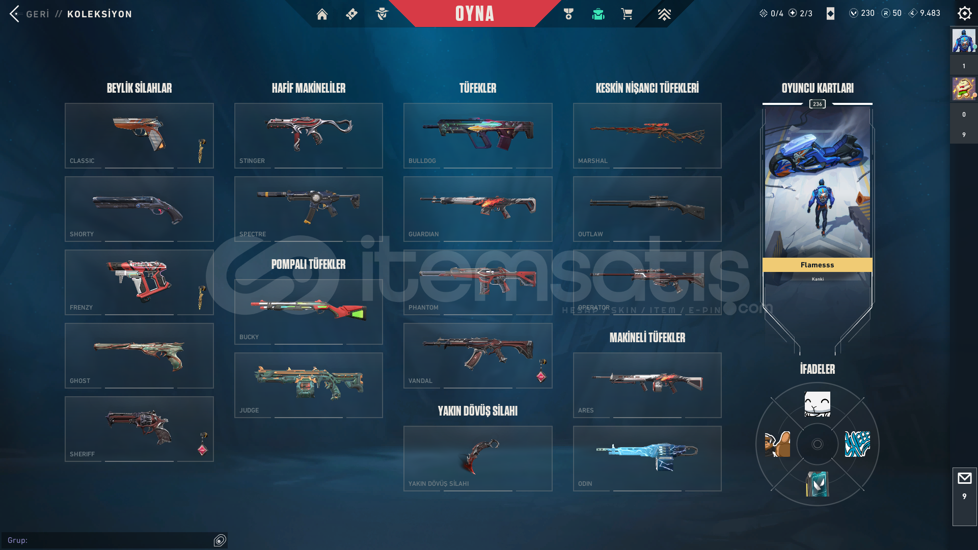 LEVEL = 230RANK = YücelikSUNUCU = TÜRKİYESKİN SAYISI = 106HESAPTAKİ SKİNLER=Phaseguard VandalElderflame VandalVALORANT GO! Vol. 1 KnifeReaver KnifeK/TAC BladeGlitchpop FrenzyStriker KnifeRecon BalisongObsidianaOverdrive VandalBlastX PhantomGlitchpop VandalGravitational Uranium Neuroblaster BatonReaver KarambitSongsteelRGX 11z Pro PhantomPrime ClassicReaver OperatorGaia's Vengeance MarshalReaver VandalOni PhantomPrime VandalSovereign GhostReaver SheriffIon PhantomIon...