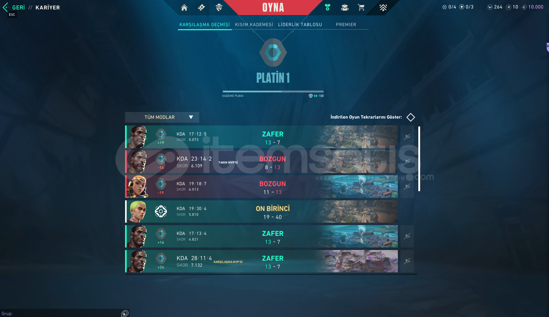 NOT: EU İstanbul sunucusuna girer.RANK: PLAT 1LEVEL: 167ENVANTER DEĞERİ: 69,425 VPElderflame OperatorWaveformGaia's FuryDolmir's Revenge VandalXERØFANG KnifeBlade of SerketImperium OperatorRuination GhostInterhelm SwordRuin DaggerDoombringer SheriffReaver KarambitRecon BalisongSingularity SheriffOutpost MeleeObsidianaTask Force 809 KnifeGlitchpop PhantomVALORANT GO! Vol. 1 KnifeWinterwunderland Candy CaneGaia's Vengeance PhantomIon PhantomPrime ClassicRecon PhantomP...