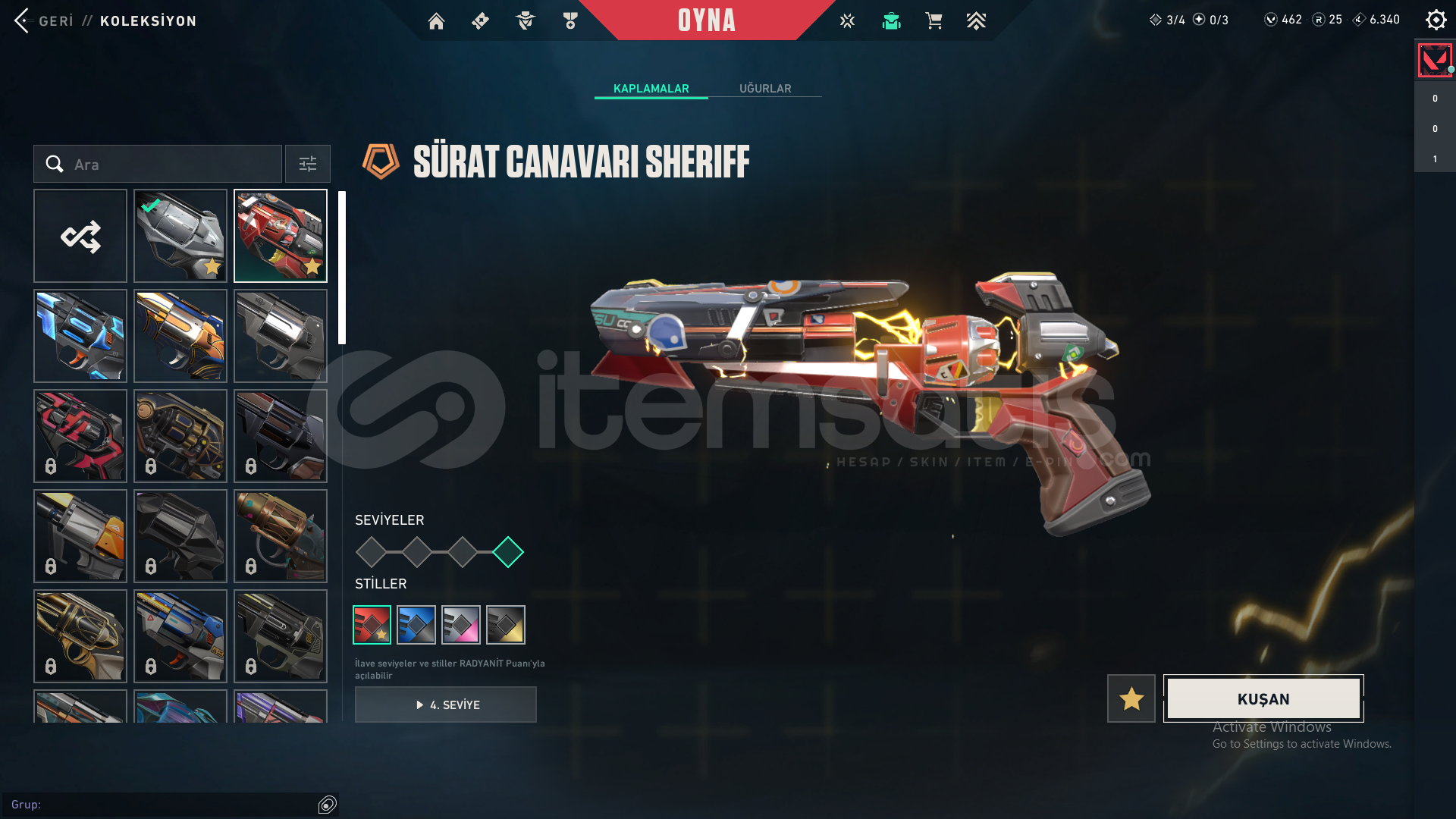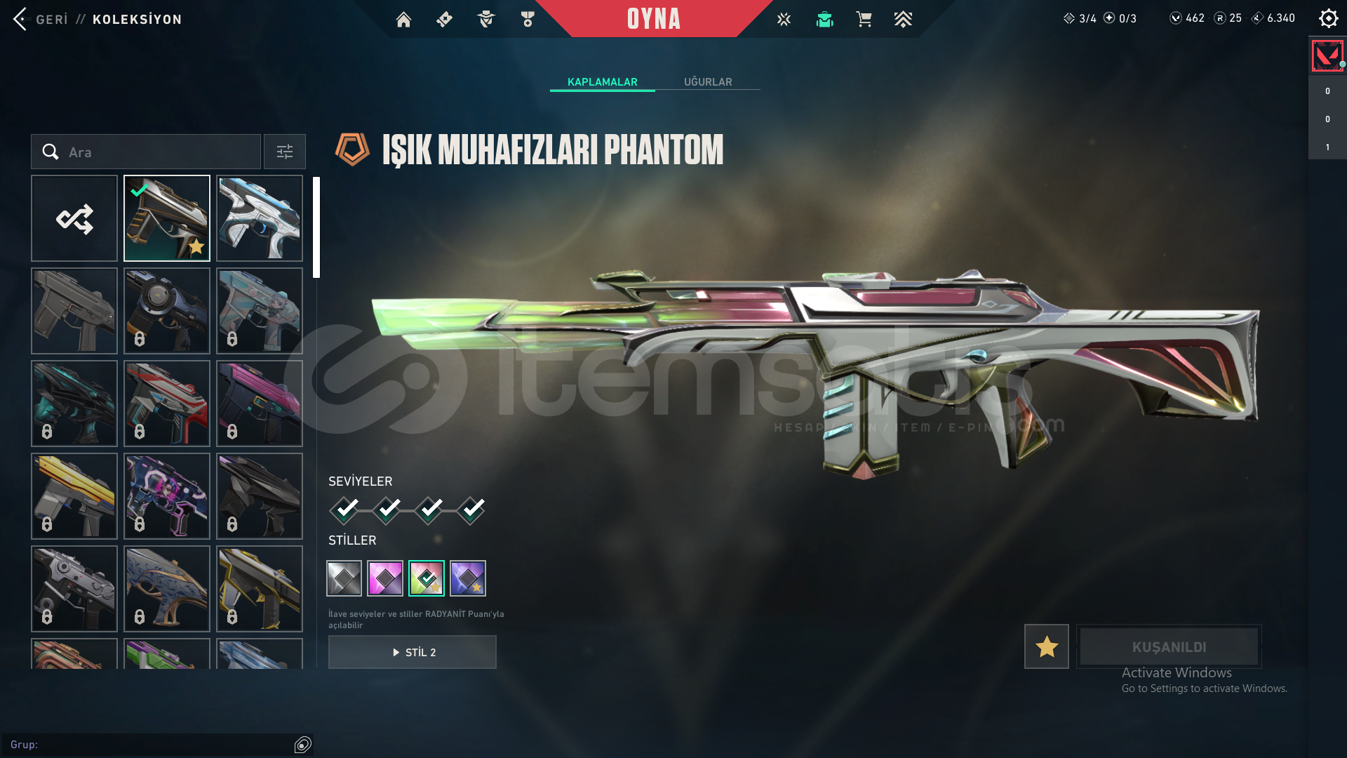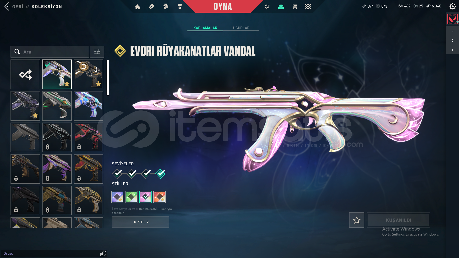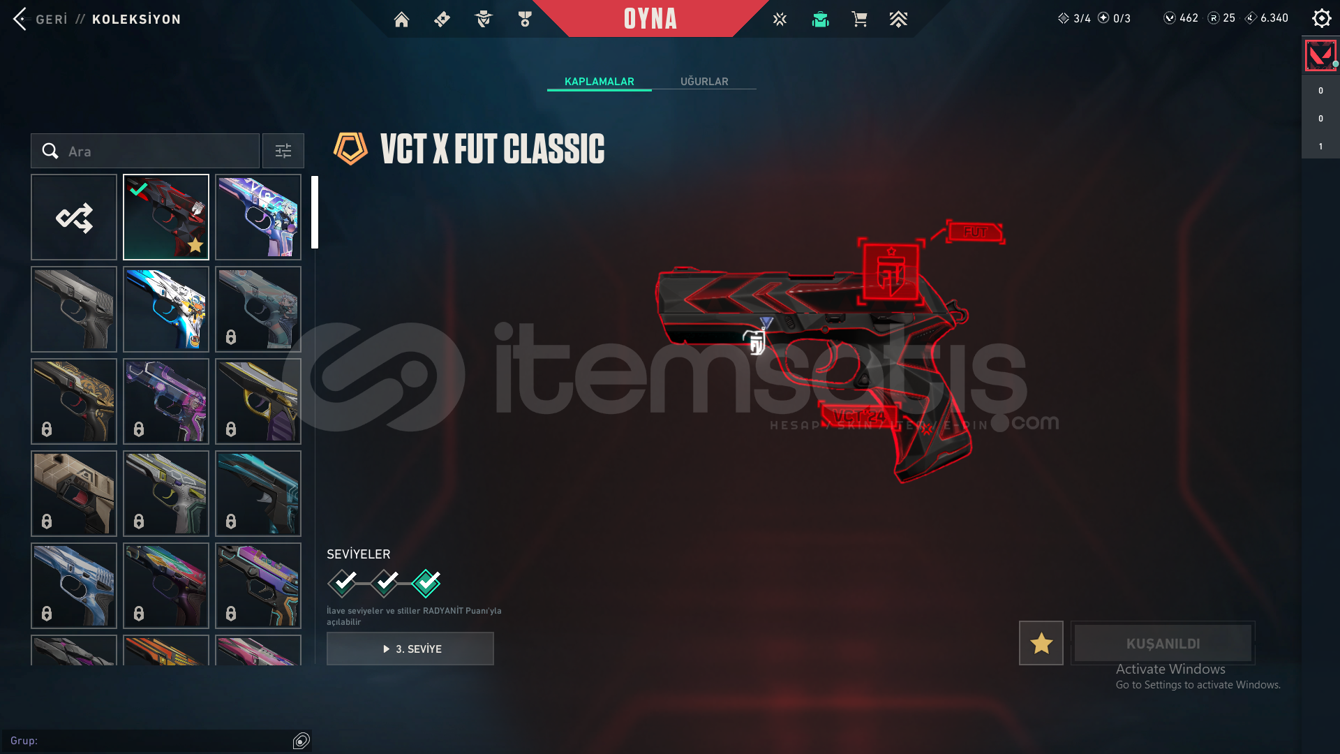 -Evori Rüyakanatlar Vandal-Köken Vandal-Yağmacı Vandal-Işık Muhafızları Phantom-Kuronami No Yaiba-İyon Karambit-Ejder Ateşi Operatör-İyon Sheriff-Sürat Canavarı Sheriff-Evori Rüyakanatlar Ghost-VCT X FUT Classicmail devri yapılcaktır