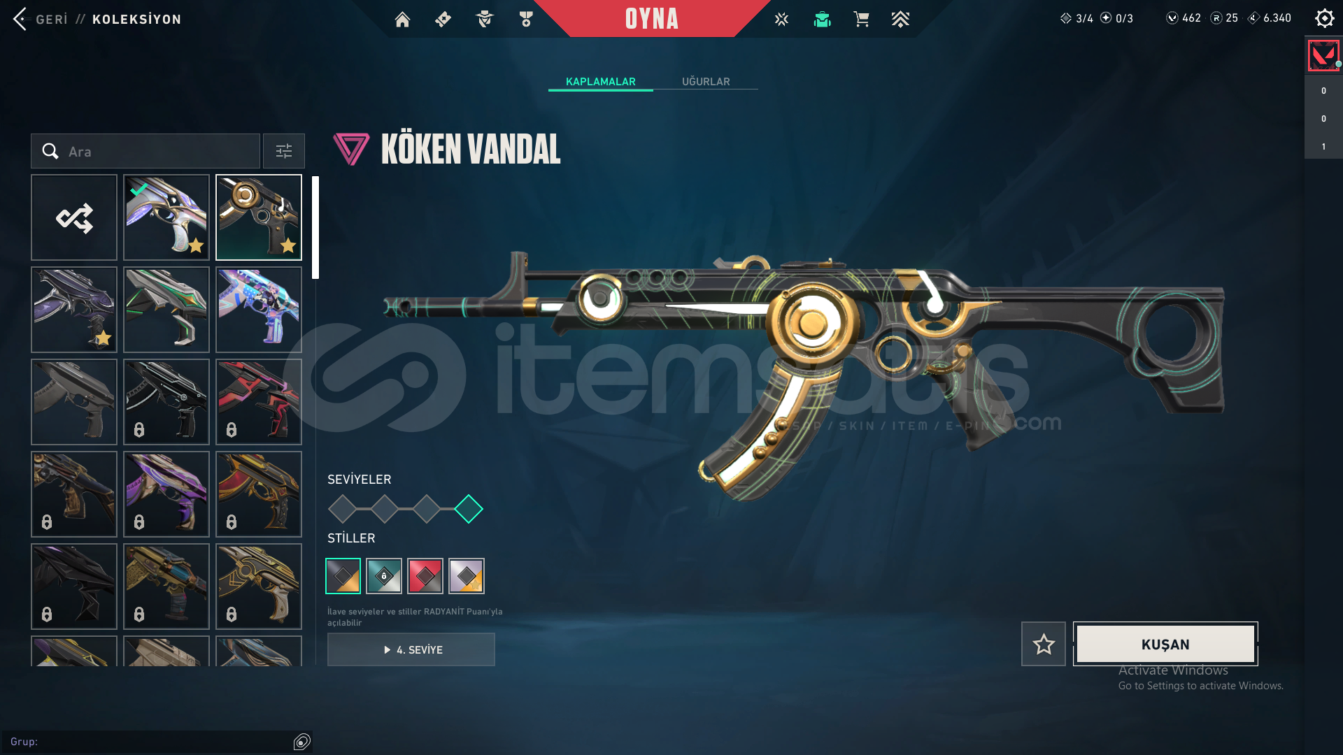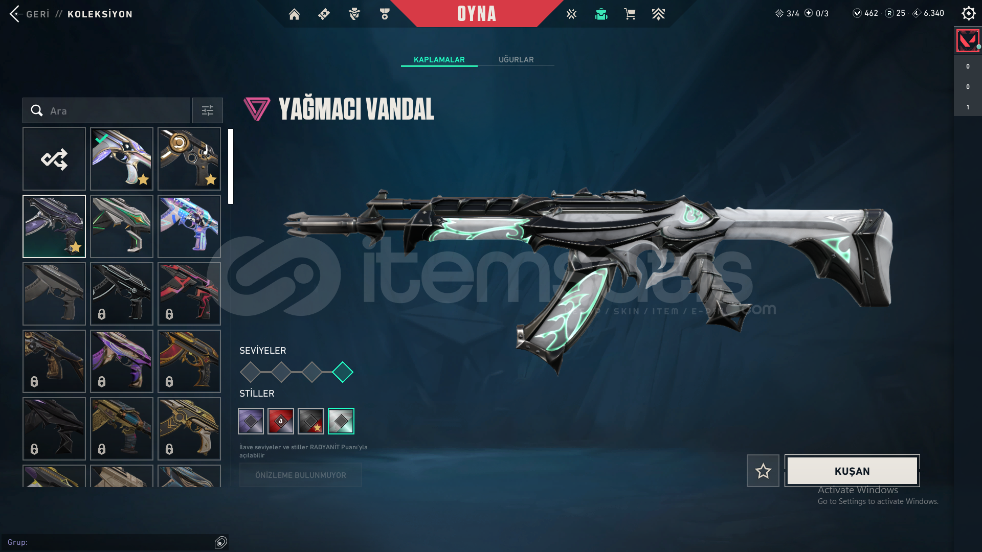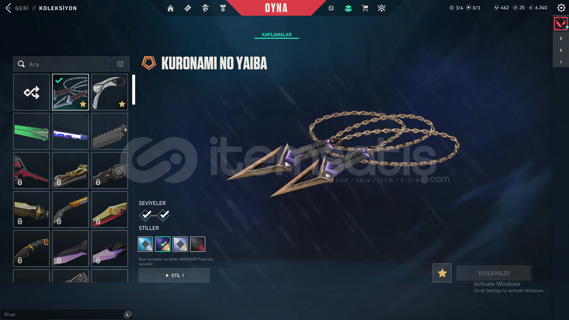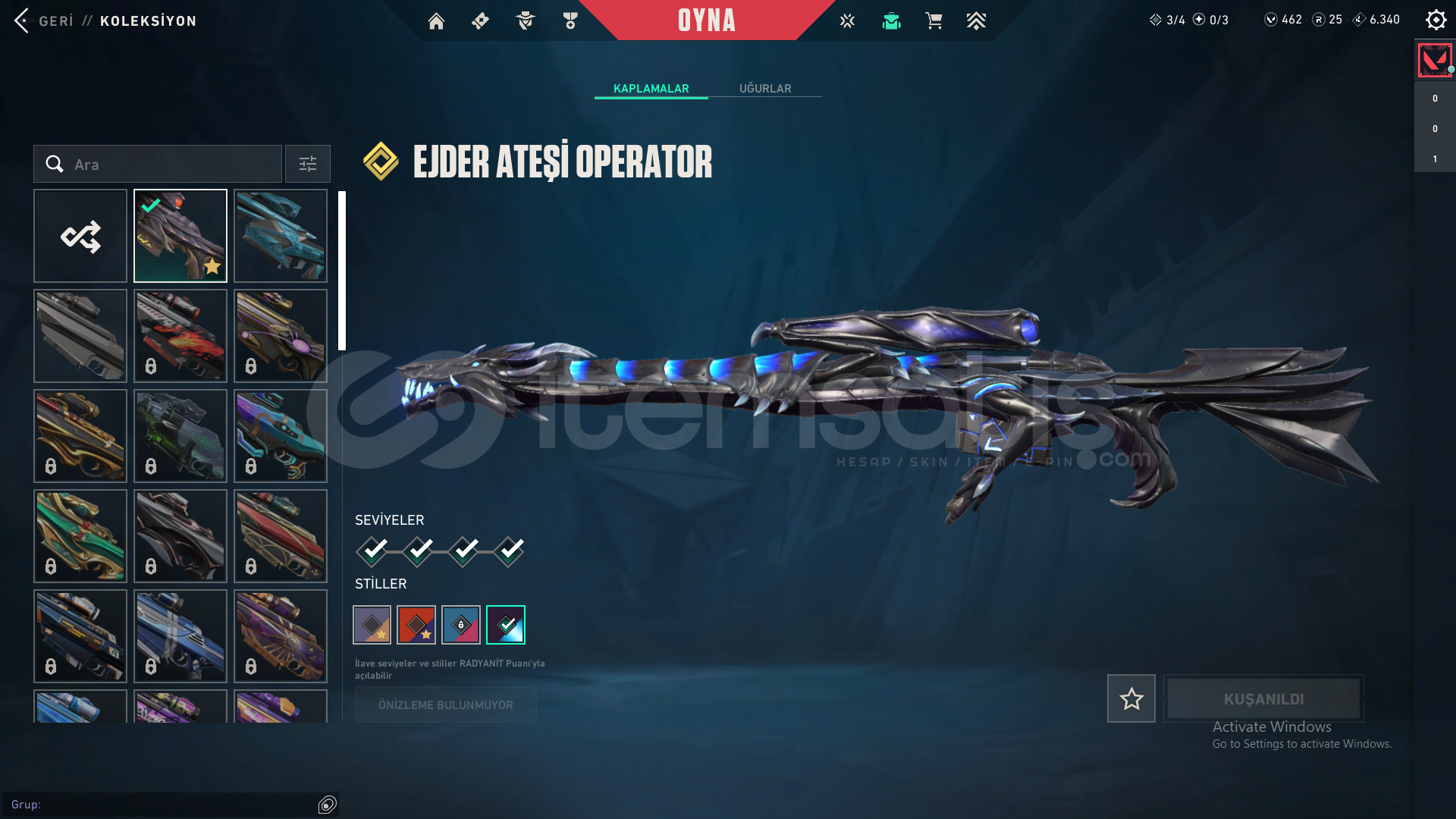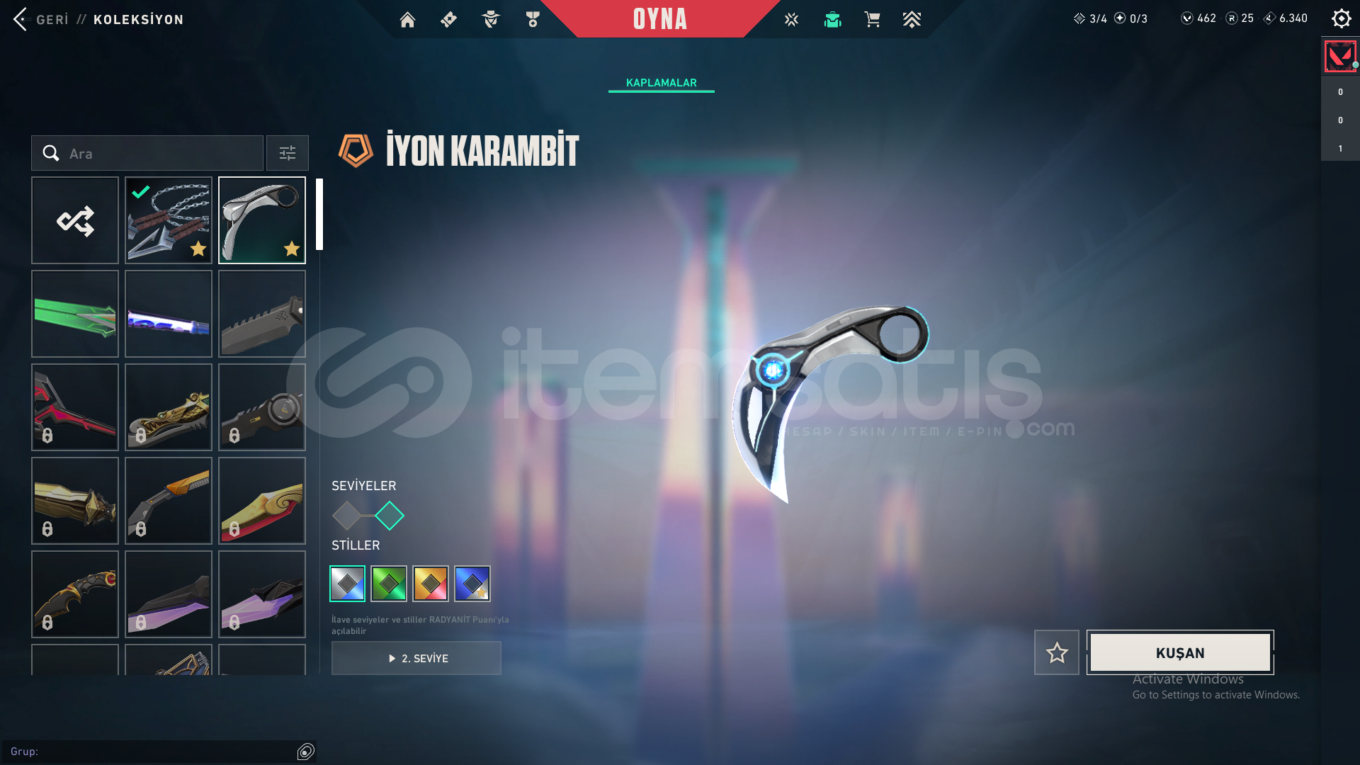 -Evori Rüyakanatlar Vandal-Köken Vandal-Yağmacı Vandal-Işık Muhafızları Phantom-Kuronami No Yaiba-İyon Karambit-Ejder Ateşi Operatör-İyon Sheriff-Sürat Canavarı Sheriff-Evori Rüyakanatlar Ghost-VCT X FUT Classicmail devri yapılcaktır