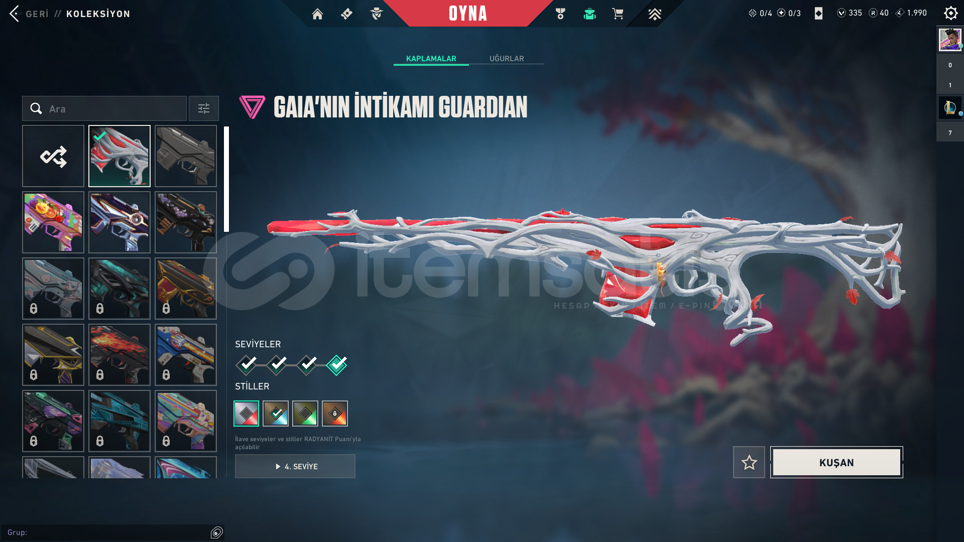 HESABIN İÇİNDEKİ SKİNLER:Evori Dreamwings VandalAraxys SheriffMystbloom Phantom5 Years // Beta Remastered KnifeBolt KnifeAraxys VandalSolarex RelicKuronami VandalEvori's SpellcasterXERØFANG GhostGaia's Vengeance VandalGaia's Vengeance GuardianHESABIN BİLGİLERİ, MAİL BİLGİLERİ TESLİM EDİLECEKTİR.ALICISINA HAYIRLI OLSUN.