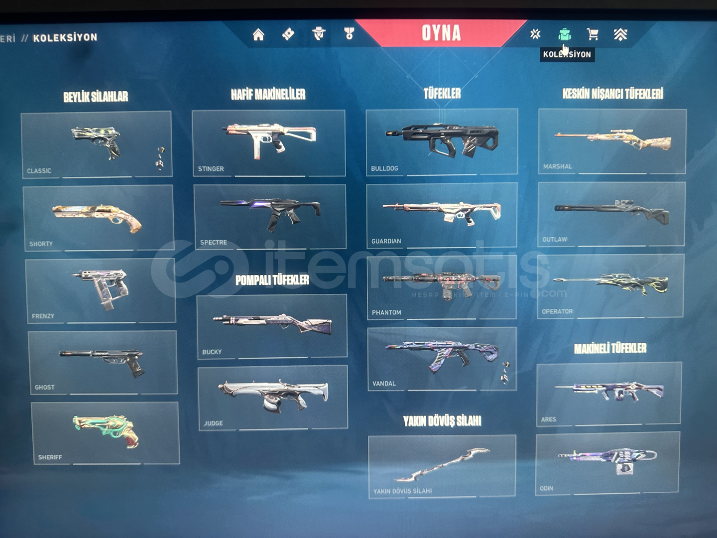 Evrim Classic 💎Faz koruyucu Ghost 💎Ejderin Buyruğu Sherıff 💎Anomali Spectre 💎Evrim Judge 💎Faz Koruyucu Bulldog 💎Helezon Phantom 💎Özel Harekat Phantom 💎Faz Koruyucu Vandal 💎Evrim Vandal 💎Faz Koruyucu Bıçak 💎Evrim Asa 💎Ruh Azabı Tırpan 💎Uzaylı Avcısı Bıçak 💎Evrim Operator 💎