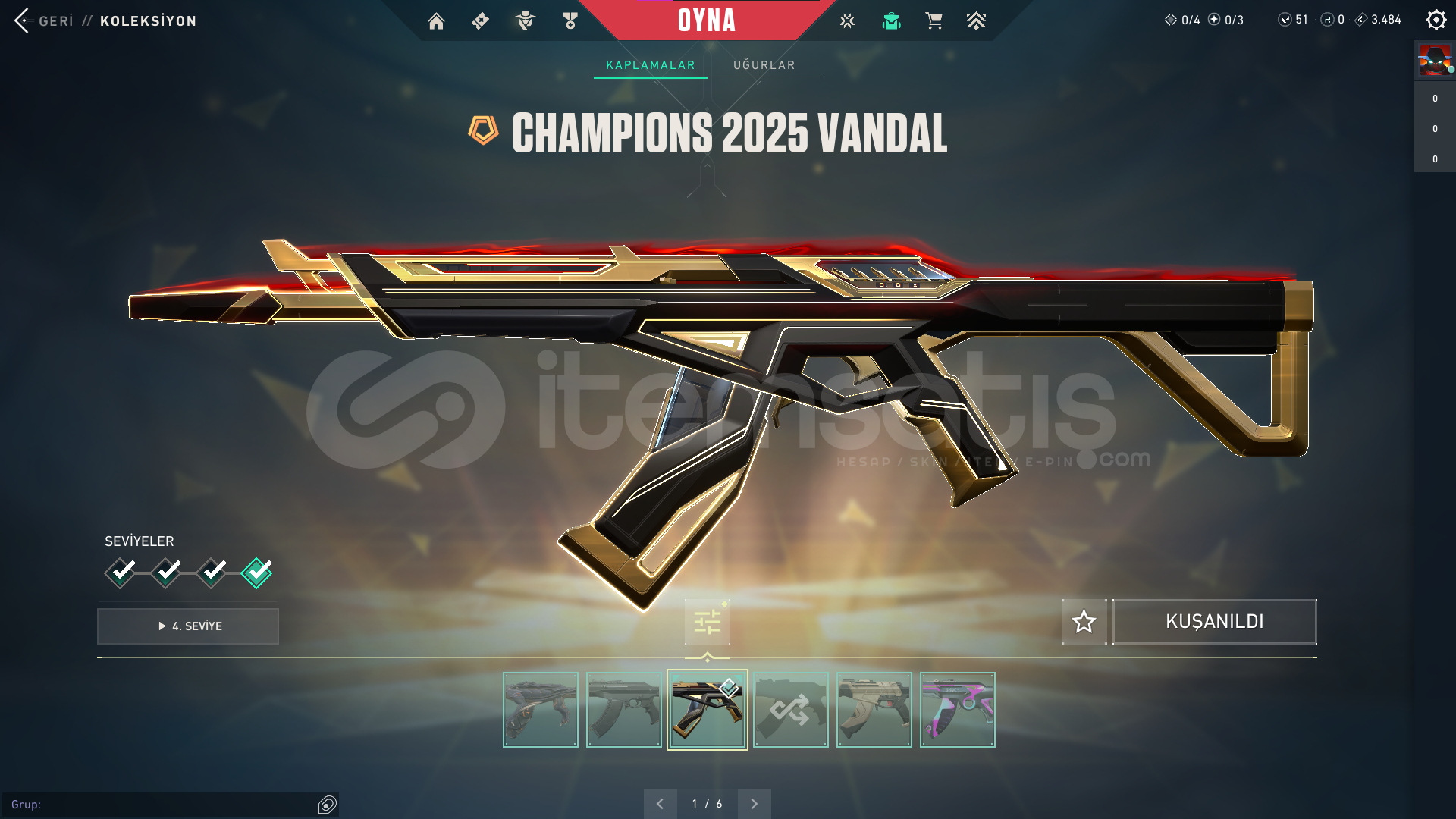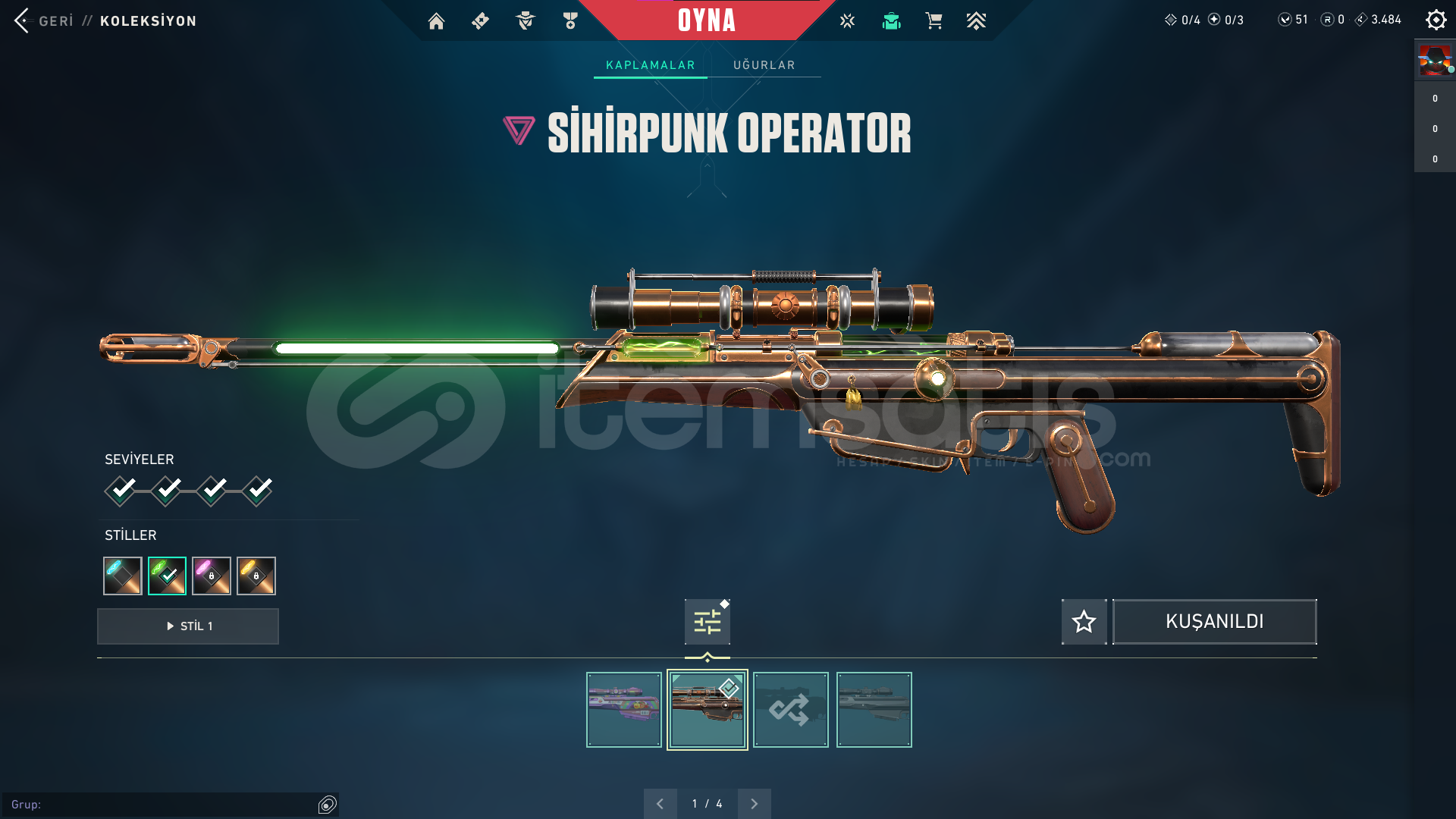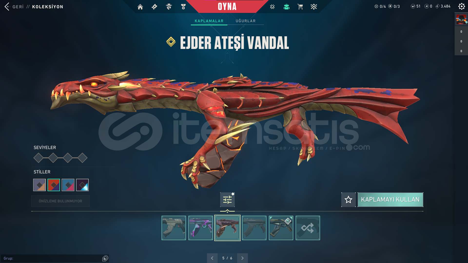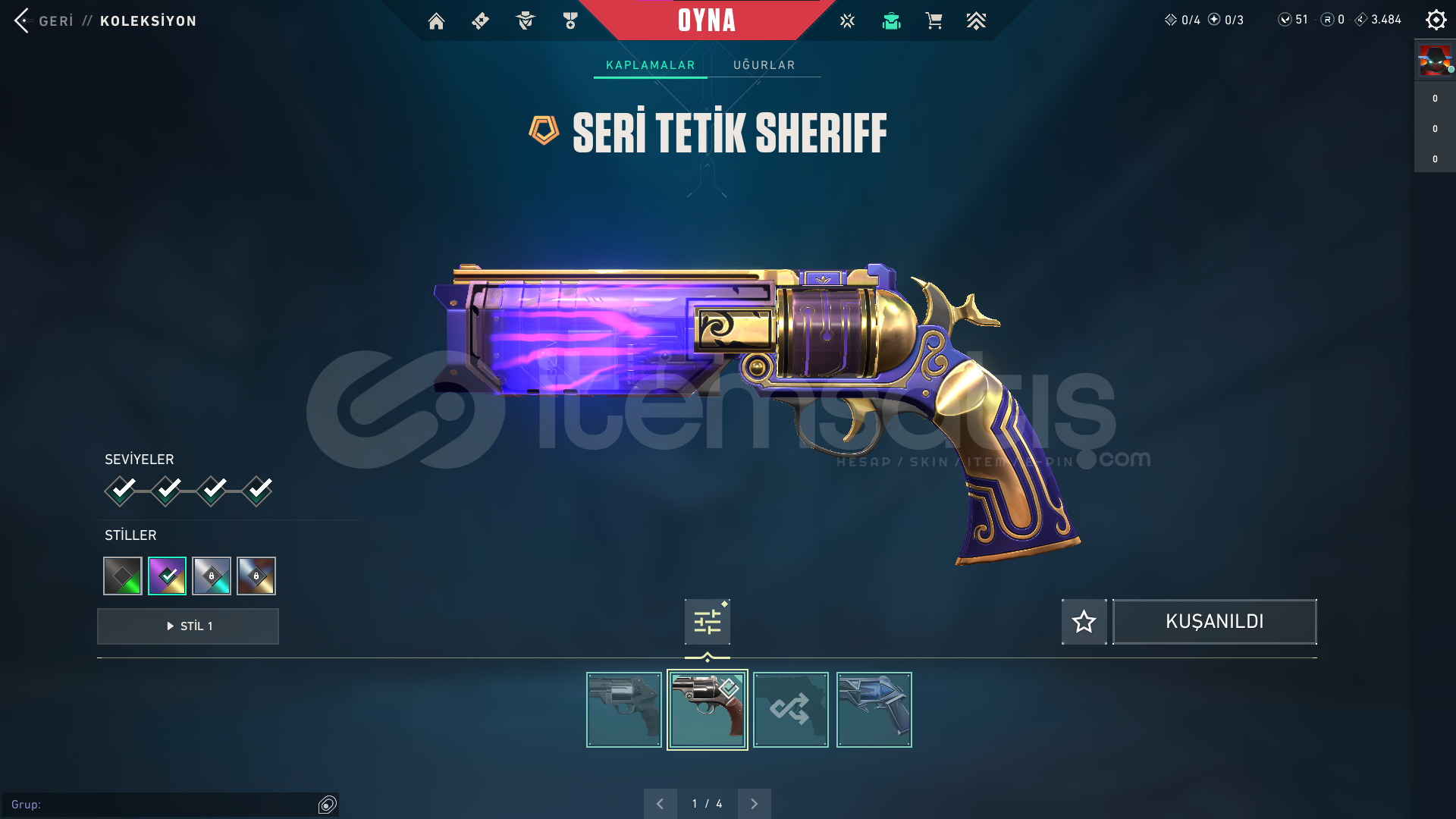 ⭐ Hesabın içinde EX.O Kılıcı , RGX 11z Pro Kelebek , Sihipunk Şok Eldiveni , Solarex Yadigarı , Ejder Ateşi Vandal , Devinim Vandal , ATLAS // CMD Vandal , Champions 2025 Vandal , Seri Tetik Sheriff , Sihirpunk Operator gibi skinlerle toplamda 37 skin bulunmaktadır.