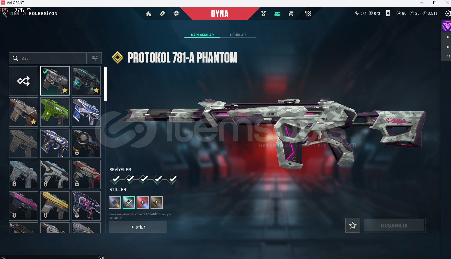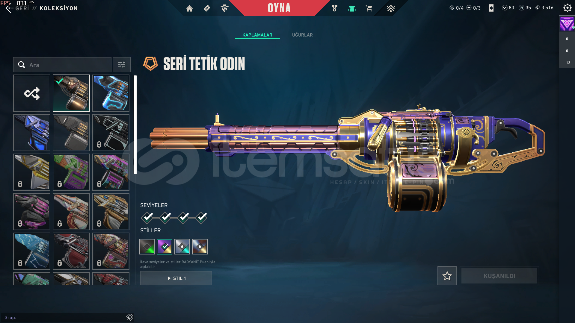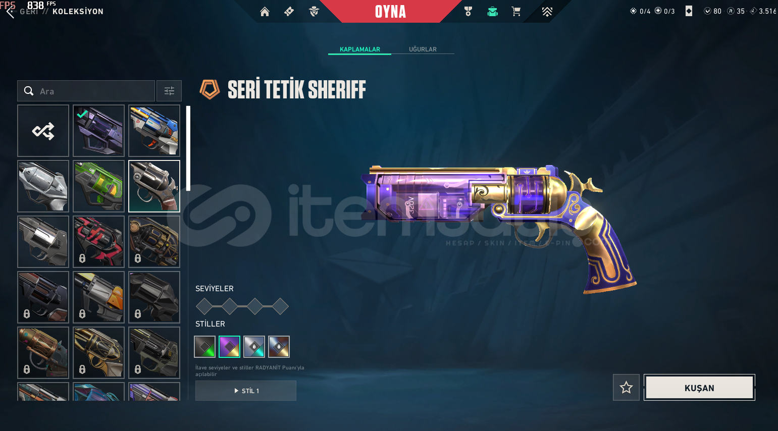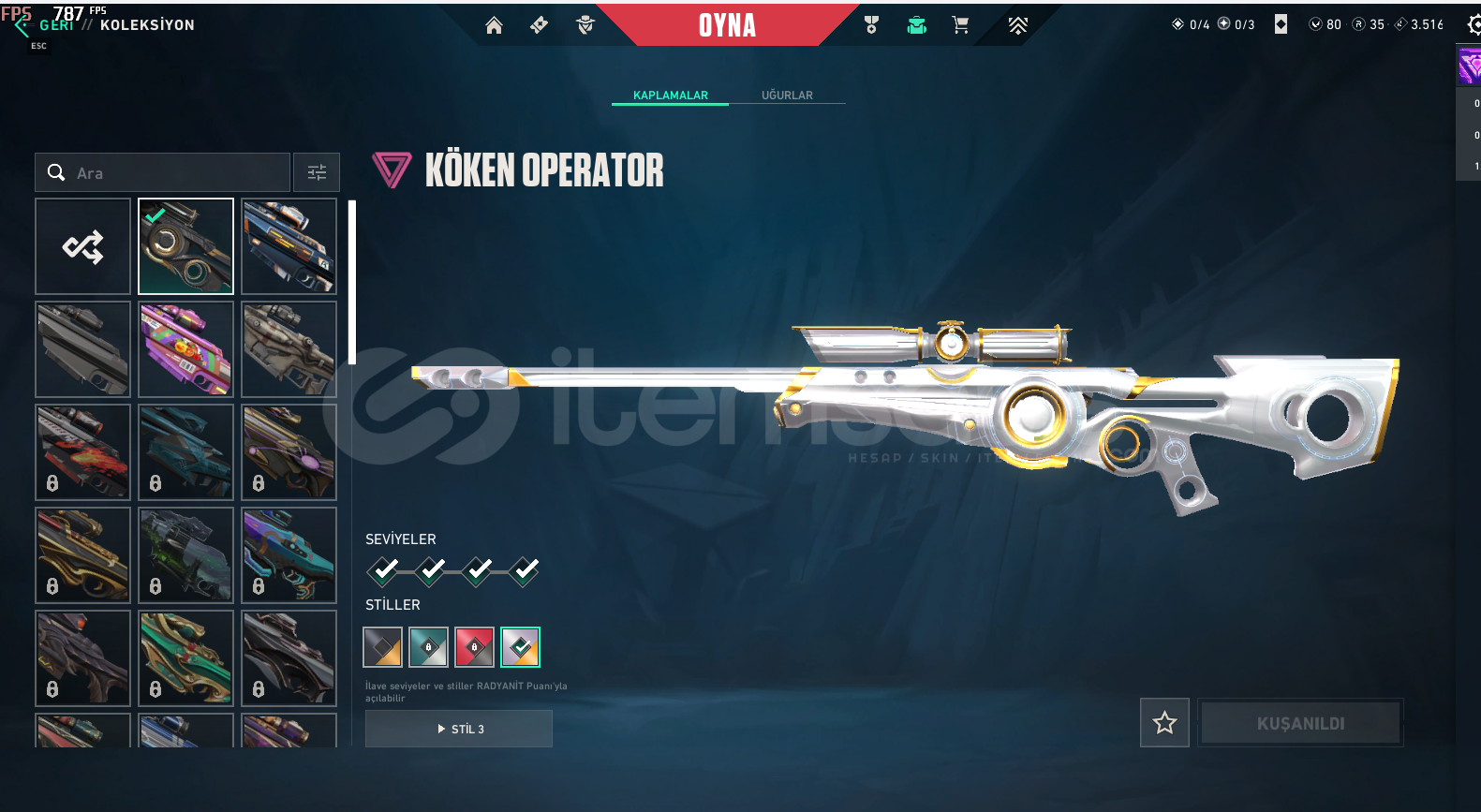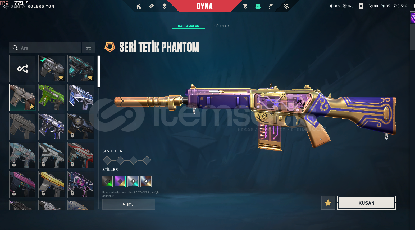 Seri Tetik Sherif - Vandal - Balta - Odin - PhantomExO Sherif -Spectre - Vandal - Katana - OutlawSetlere Ek Olarak :İyon SherifFelaketin Kalbi SpectreProtokol PhantomAfet PhantomEvori VandalYıldız Belası VandalKöken Operatör e sahiptirİlk Kullanıcısı Benim . Hesap sizin e posta adresine devredilicektir . İstediğiniz tüm ilk mail bilgileride verilecektir .