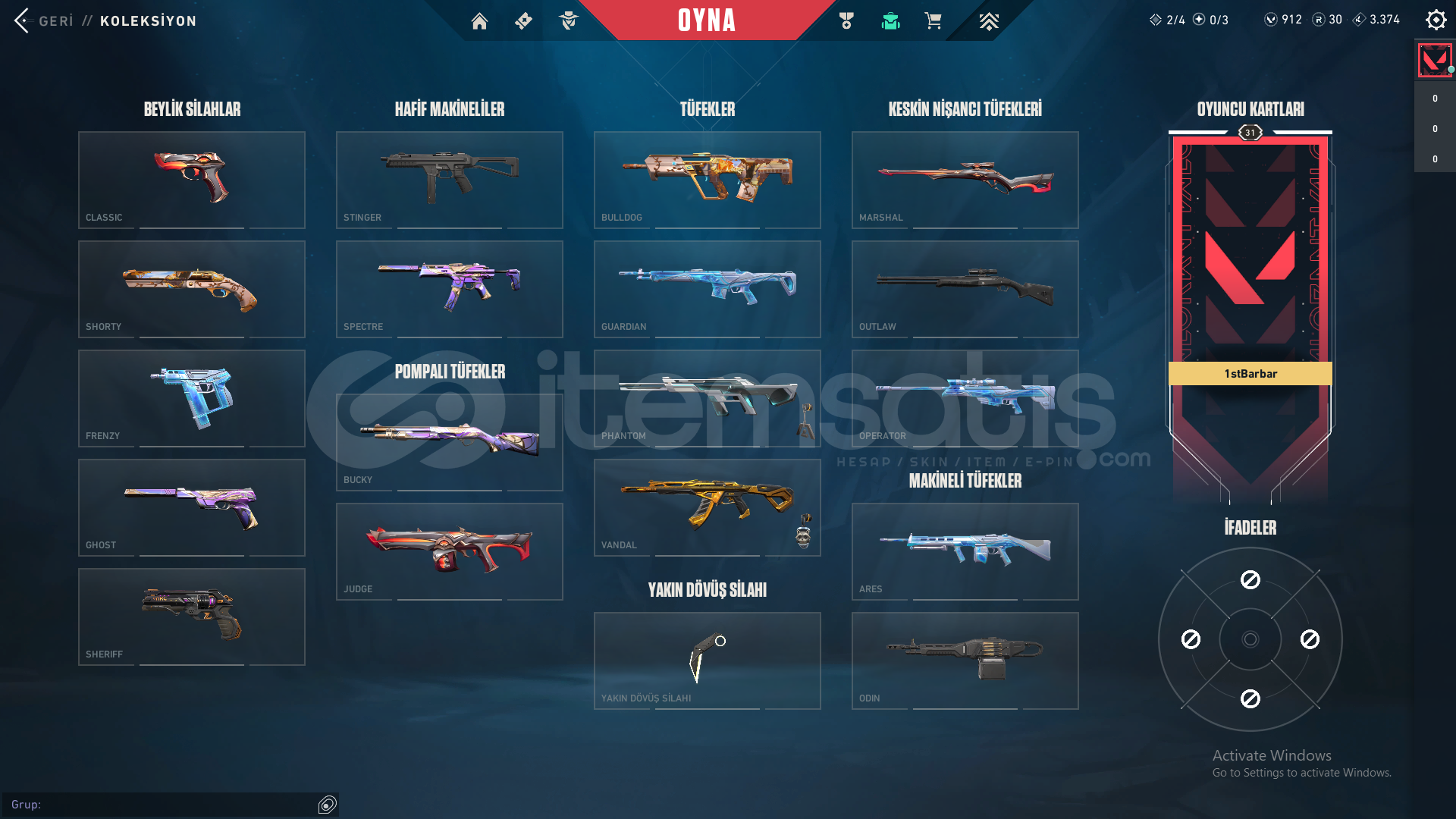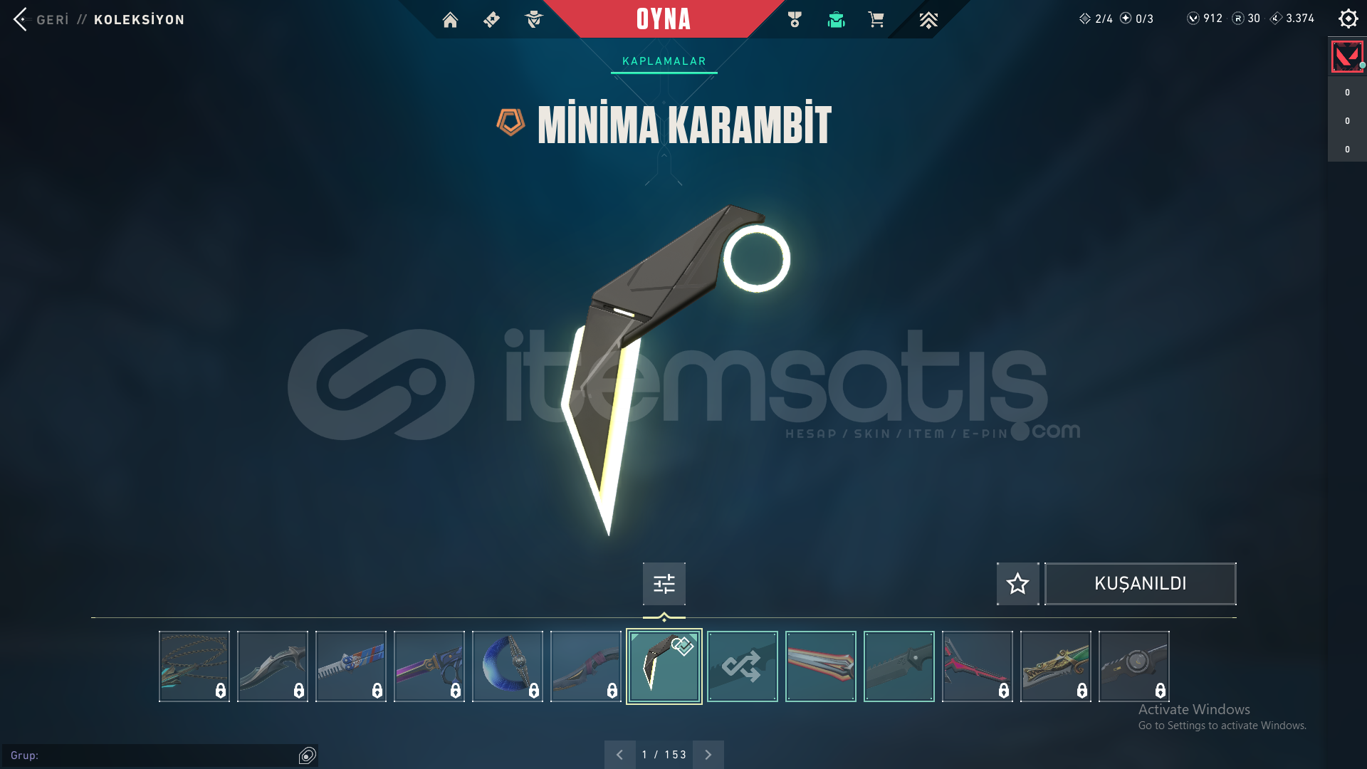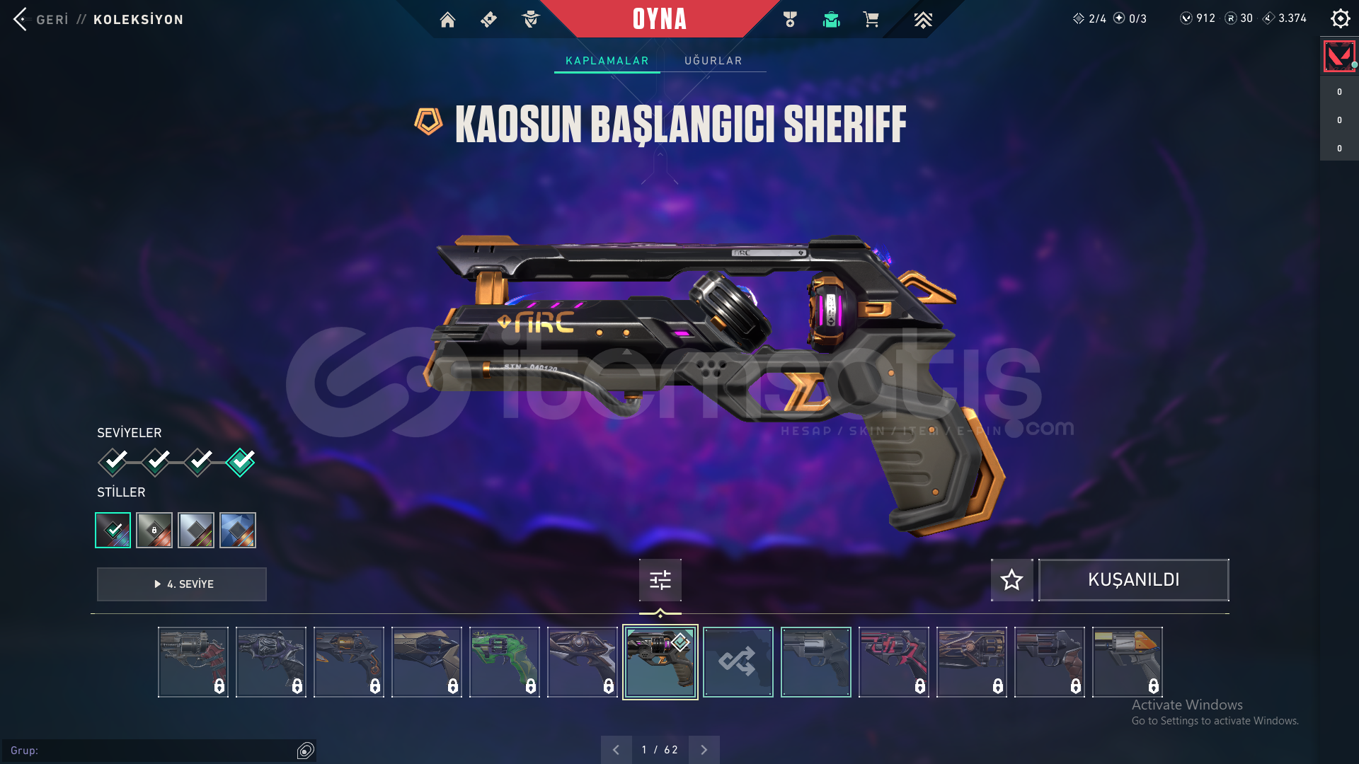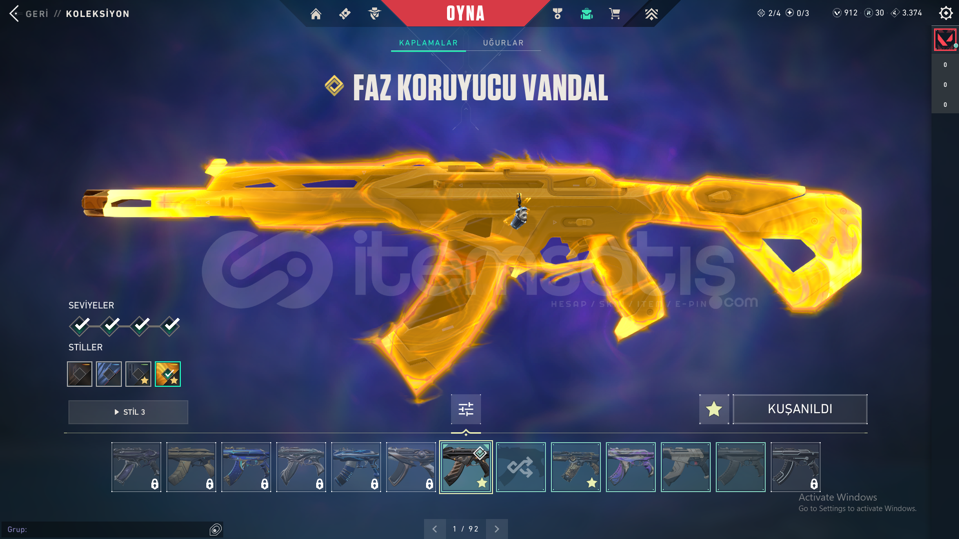 -Faz Koruyucu Vandal-Aemondır Vandal-Şimşek Phantom-Minima Karambit-Kaos Sheriff+900vp bulunmaktadır.