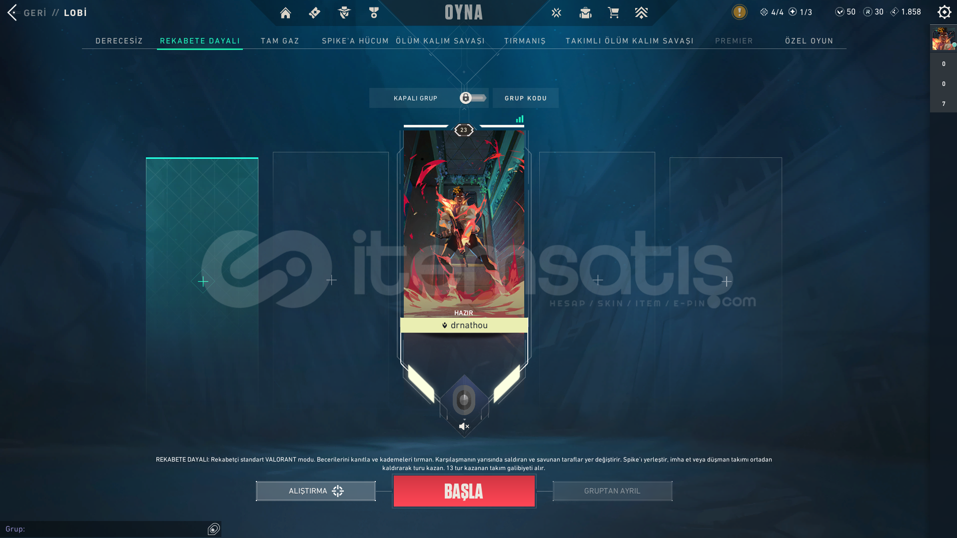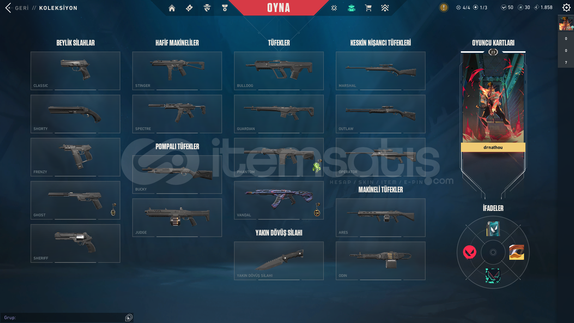 %100 Türkiye sunucusuna girilebilmektedir.;⭐Faz Koruyucu Vandal⭐Hesabın içinde 50VP bulunmaktadır.Hesabın rankı Demirdir.Hesabın leveli 23 ' tür.Smurf için kullanabilirsiniz veya yeni başlayıpta güzel bi vandal olsun diyosanız size göredir bence oyunun en iyi vandalı.
