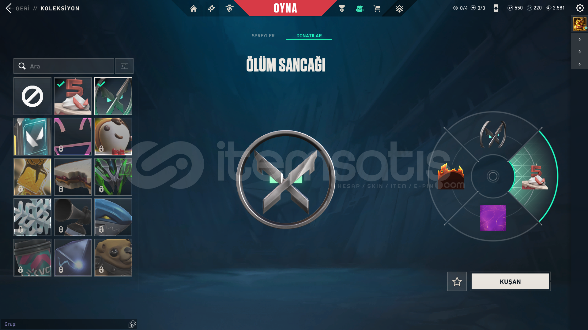 5 battle pass silahı ekstra 3 donatlıdır ( olum sancagı.pasta ve telefon ekstra set spreyleri ve kartları bulunur)