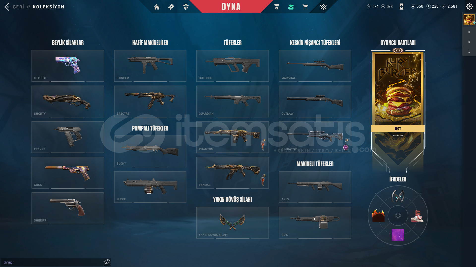 felaketin kalbi vandal.shorty.spectre.phantom ve son olarak felaketin bıcakları seri tetik sherif cesur yurek operator(maymun) 5 battle pass silahı ekstra 3 donatlıdır ( olum sancagı.pasta ve telefon ekstra set spreyleri ve kartları bulunur)hesap tr server mailli sifre mail degisimi var ilk mail ve dogrulama yok cekılme asla olmaz olursa ulasın ilgilenirim sorun cıkmaz hesapta ban vesaire bir sıkıntı yoktur hesapta ekstra 550 vp ve...