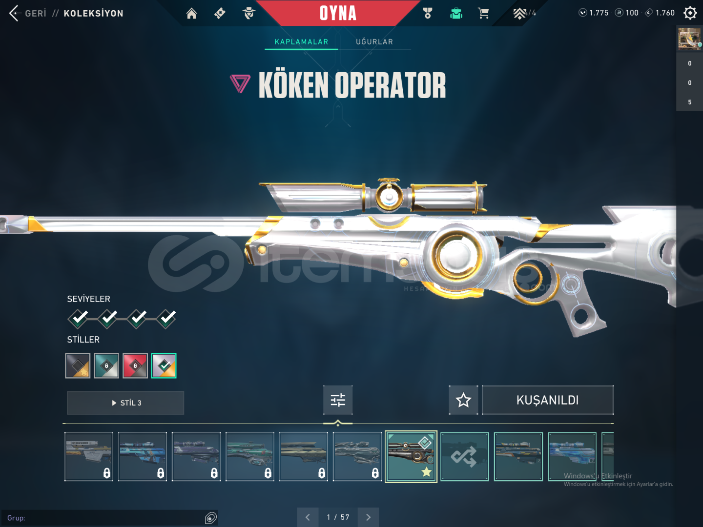 HESAP PLAT 1 DİR.HESABIN 2. SAHİBİYİMHESAPTA 1775 VP VAR 1 SKİN ALABİLİRSİNİZ ! HARCAMADIM ONU**--------------------HESABIN İÇİNDEKİLER:ZIFIRI CLASSICZIFIRI BULLDOGZIFIRI PHANTOMANOMALI VANDALASİL VANDALZIFIRI BIÇAK (BIÇAK DÖNÜŞÜMLÜ)ZIFIRI MARSHALKÖKEN OPERATÖRVE SHORTY VE ODIN HARİÇ HEPSİNDE BATTLEPASS SKİNLERİ---------------------------------------...