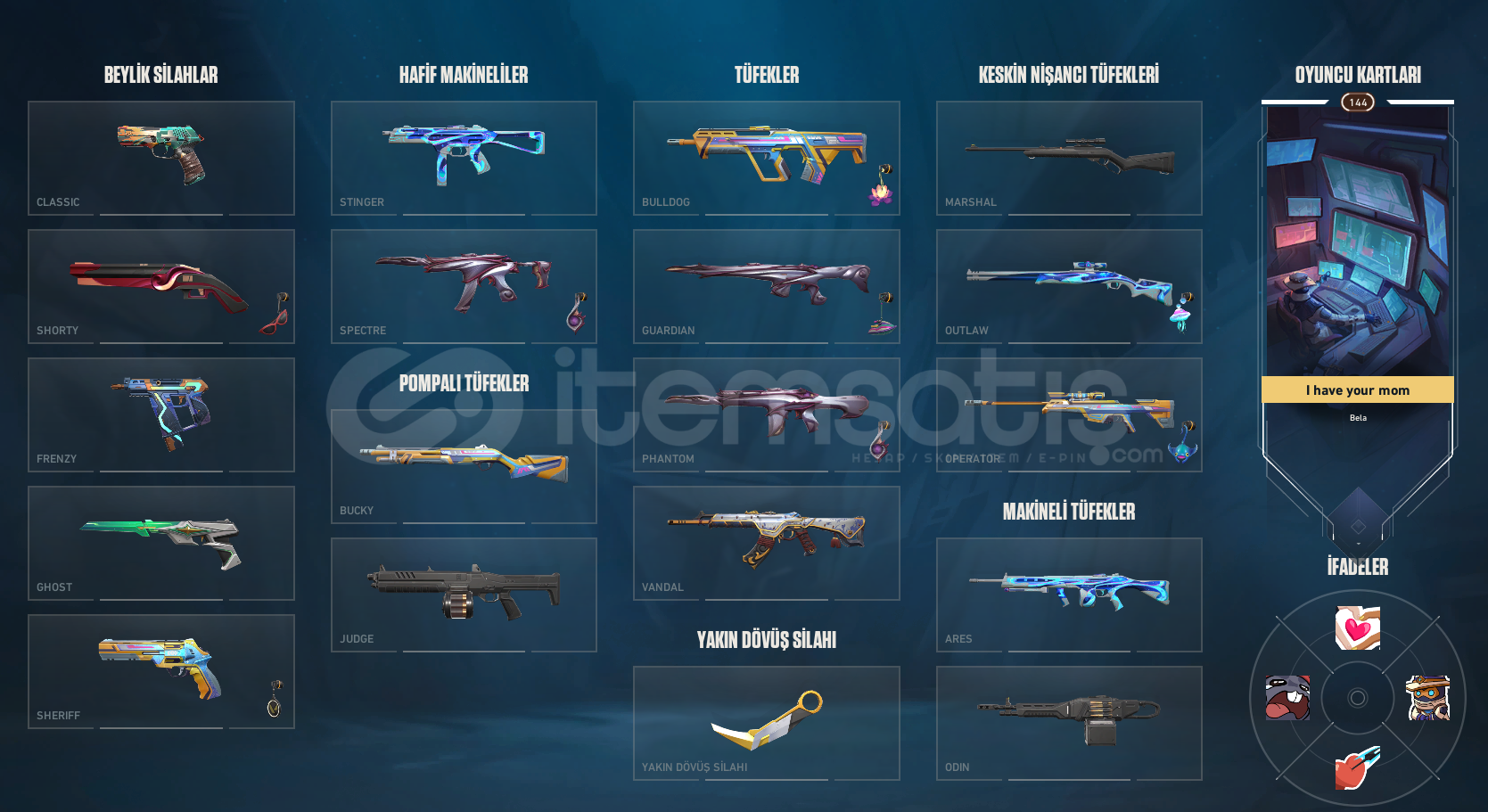 8 VP VARASİL 2.0 KARAMBİTLİİĞNEKABUK KILIÇLIONİ VANDALLI2 SHERİFF SKİNLİ3 GHOST SKİNLİ2 CLASSİC DESENLİ POPSTAR CLASSİCLİ144 SEVİYERENK DERYASI OPERATÖRLÜFENASAL DOLU SÜPER HESAP