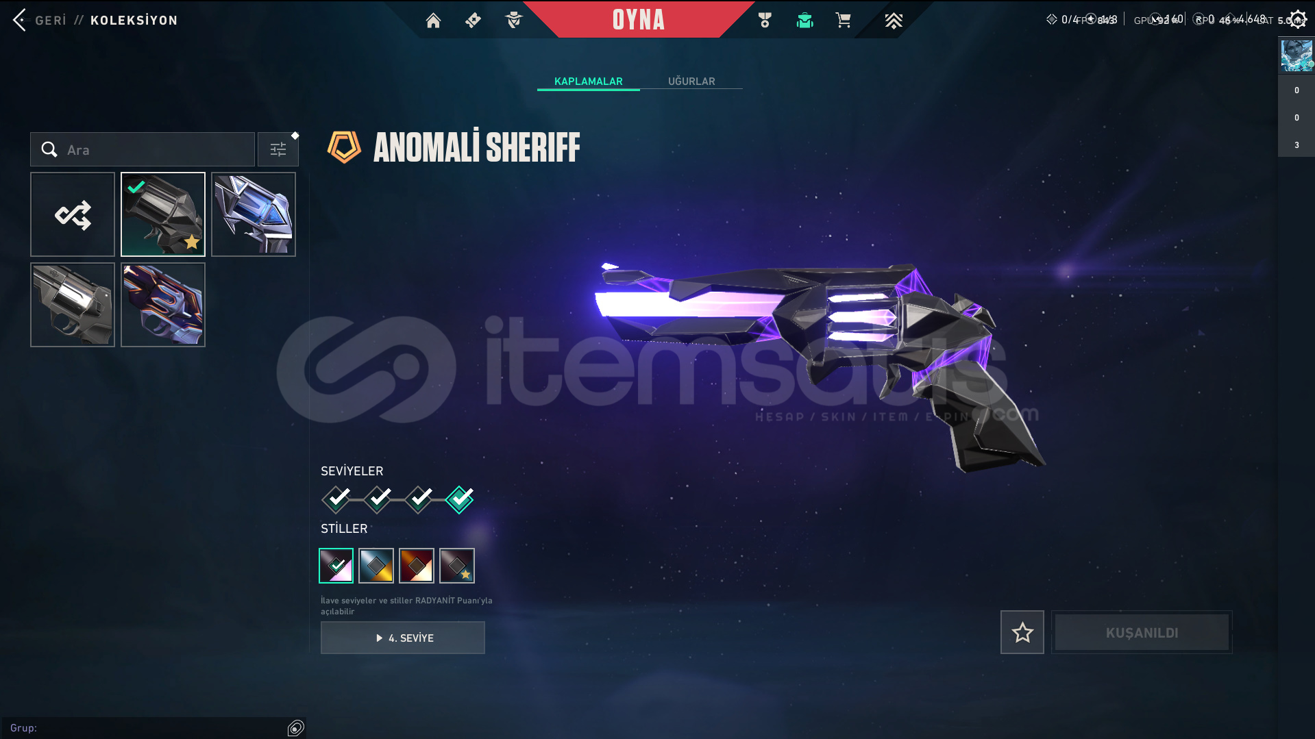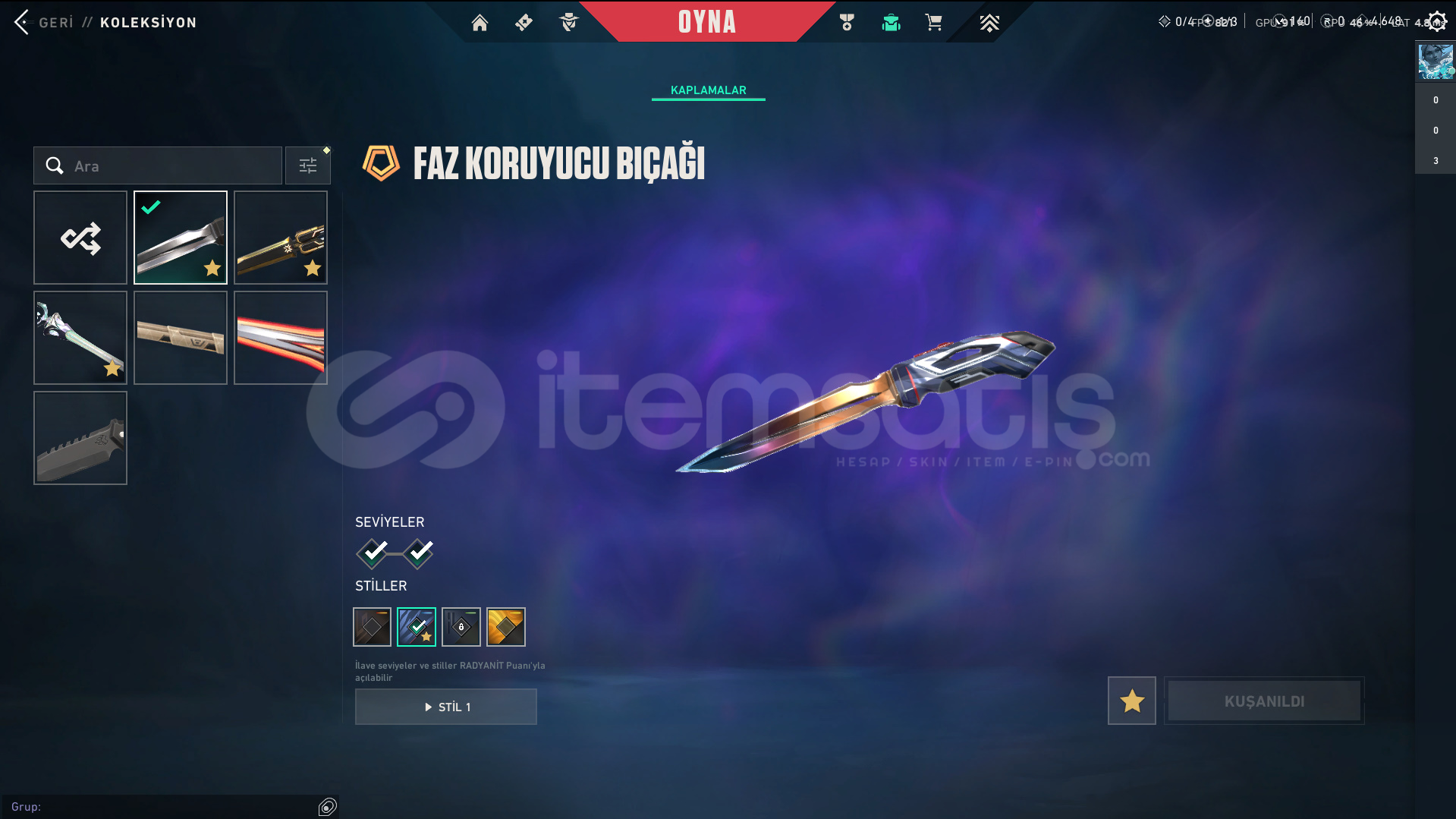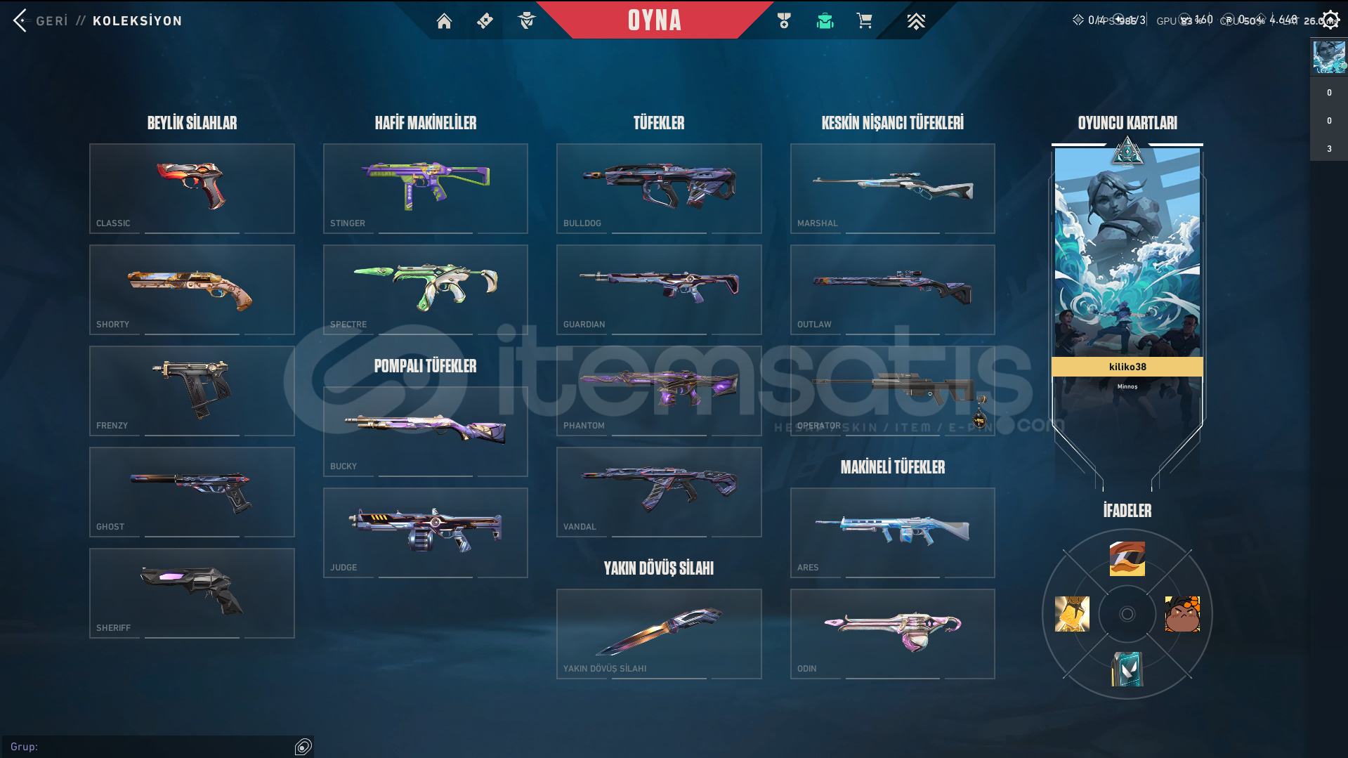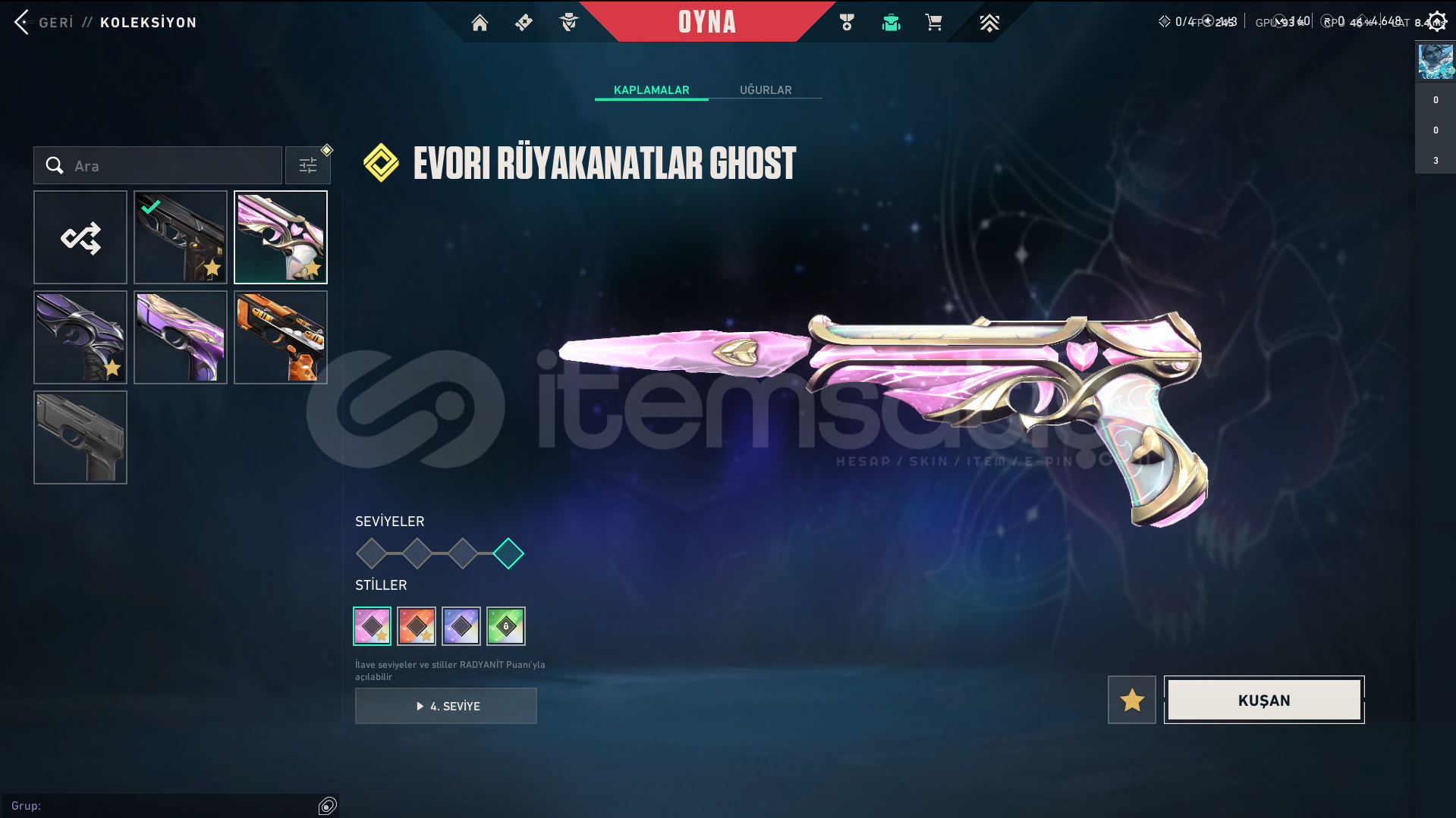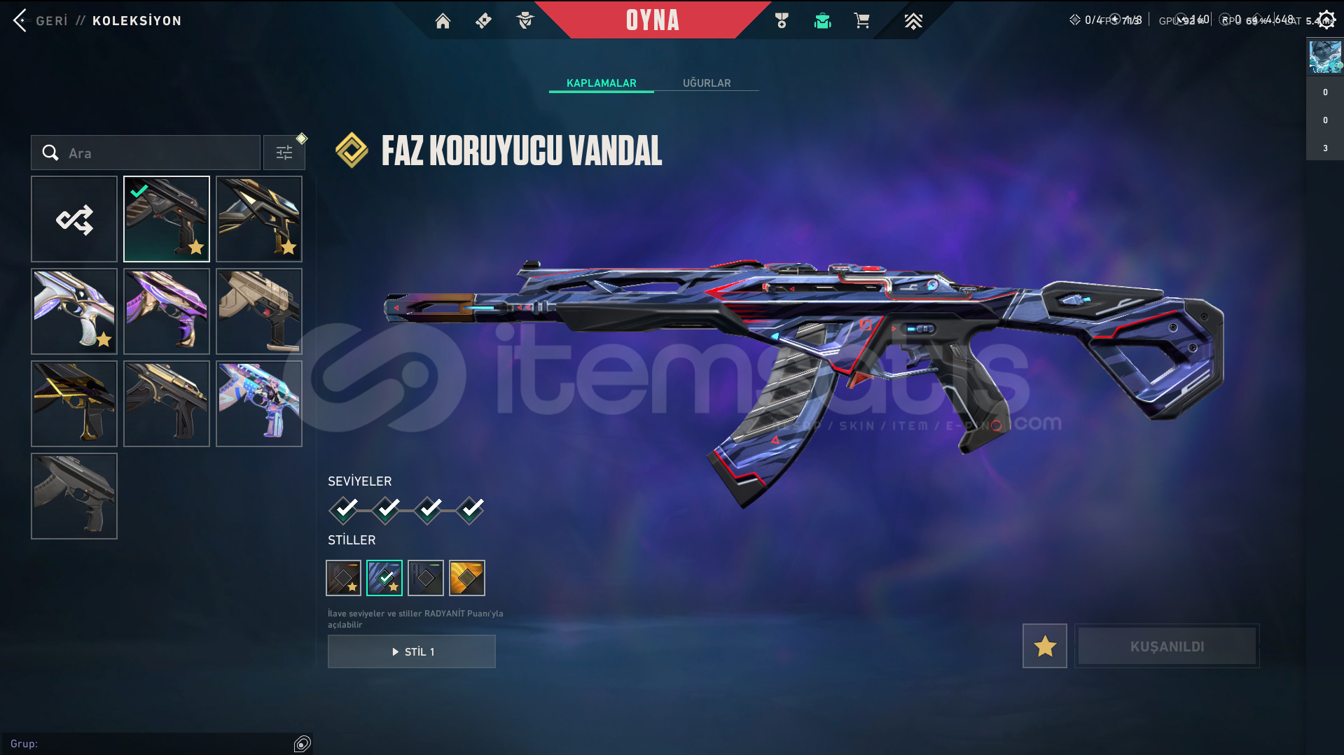 Skinler: Evori Dreamwings Vandal - Phaseguard Vandal - Champions 2025 Vandal - Champions 2023 Vandal / Ruination Phantom / Reaver Ghost - Phaseguard Ghost - Evori Dreamwings Ghost / Singularity Sheriff / Phaseguard Bulldog / Phaseguard Outlaw / Evori Dreamwings Spectre / Evori Dreamwings Odin / ATLAS // CMD Baton - Evori's Spellcaster - Interhelm Sword - Champions 2025 Butterfly Knife - Phaseguard Splitter VE DAHA SAYAMADIKLARIM İLE BİRLİKTE TOPLAM 64 SKİN MEVCUTTUR.