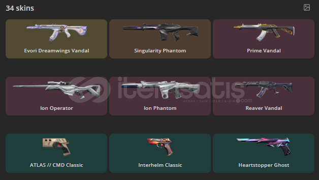 Hesapta toplam 34 skin bulunmaktadır. Fiyata etki eden en değerli skinler: