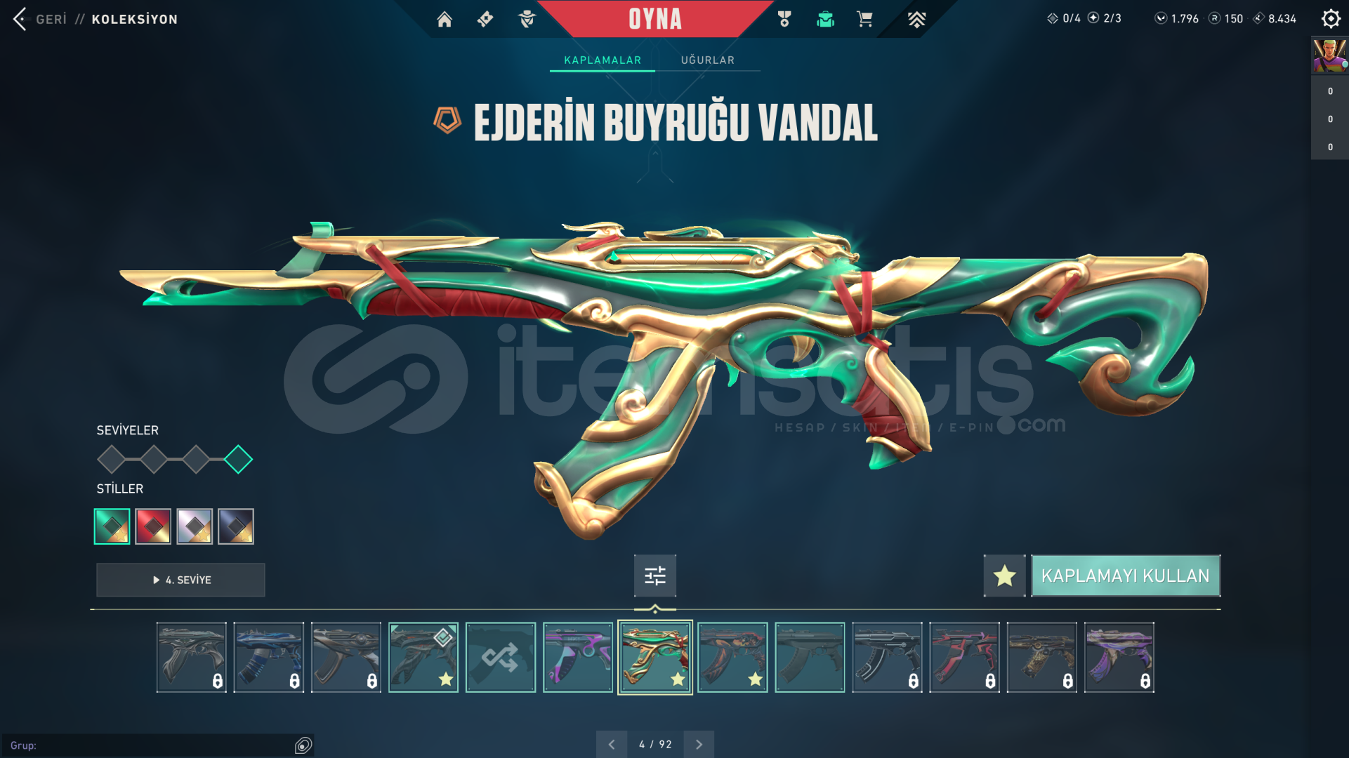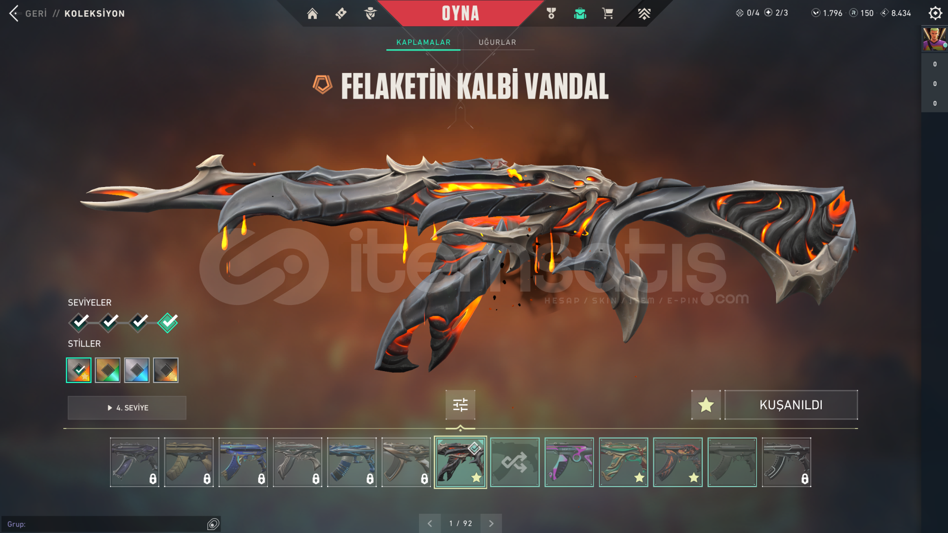 • Hesabın Envanter Değeri 14.425 VP'dir, Ve Ekstradan Harcanabilir 1.796 VP Ve 150 Radyanit Mevcuttur.