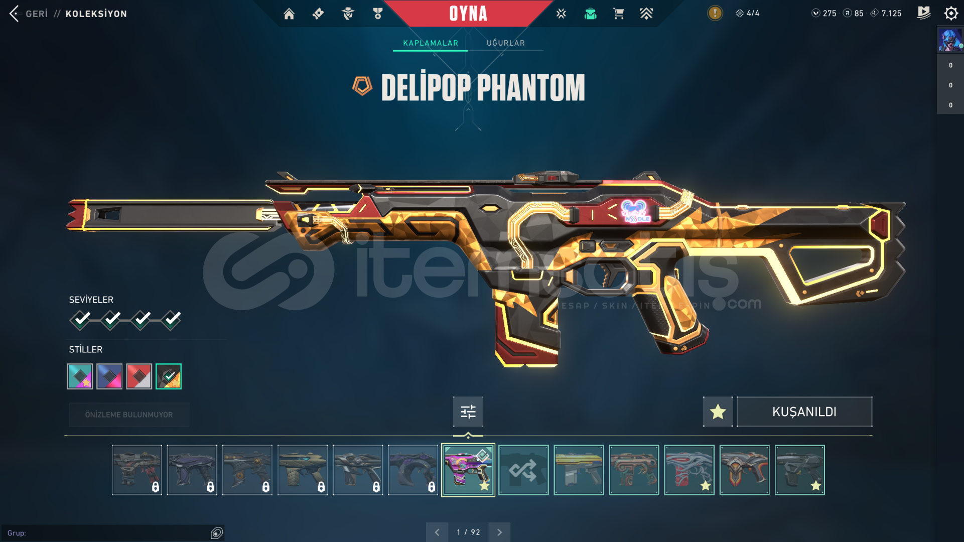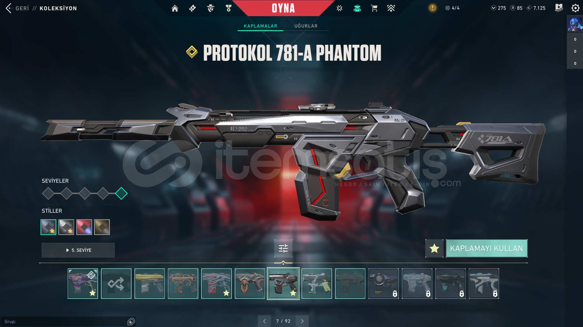 • Hesabın Envanter Değeri 16.875 VP'dir, Ve Ekstradan Harcanabilir 275 VP Ve 85 Radyanit Mevcuttur.