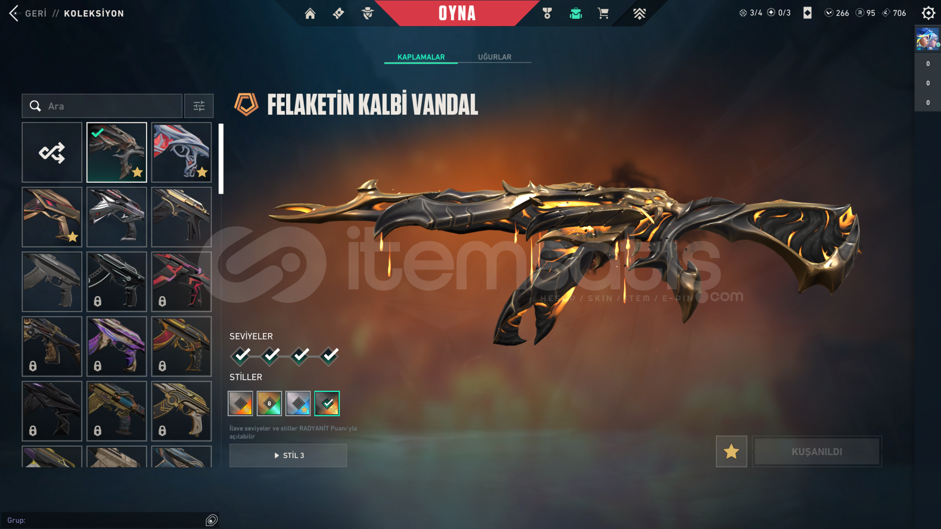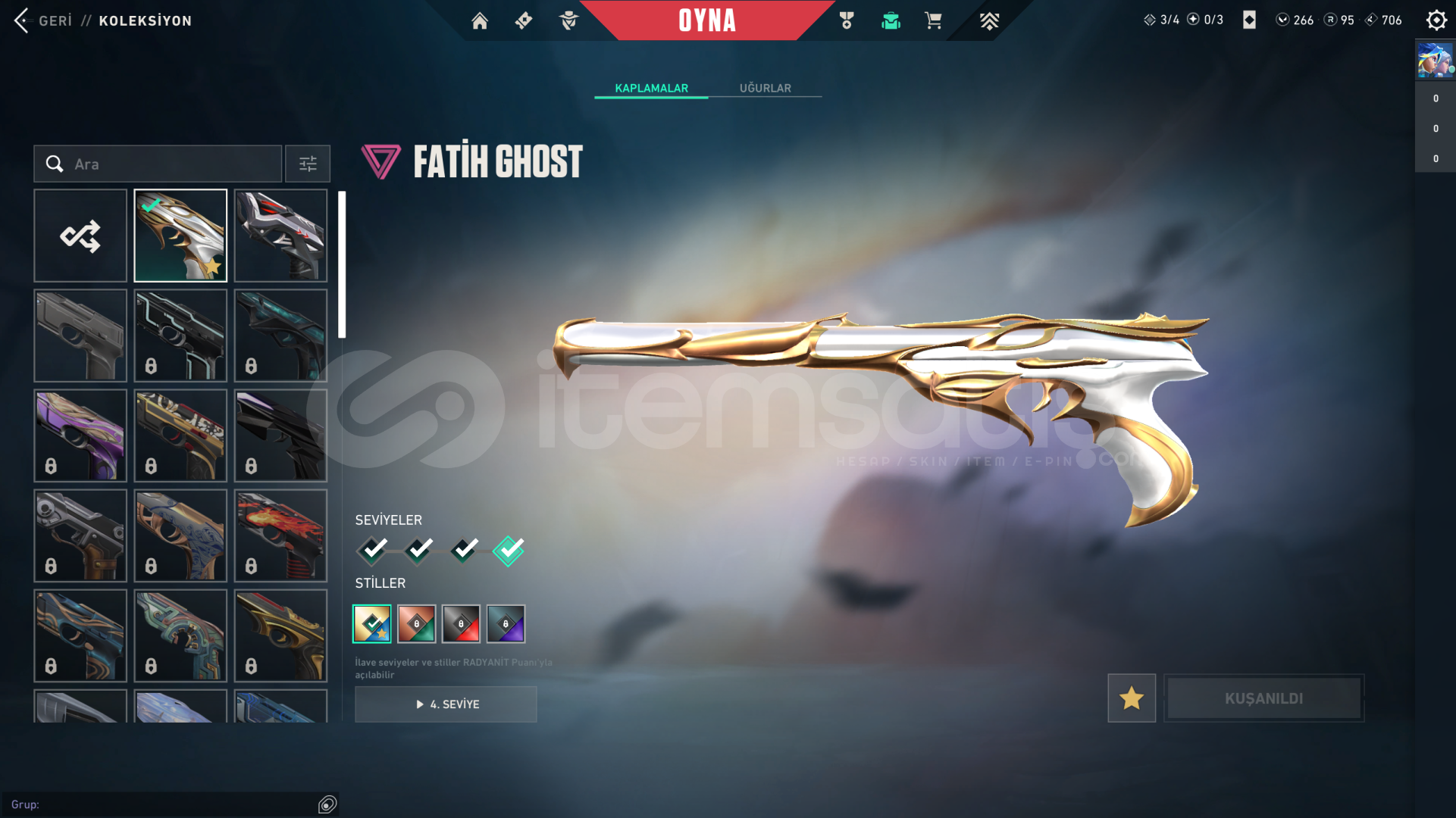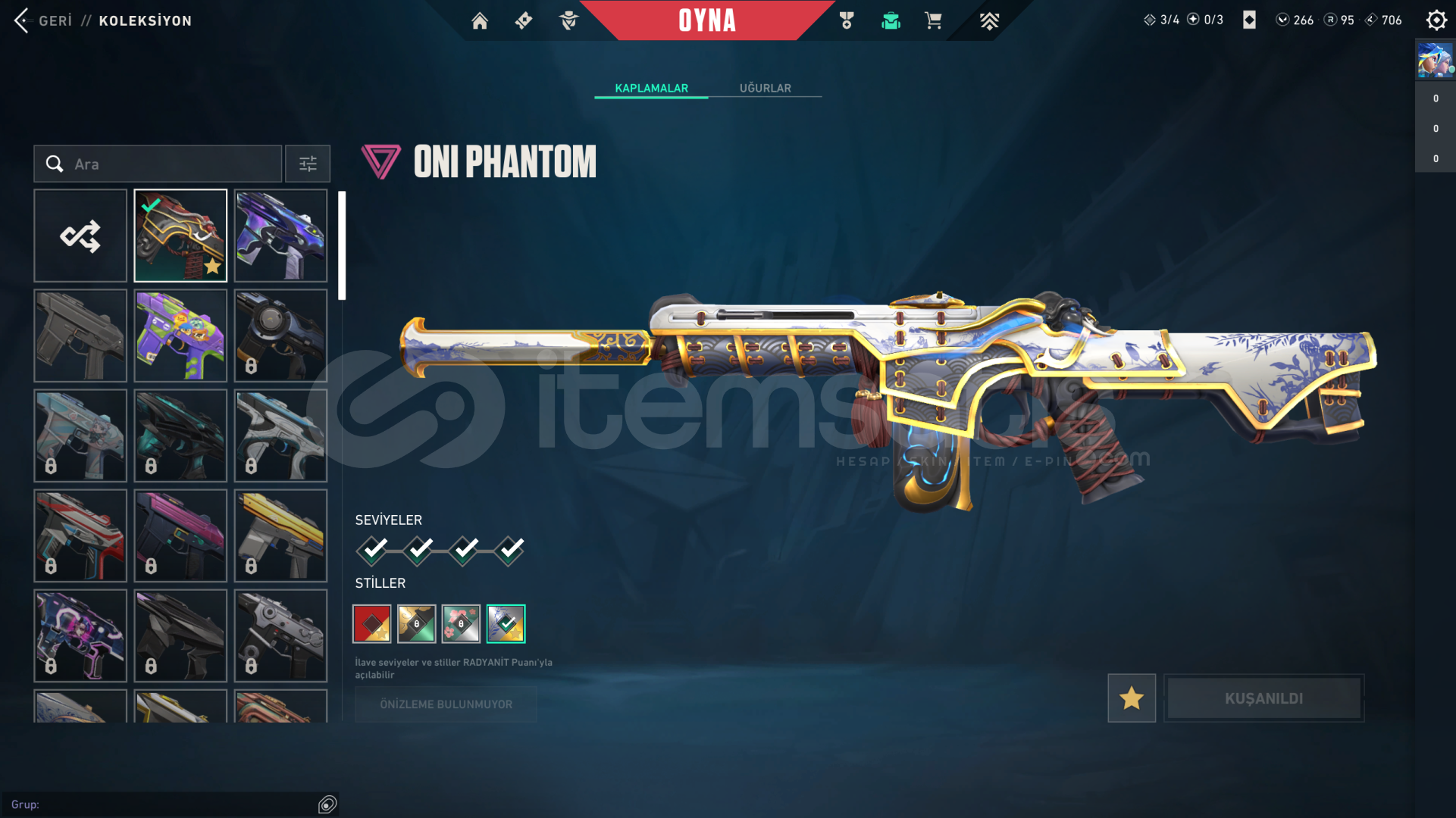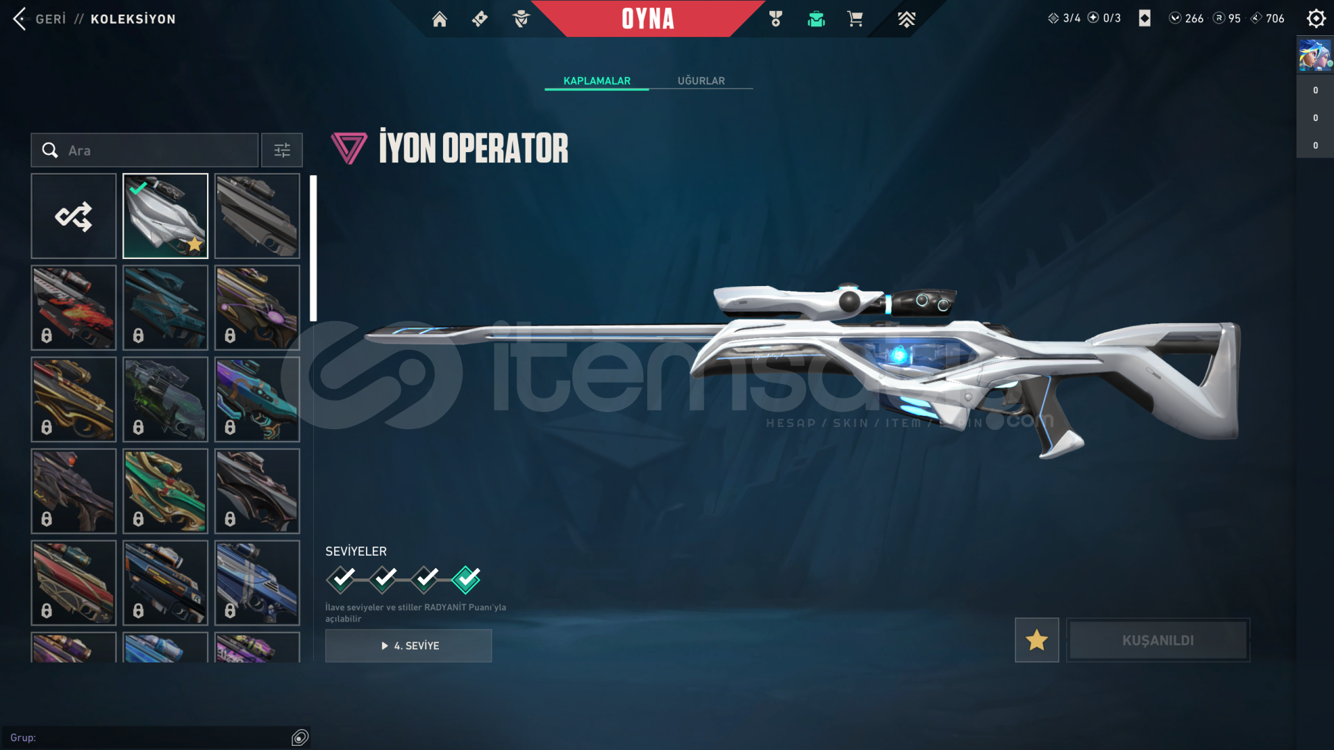 • Hesabın Envanter Değeri 21.325 VP'dir, Ve Ekstradan Harcanabilir 266 VP Ve 95 Radyanit Mevcuttur.