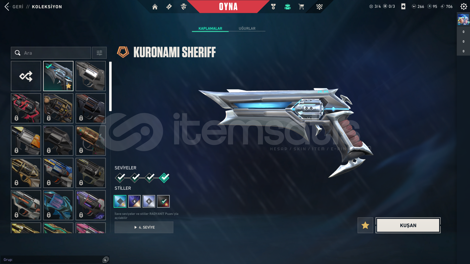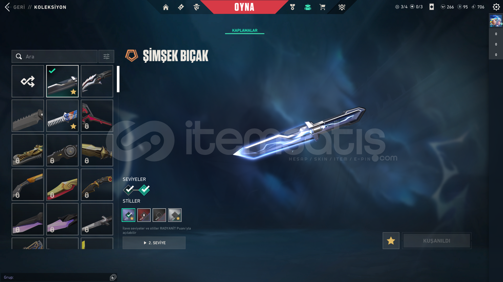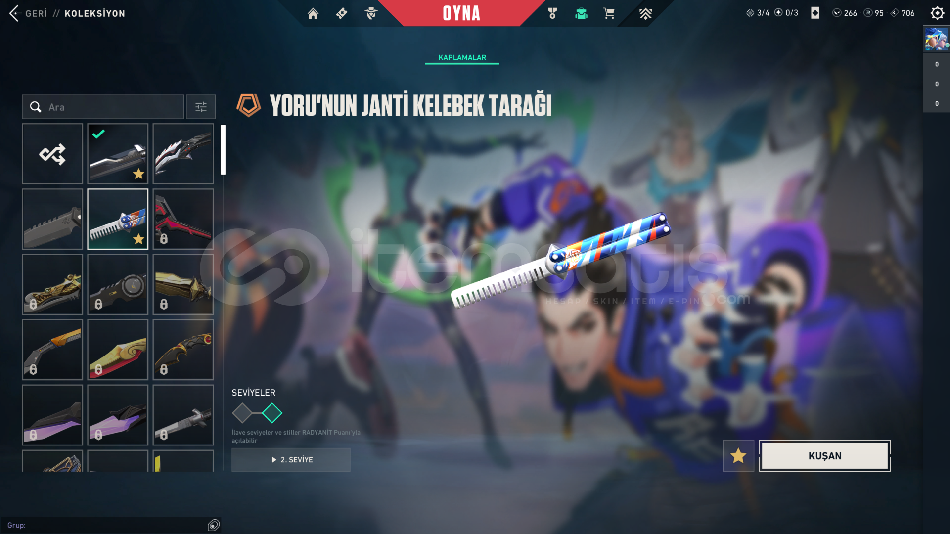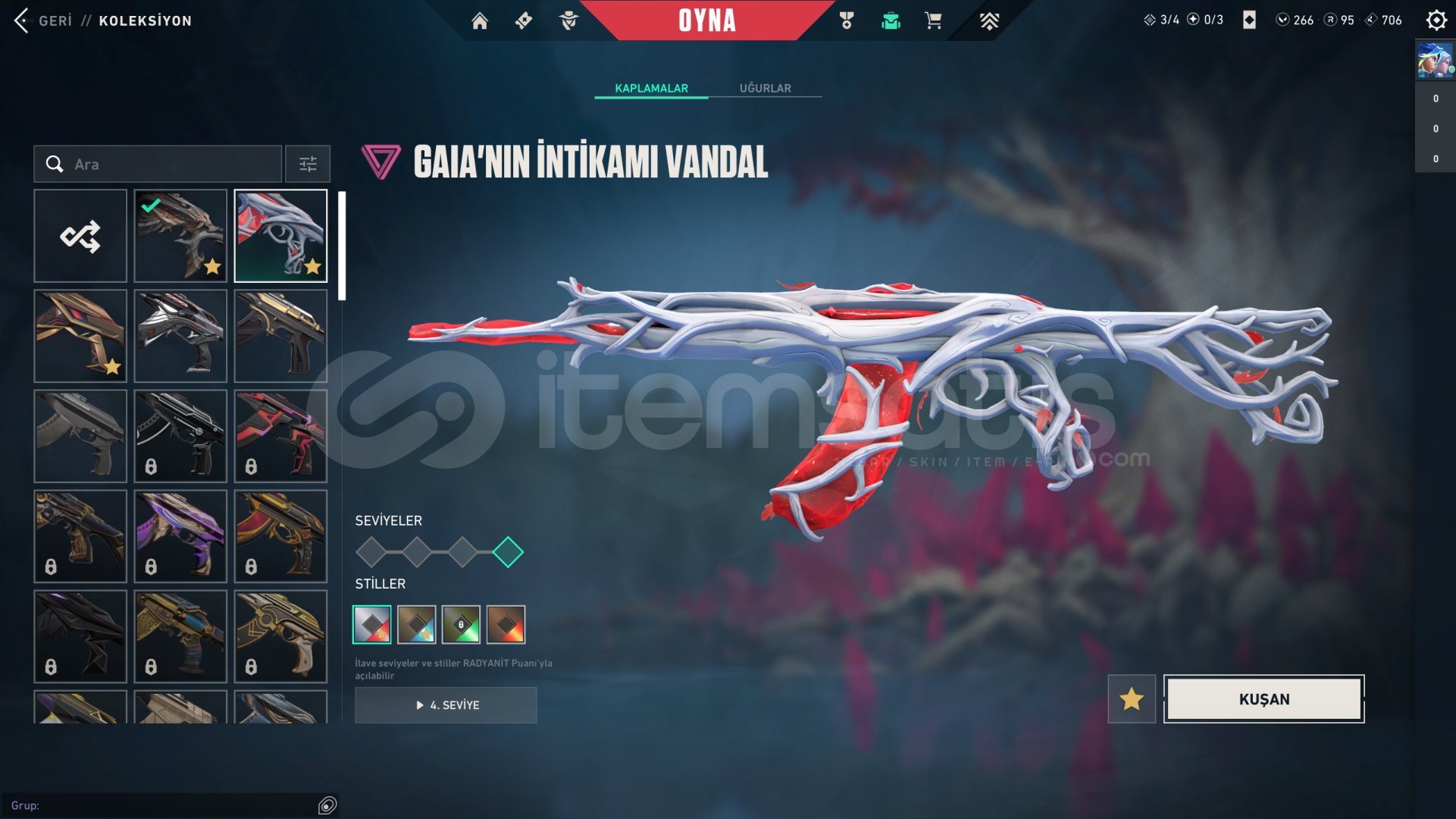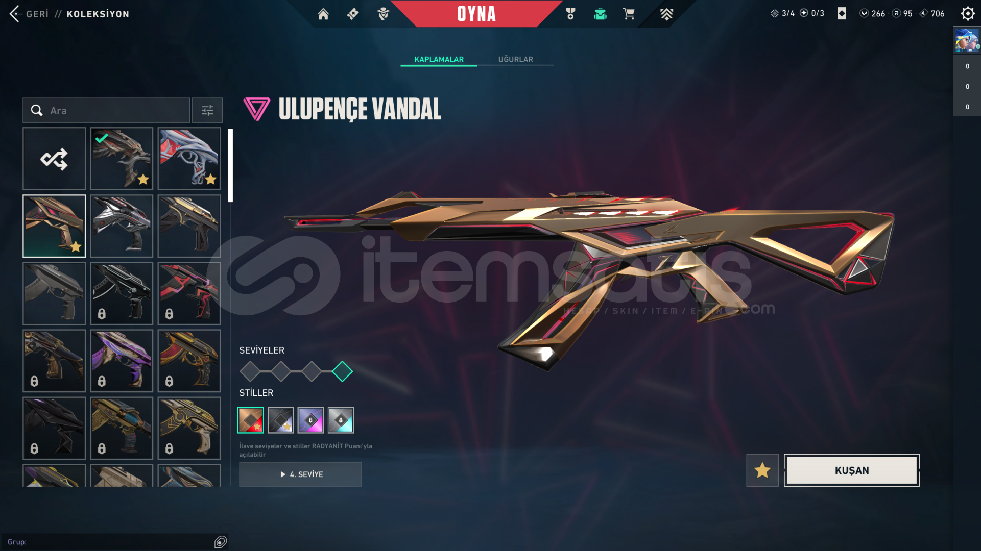 • Hesabın Envanter Değeri 21.325 VP'dir, Ve Ekstradan Harcanabilir 266 VP Ve 95 Radyanit Mevcuttur.