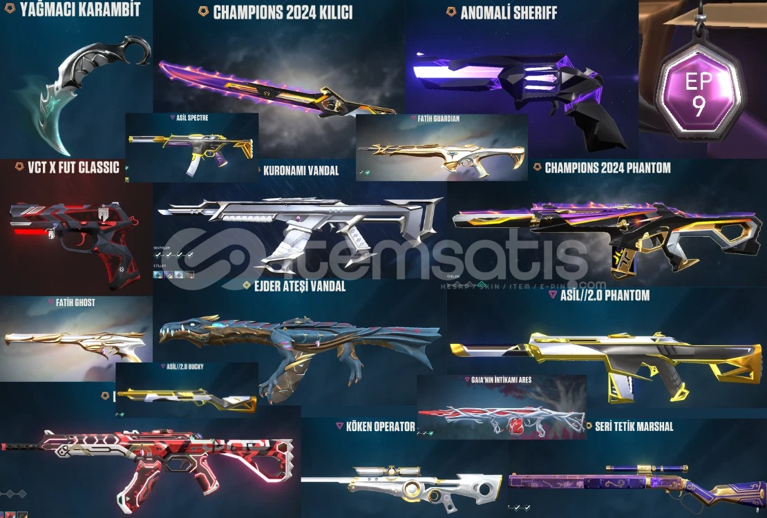 • HESAPTAKİ TEMEL SKİNLER İLAN FOTOĞRAFLARINDA BELİRTİLMİŞTİR. KÖTÜ VEYA BATTLEPASS SKİNLERİ DAHİL EDİLMEMİŞTİR.