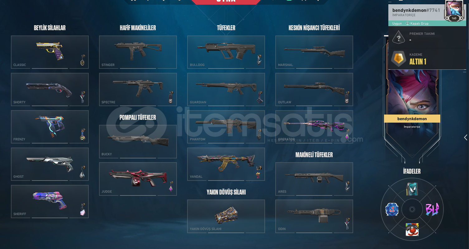 Hesap Hakkında Bilgi;Mail Teslim |Arcane Eldivenleri+Arcane Vandal +Evrim Operator+Sürat Canavarı Sheriff olmak üzere 16 skin mevcutturHesap ALTIN 1Hesap 160 LevelHesapta 305 Radiant Puanı VarHesap Envanter değeri +16k VPHesabı dilediğiniz gibi kullanabilirsinizSatın alırken video kayıdı açmayı unutmayın