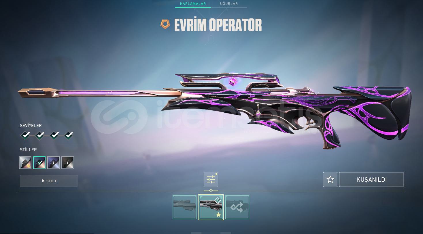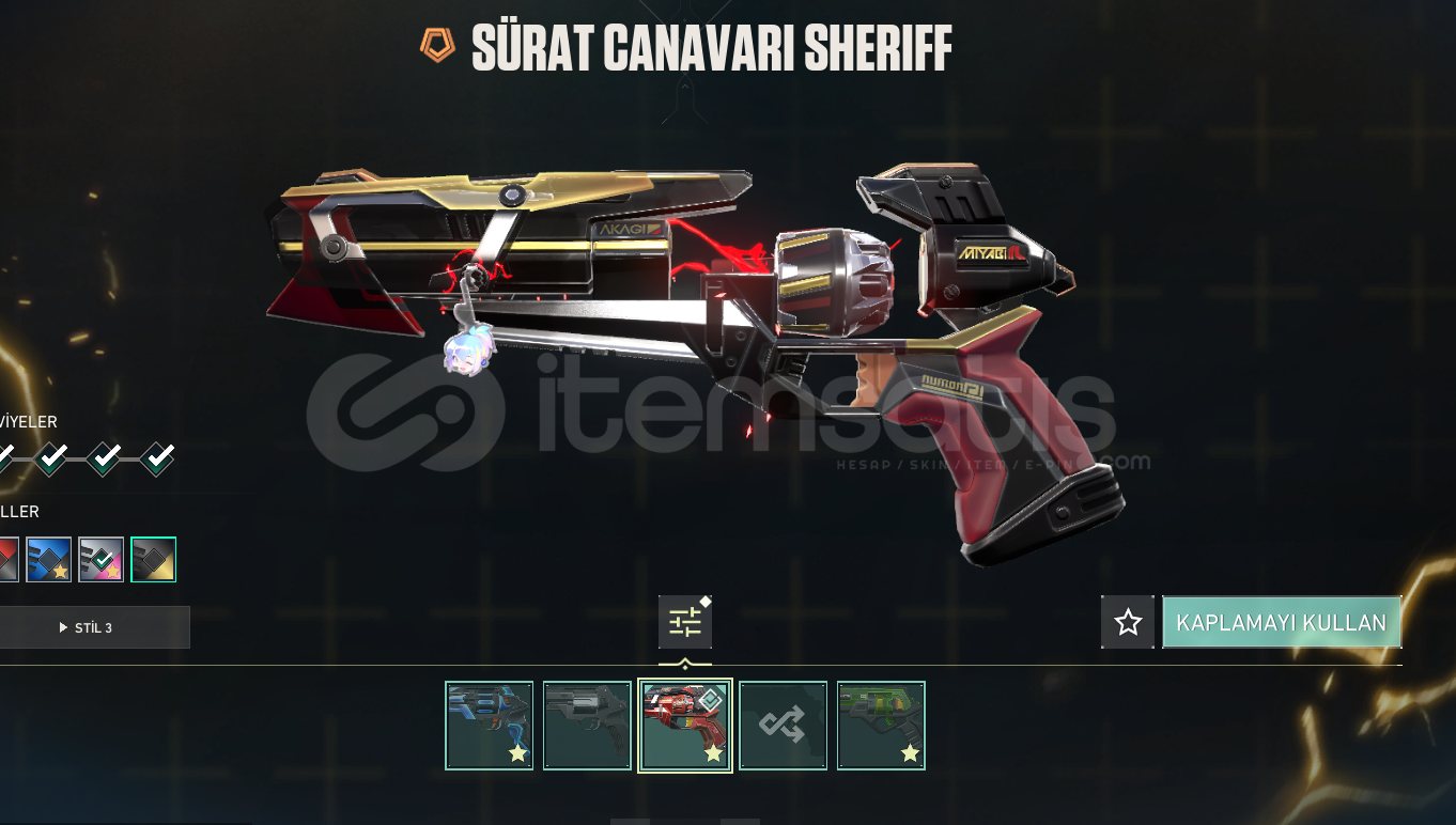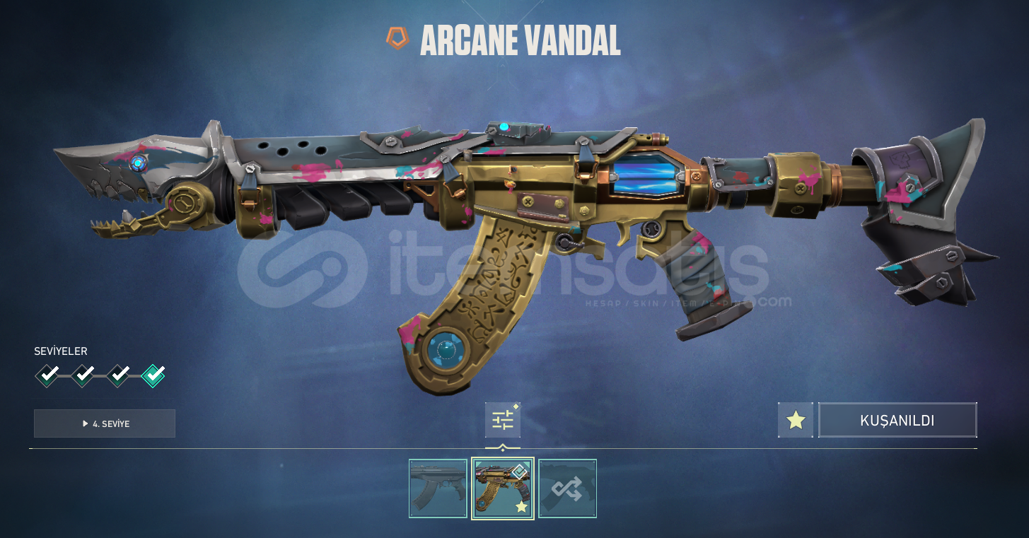 • Arcane Eldivenleri+Arcane Vandal +Evrim Operator+Sürat Canavarı Sheriff olmak üzere 16 skin mevcuttur