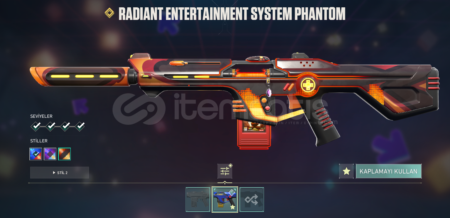 • Uzaylı Avcısı Bıçak+Radiant Entertainment Phantom +Zamanın Ötesi Vandal+İyon Vandal olmak üzere 18 skin mevcuttur