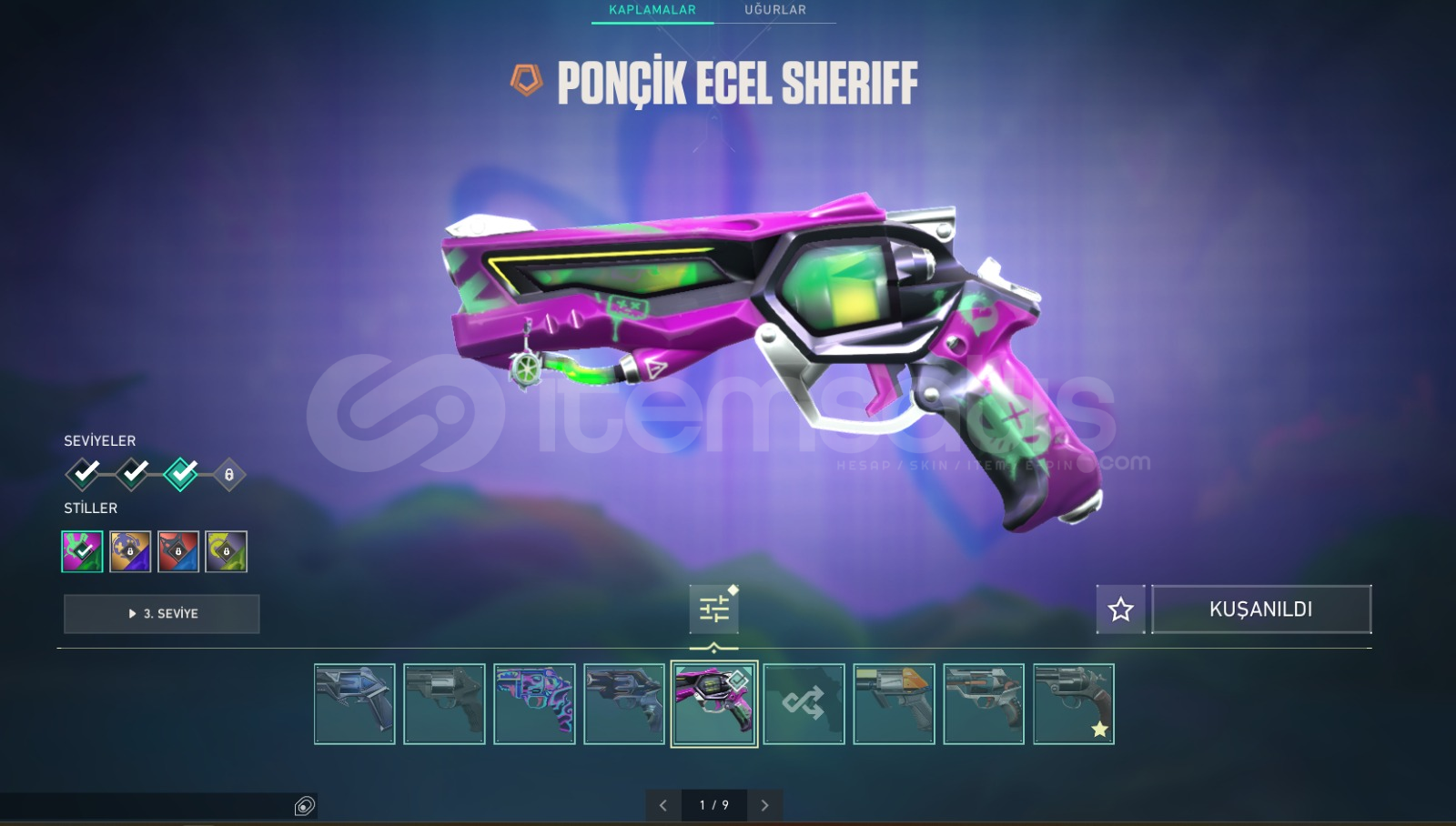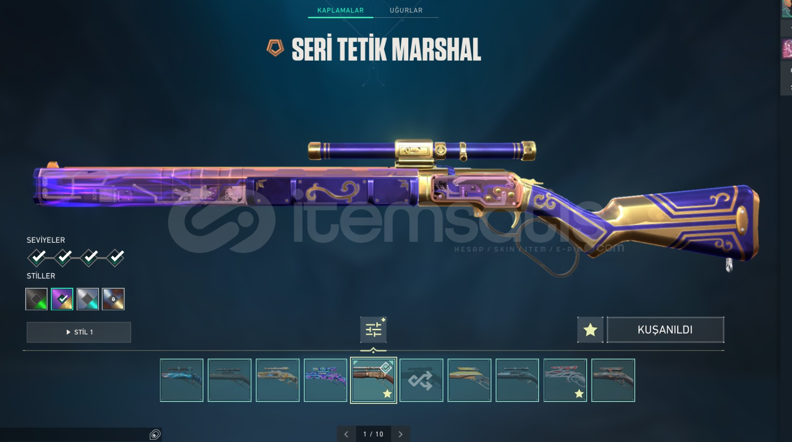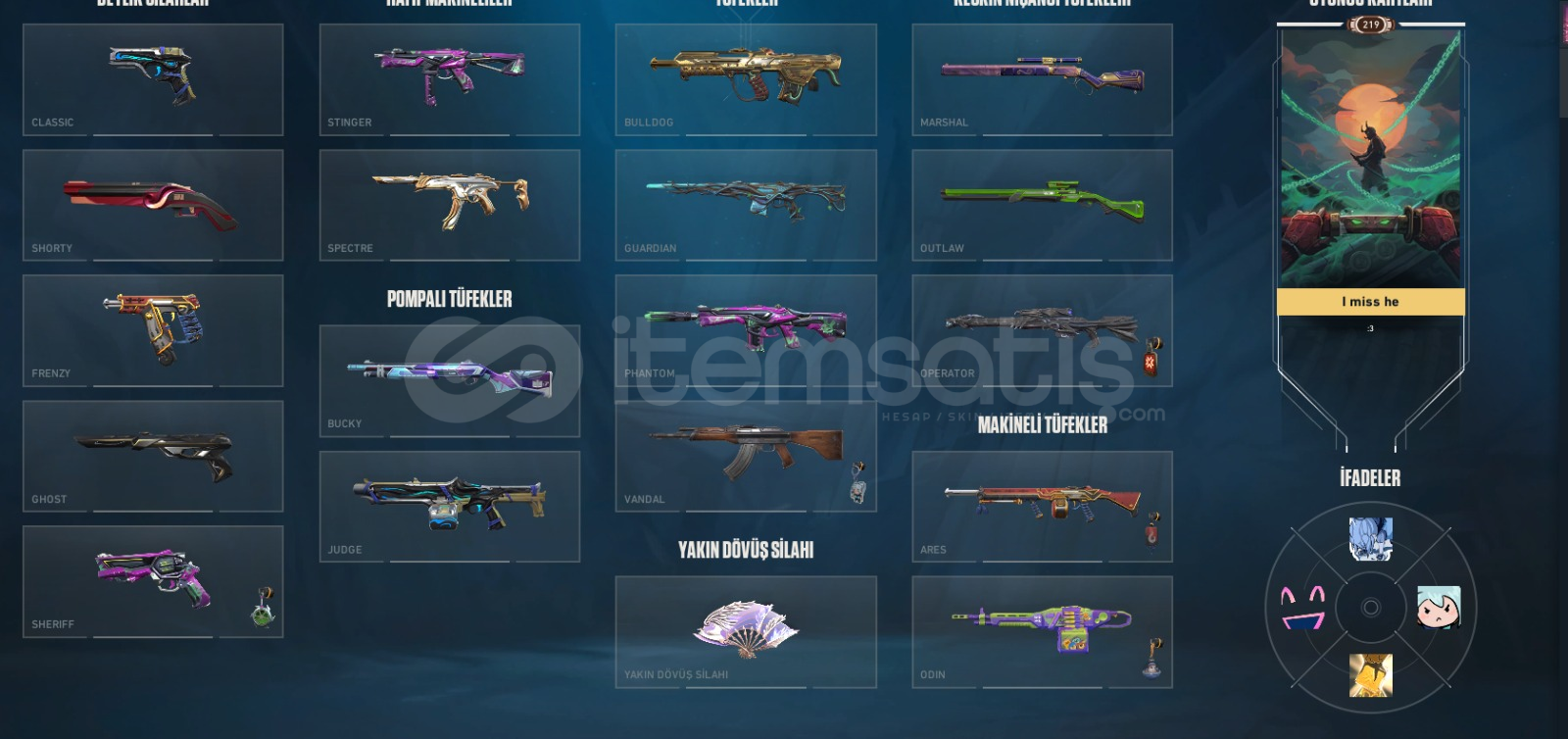 Oni frenzyUlu pençe ghostSherif:Seri tetikPonçik ecelStinger :Ponçik ecel stingerSpectre:yitik spectreBuldog:oni buldogGuardian: gaia guardianPhantom:YağmacıZamanın ötesiPonçik ecelFelaketin kalbiSpectrumVandal:KuronomiYağmacıKaosOniRgxAnomaliKaraborsaChampions25Marshal:GaiaSeritetikOperatör:Radiant enterraintmentPonçik ecelKaosEjderAres:OniBıçaklar:ALAZ YELPAZESeri tetik baltaOni katanaPonçik ecelRgx kelebe...