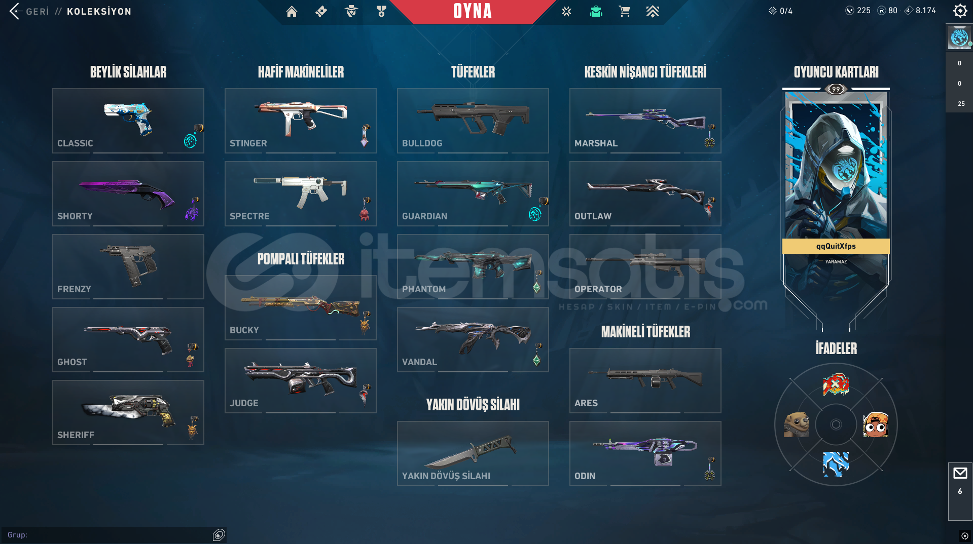 2 VANDAL 2 PHANTOM 1 BIÇAK 1 BUCKY 1 SHORTY 1 SHERİFF 1CLASİCC (LEVİATAN KAPSÜL) 1 SPECTRE 1 GUARDİAN 1 ADET DE BATTLE PASS VAR