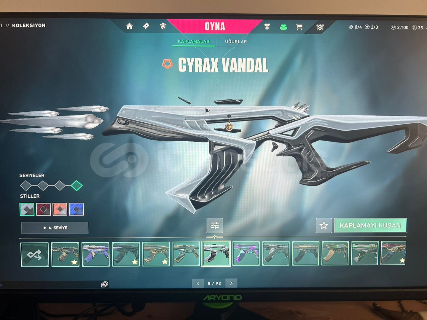 Fiyatta pazarlık mevcuttur e-mail ile teslim edilecektir lol hesabı da mevcuttur bolca skin vardır Bıçaklar:Champions2024 Kılıcı,RGZ 11Pro Karambit,Anomali KelebekVandallar:Asil Vandal.anomali vandal,champions 2025 vandal,oni vandal,cybrex vandal,aeomndır vandalsherrıf:Exo Sherrıf,Yağmacı SherrıfBulldog:Yıldız Belası BulldogGuardian:Yağmacı GuardianClassic:Asil ClassicGhost:Anomali Ghost,Yağmac&...