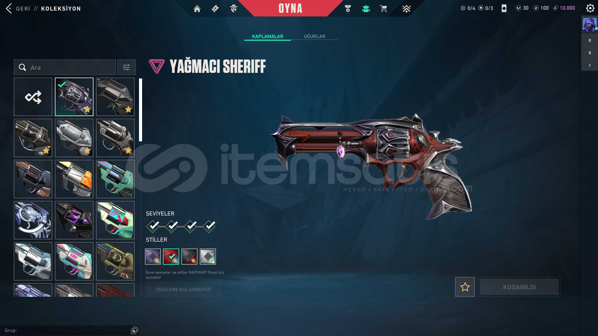 Asil Classic, Yitik Classic, Asil 2.0 Frenzy, Fatih Ghost, Gainanın İntikamı Ghost, Yağmacı, Anomali, Işıklar Muhafızı, İyon, Seri Tetik, Sheriffler, Rgx 11z Pro Guardian, Delipop Operatör,Yitik Spectre, Evori Rüya Kanatlar Odin ve daha sayamadığım bir sürü güzel skinler hesapta mevcuttur. Yaklaşık 5 Yıldır aktif olarak oynadığım hesabım ve 19 bin tl yakın para harcanmıştır. 285 leveldir hesap. Pazarlık mevcuttur.