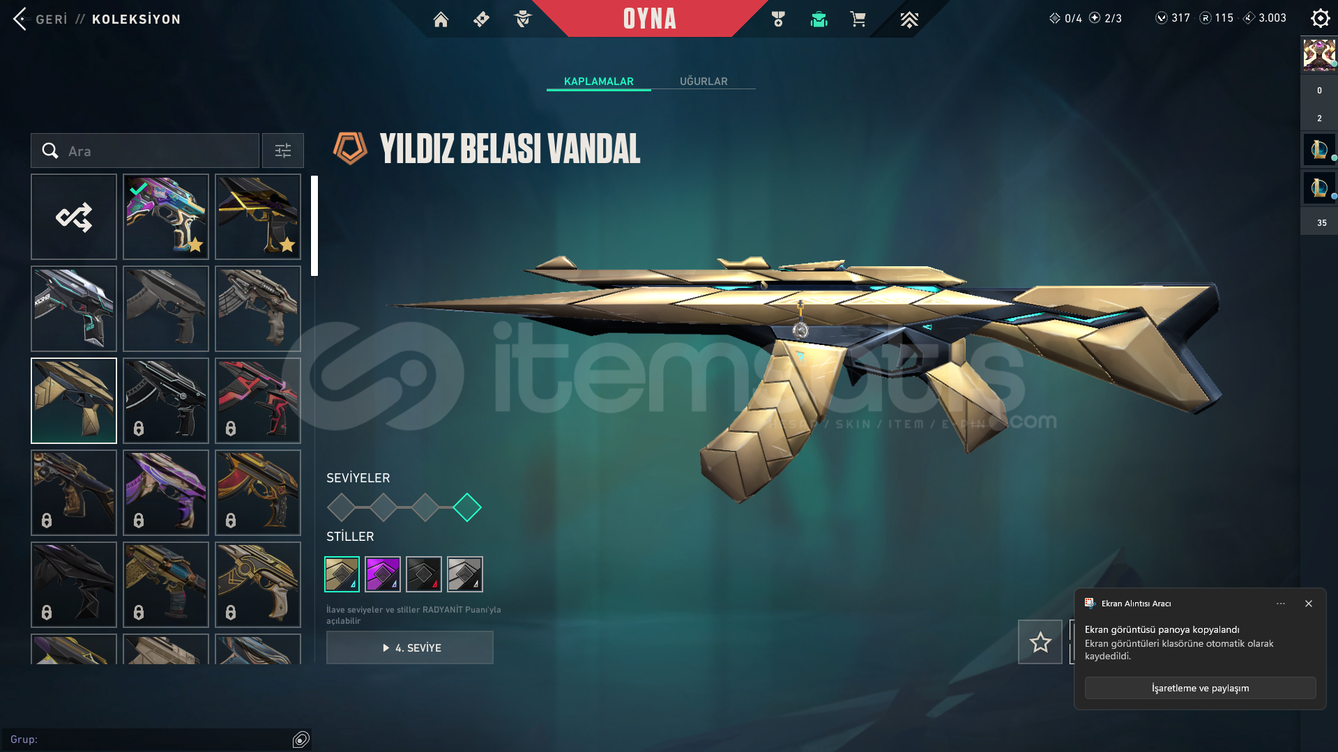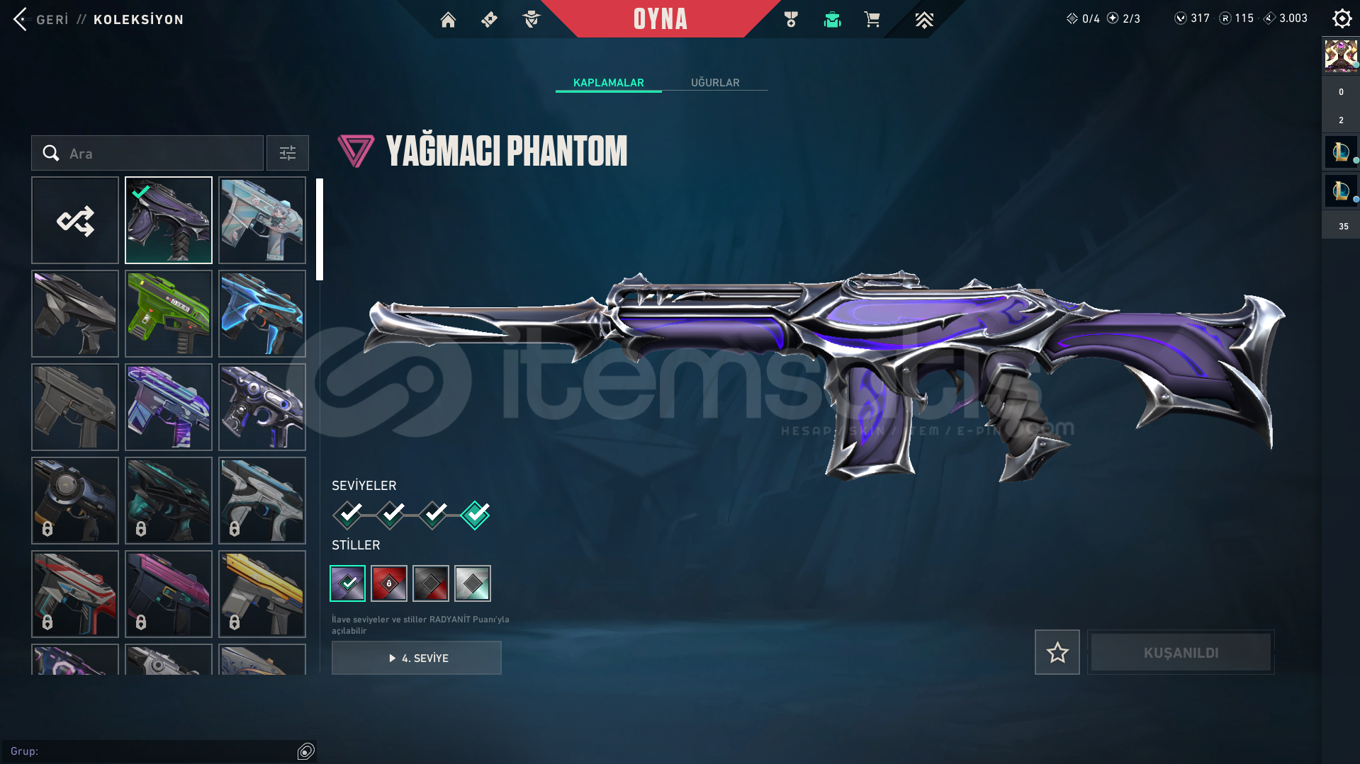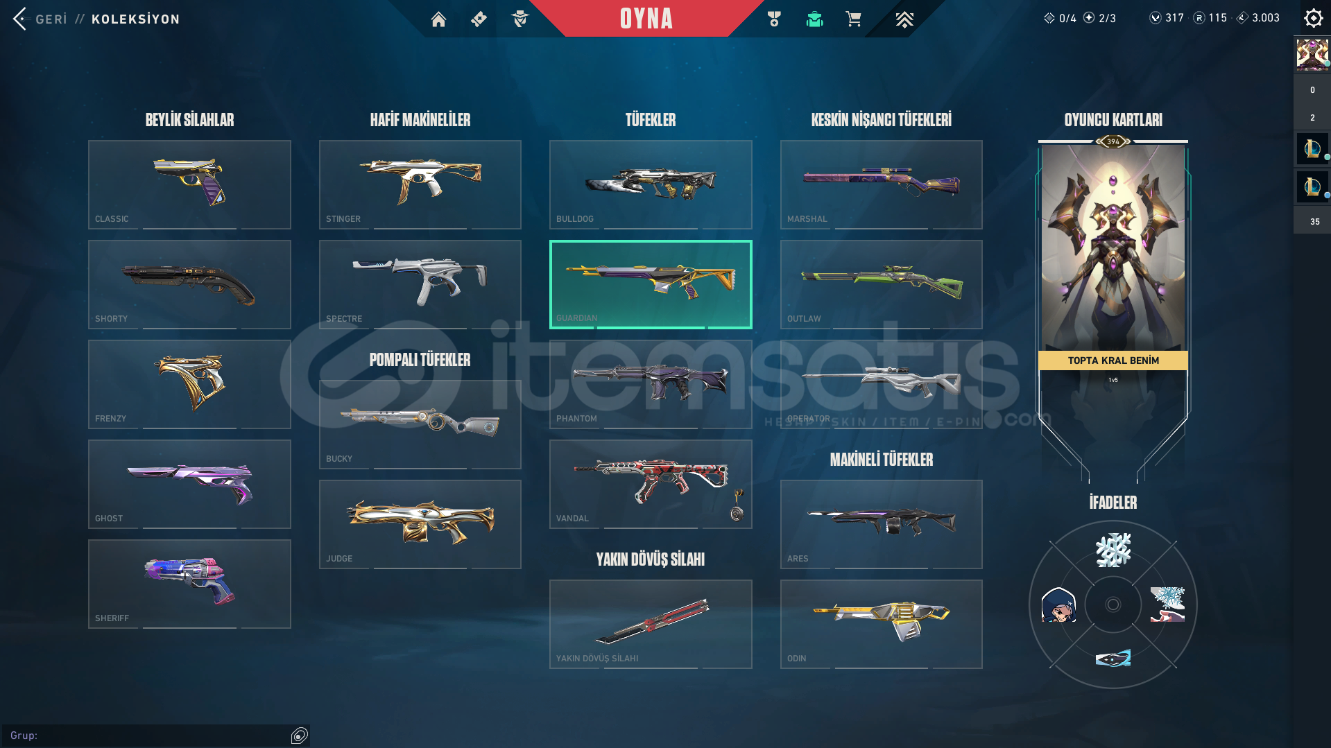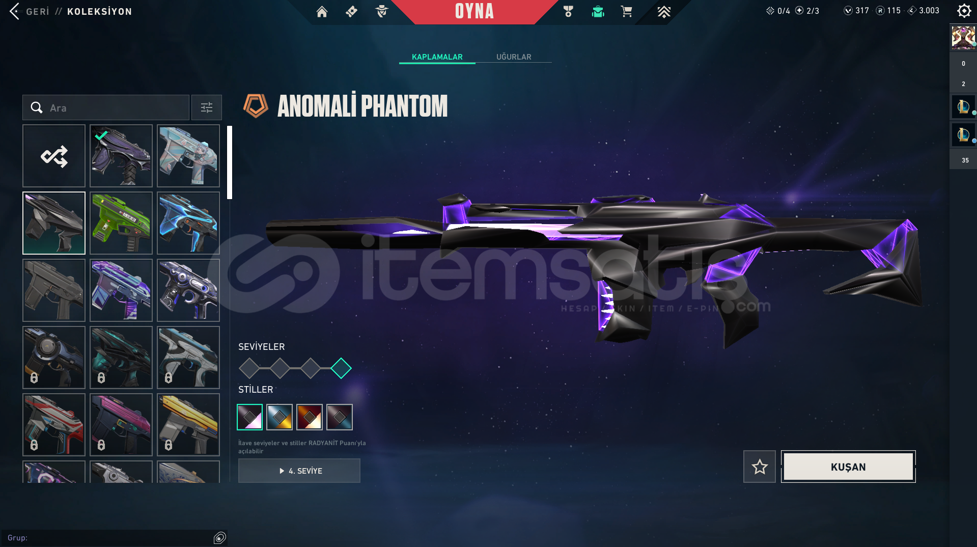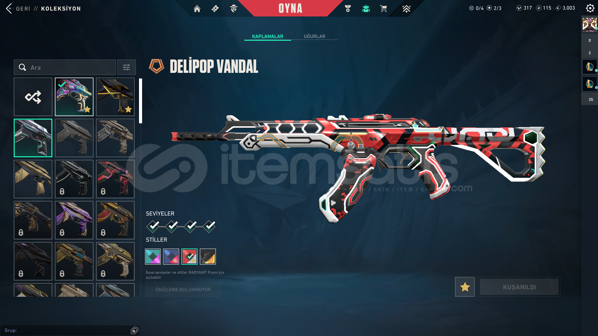 • SIRASIYLA SKİNLER ASİL CLASSİC,KAOS SHORTY,FATİH FRENZY,ULUPENCE GHOST,SERİ TETİK SHERRİF,FATİH STİNGER,İYON SPECTRE,KÖKEN BUCKY,FATİH JUDGE,AEMONDIR BULDOG,YAĞMACI,ANOMALİ PHANTOM,CHAMPIONS 2023,DELİPOP,YILDIZ BELASI VANDAL,RGX KELEBEK,SERİ TETİK MARSHALL,İYON OPERATÖR,ANOMALİ ARES VE ASİL ODİN