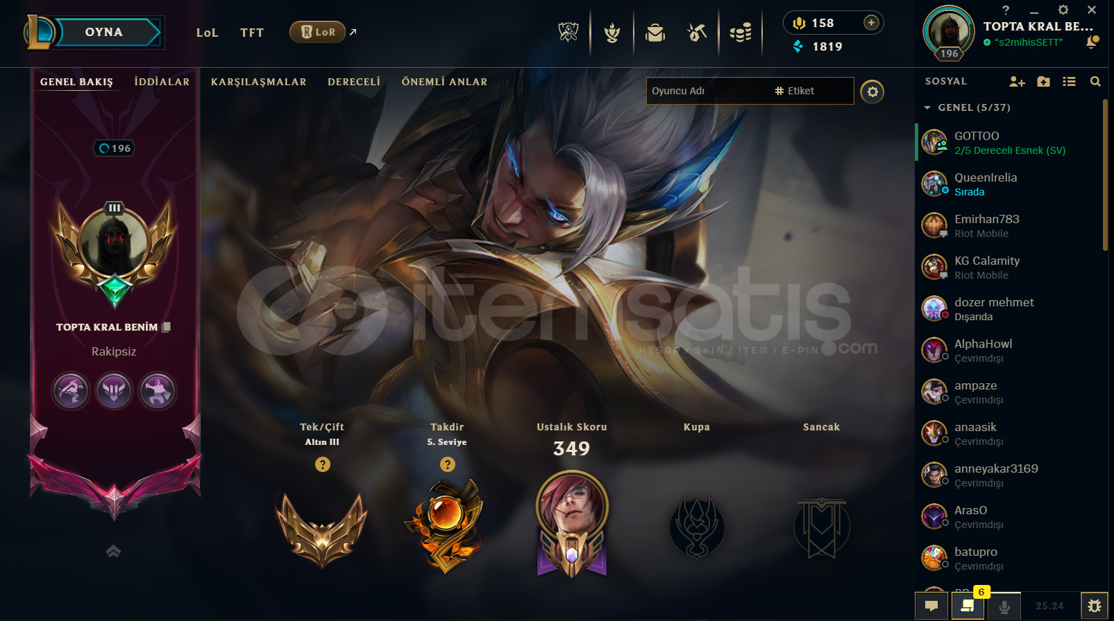 • HESAP MAKSİMUM DIAMOND 2 RANKINI GÖRDÜ ŞUAN İSE PLAT 1