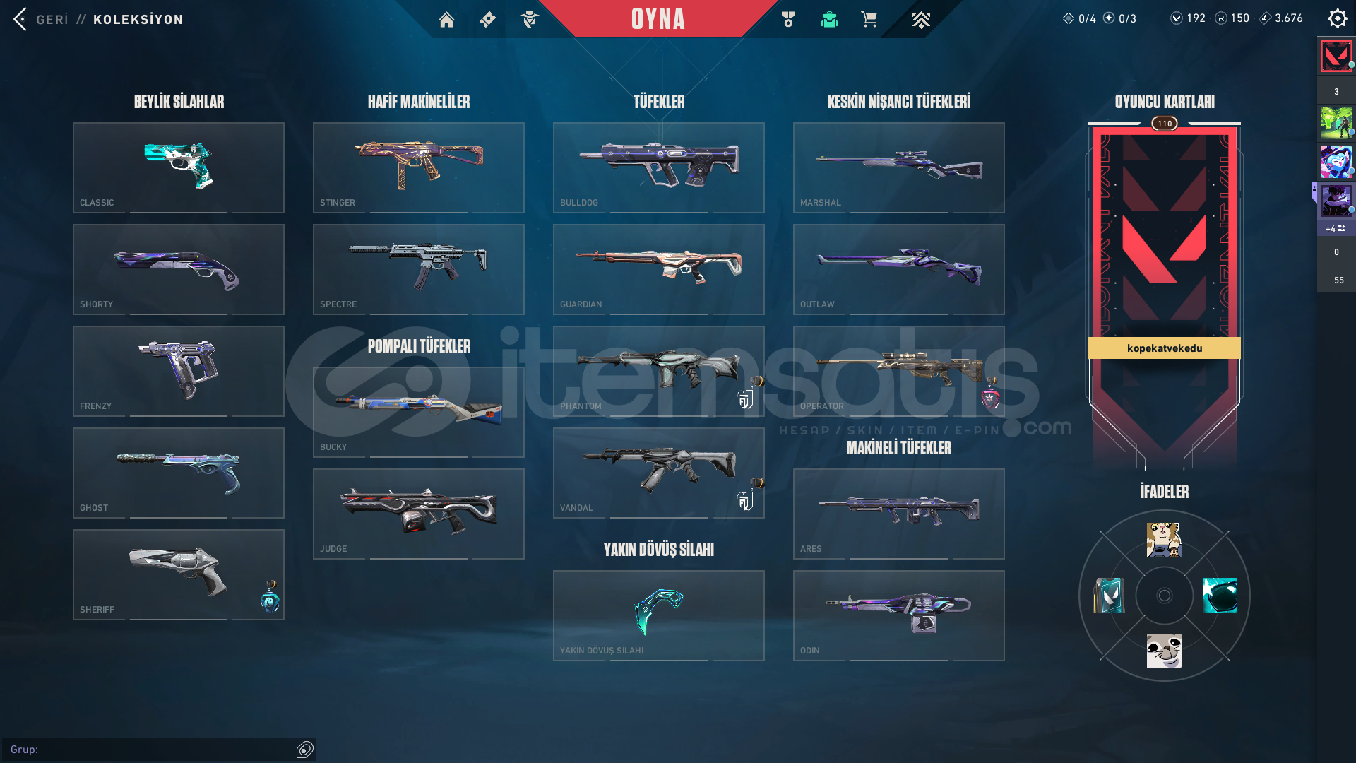 hesabın içinde resimlerde gördügünüz gibi vct karambit yagmacı vandal yagmacı phantom iyon phantom fut classic iyon sherrif cesur yürek ghost battle pass var. Hesabı aldktan sonra gönül rahatlıgıyla oynuyabilirsiniz hesapta asla şifre degişmeymiş ya da farklı bi durum yaşanmaz . Olası bi durumda paranız iade edilir Hesabı degerinin çok altında veriyorum para ihtiyacım oldugu için Alana şimdiden hayırlı olsun