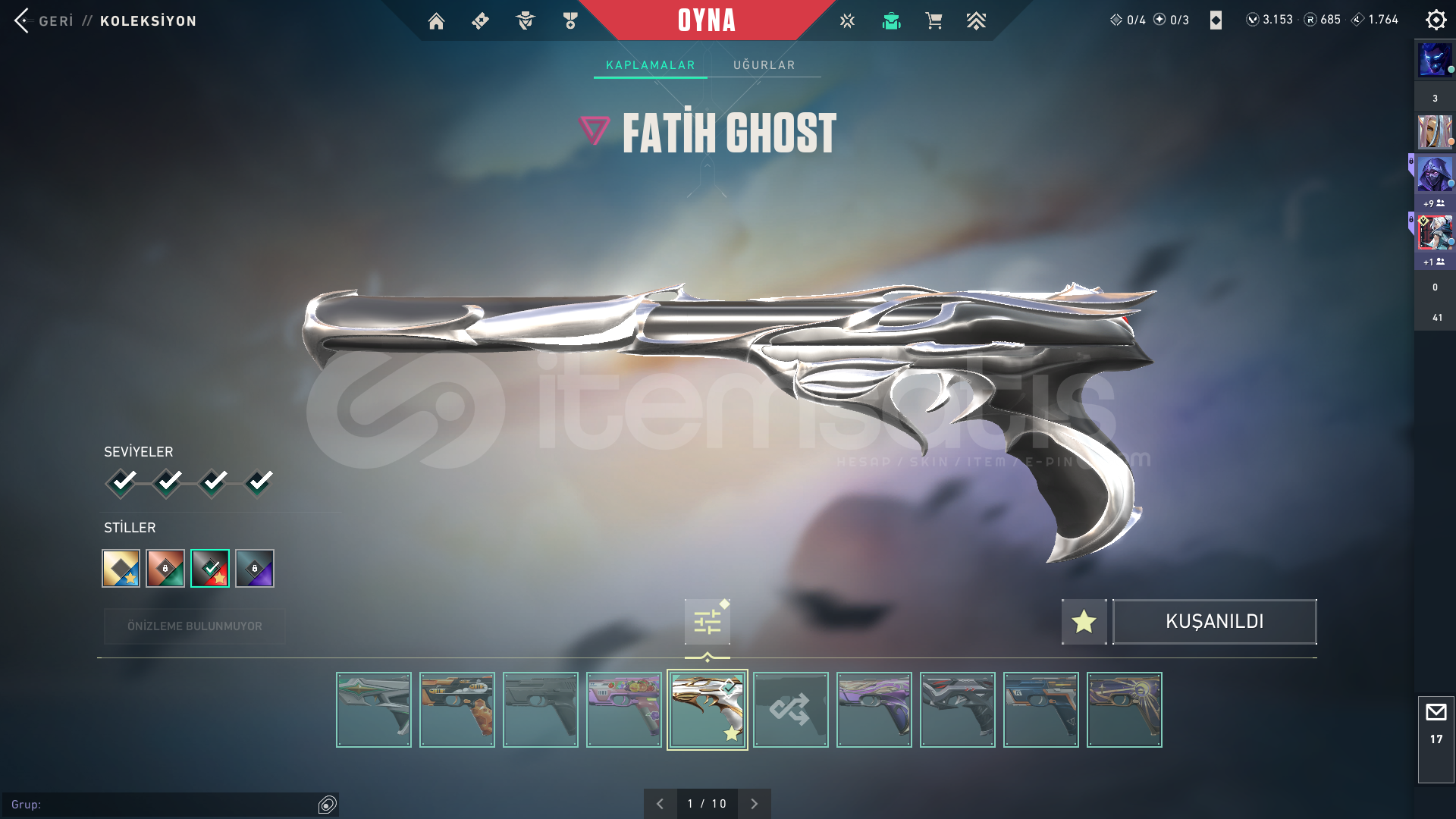 ASKERE GİDECEĞİM İÇİN SATIYORUM SIFIR BANSIZ TEMİZ MAİNLİK HESAPTIR. PAZARLIK YAPILIR.FATİH GHOSTBBL SETKAOS STİNGERANOMALİ VE KURONAMİ SHERİFFÖZEL HAREKAT PROTOKOL PHANTOMKAOS YİTİK YAĞMACI ULUPENÇE SİHİRPUNK KURONAMİ IŞIK MUHAFIZLARI GAİA ASİL VANDALRGX KARAMBİT ASİL KARAMBİT CATRİNA DELİPOP HANÇER KURONAMİ UZAYLI AVCISI VCT 2025F...