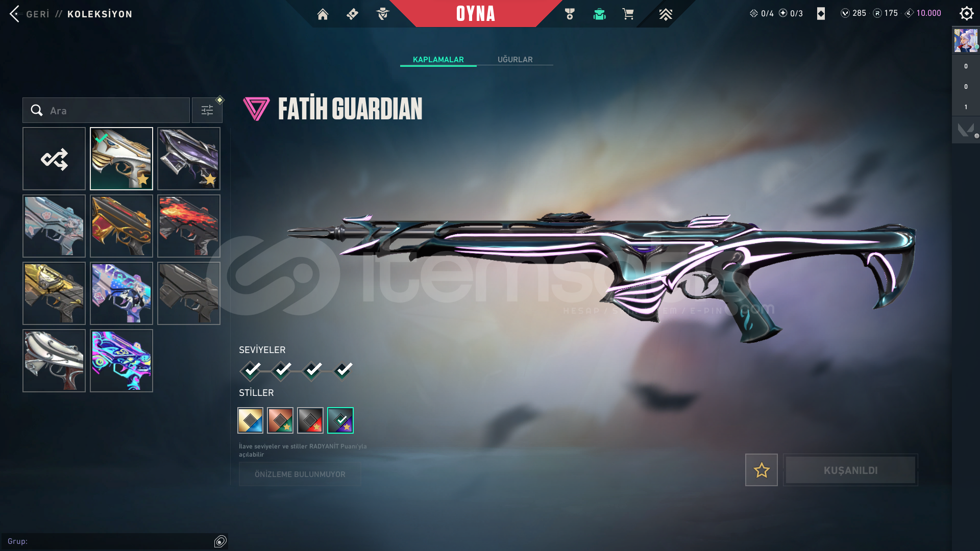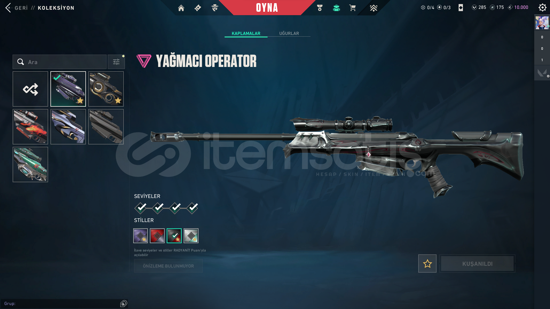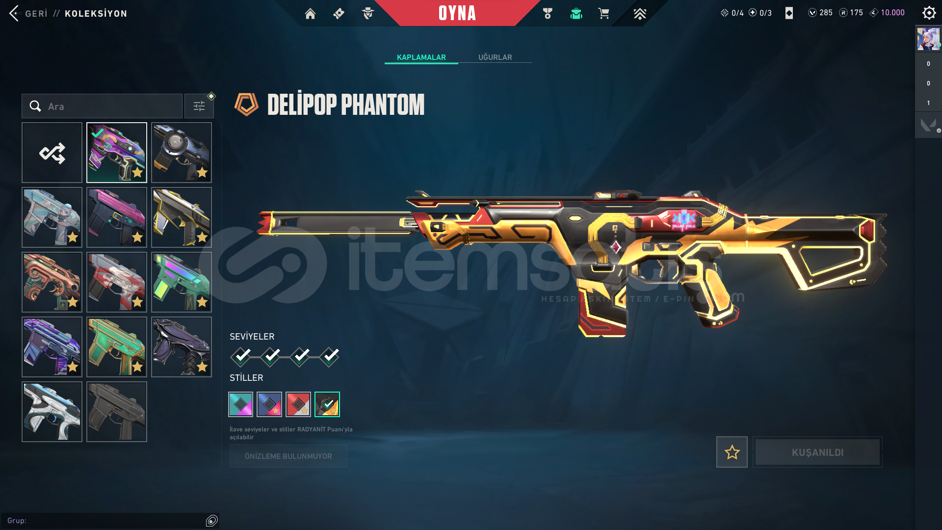 5 DAKİKADA TESLİMATHESAP İÇERİĞİ;-asil classic-oni shorty-oni frenzy-yağmacı ghost-yağmacı sheriff-yağmacı spectre-oni bulldog-fatih guardian-yağmacı guardian-asil phantom-delipop phantom-galeri phantom-yağmacı phantom-yıldız belası vandal-ejderin buyruğu vandal-gaia vandal-ışık muhafızı vandal-oni vandal-yağmacı vandal-sihirpunk marshal-yağmacı ...