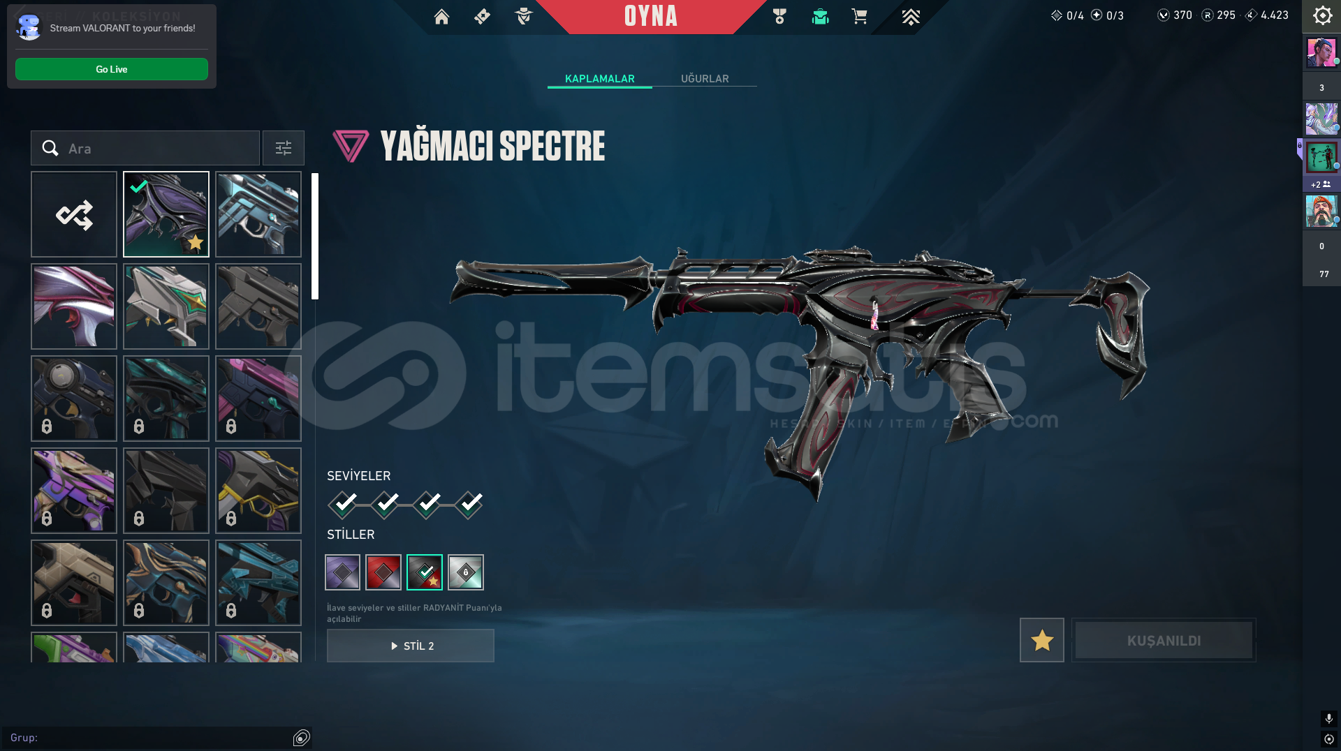 Main hesabımı satıyorum CİDDİ ALICI YAZSIN Bıçaklar: Champions 2025Oni KatanaRgx KarambitBeta Bıçağı Gaianın Gazabı Vandallar:GaiaDelipopAsilYağmacıChampions 2025Cesur Yürek Phantomlar:Sır ÇiçeğiRadiant Spectre: Yağmacı Guardian:Yağmacı Clasicc:Asil Ghost:GaiaYağmacı Operatör: Sır Çiçeği Sheriff:Seri Tetik