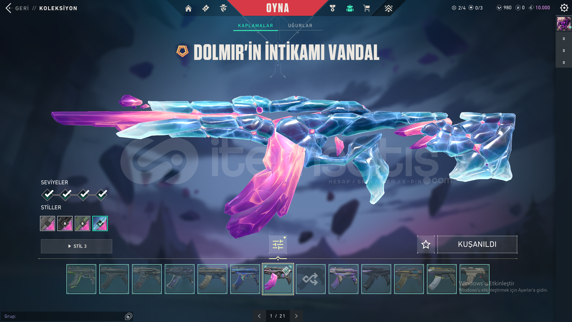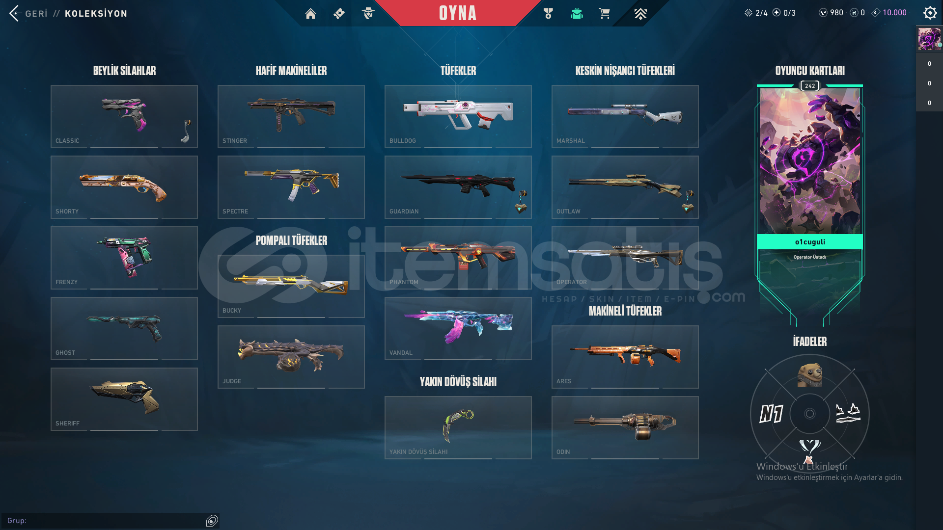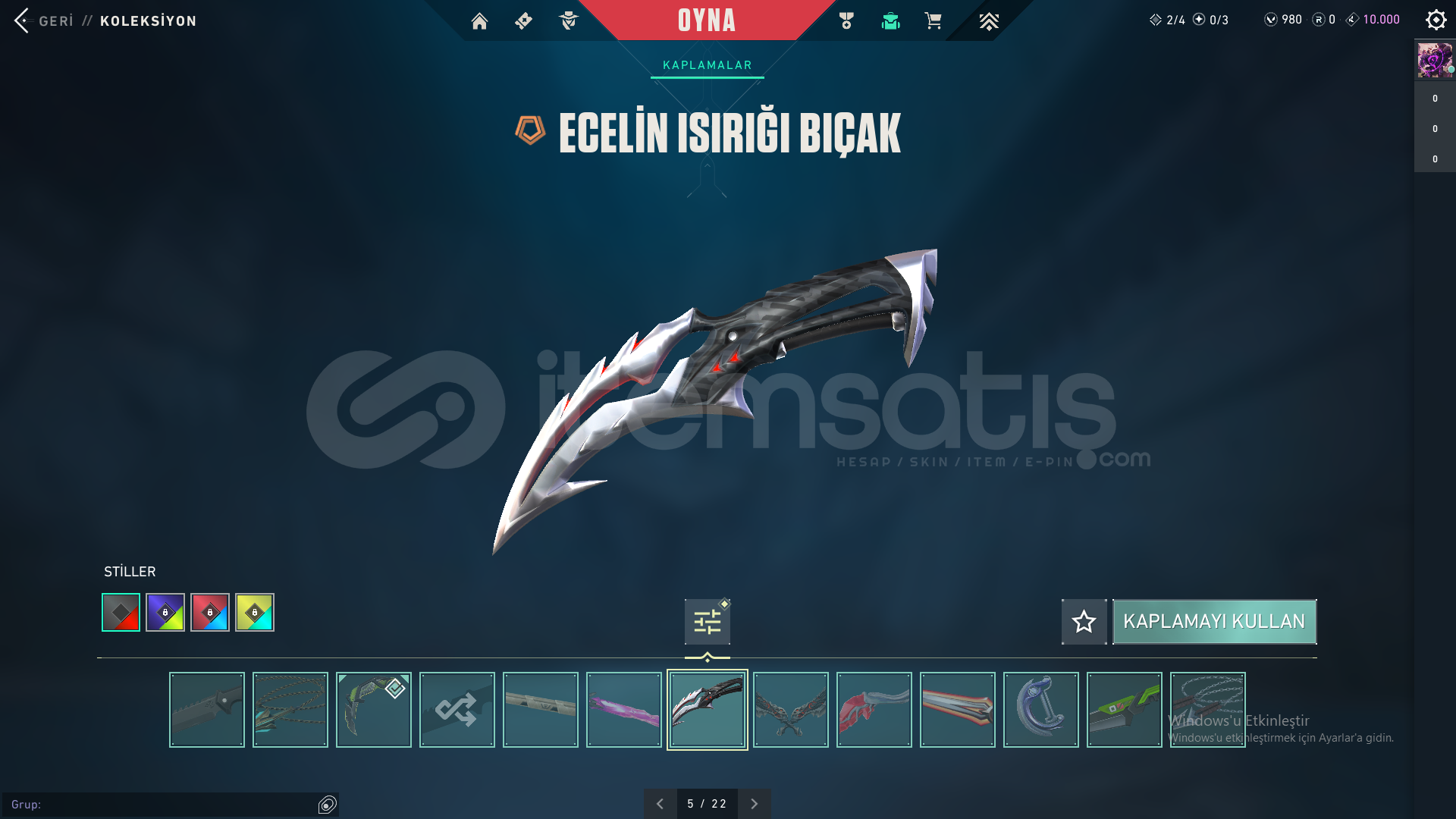 Full Hesap PLAT 1 22 tane bıçak 21 vandal silahlar battle pas değil setler full hepsi bütün silahlarda en az 5 tane var bütün karakterler açık pazarlık payı olabilir