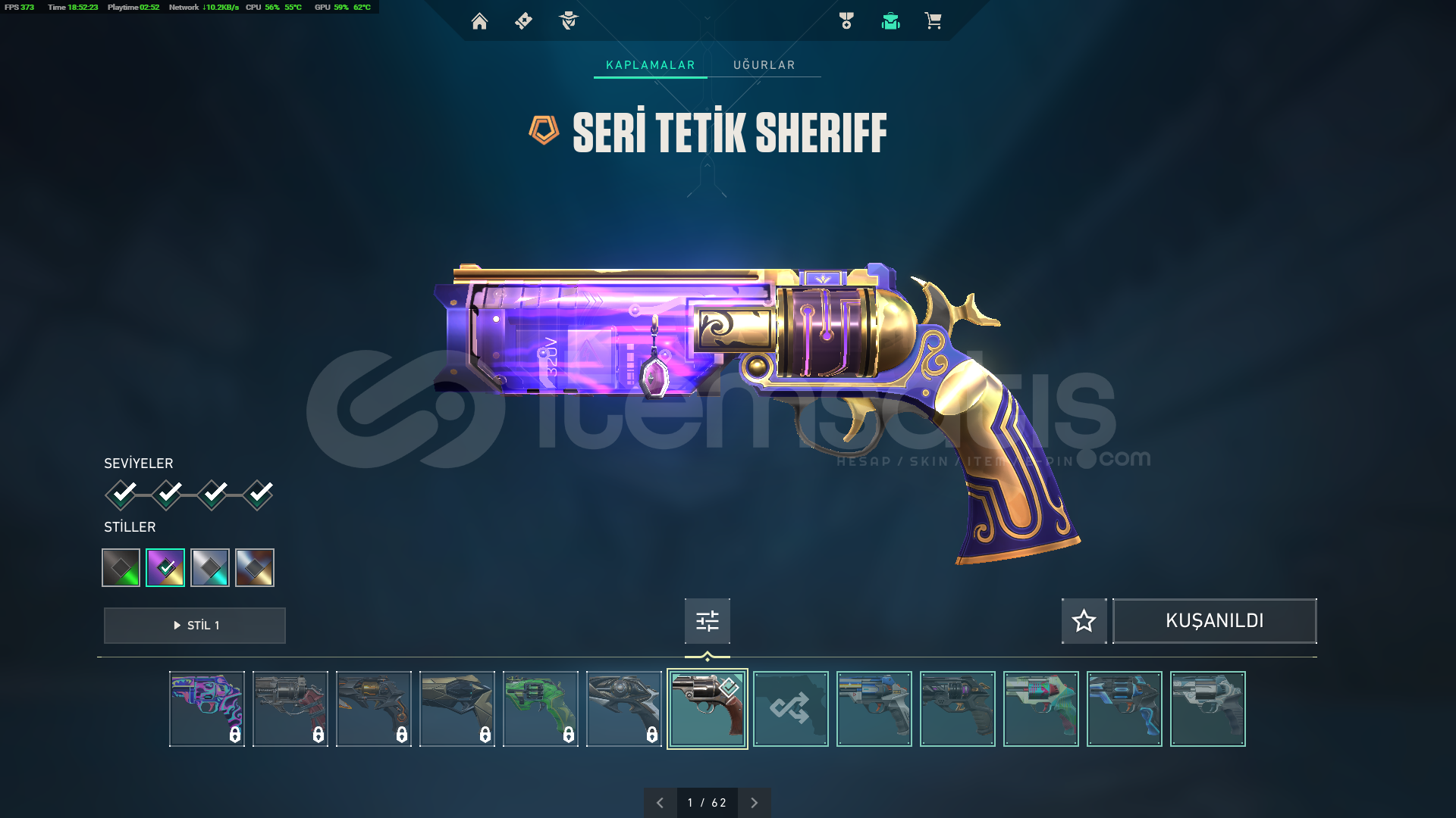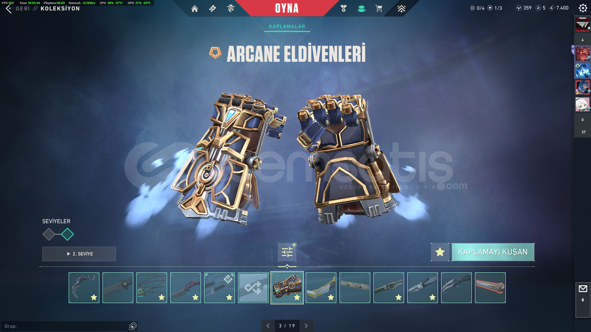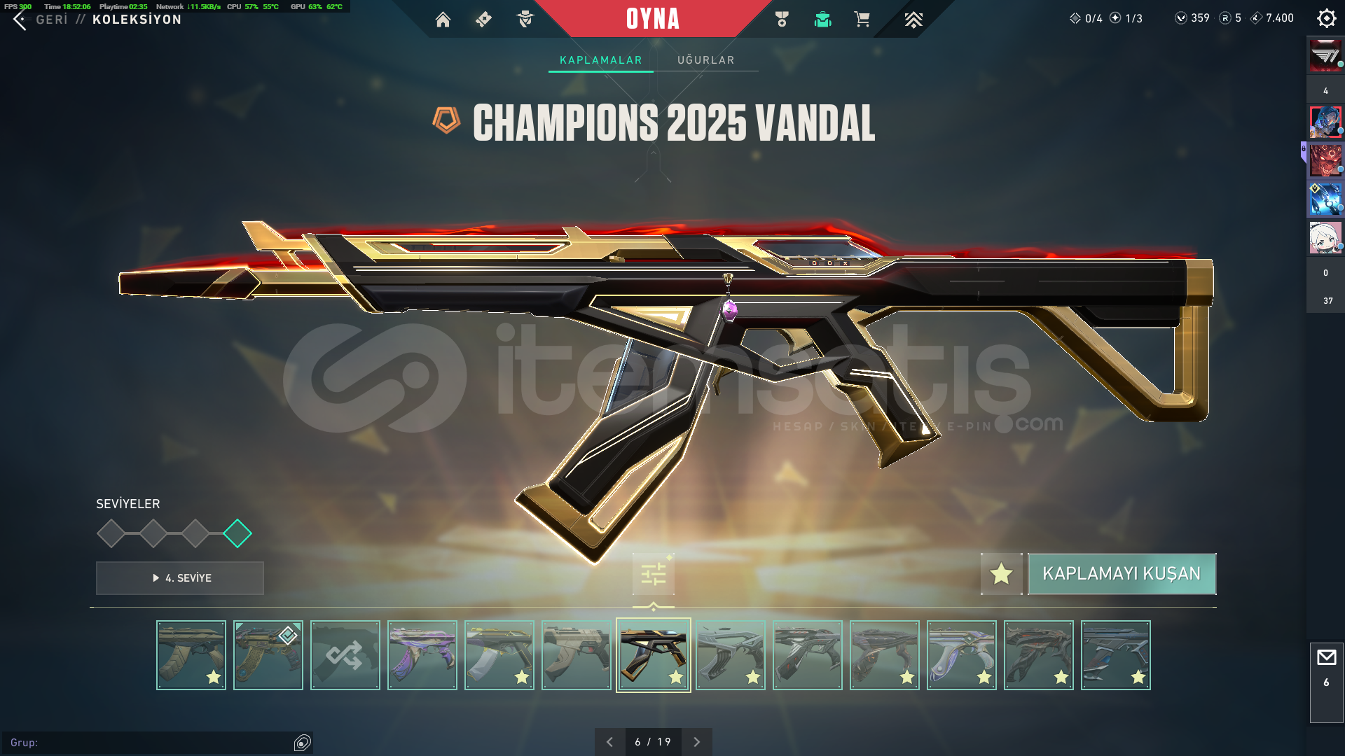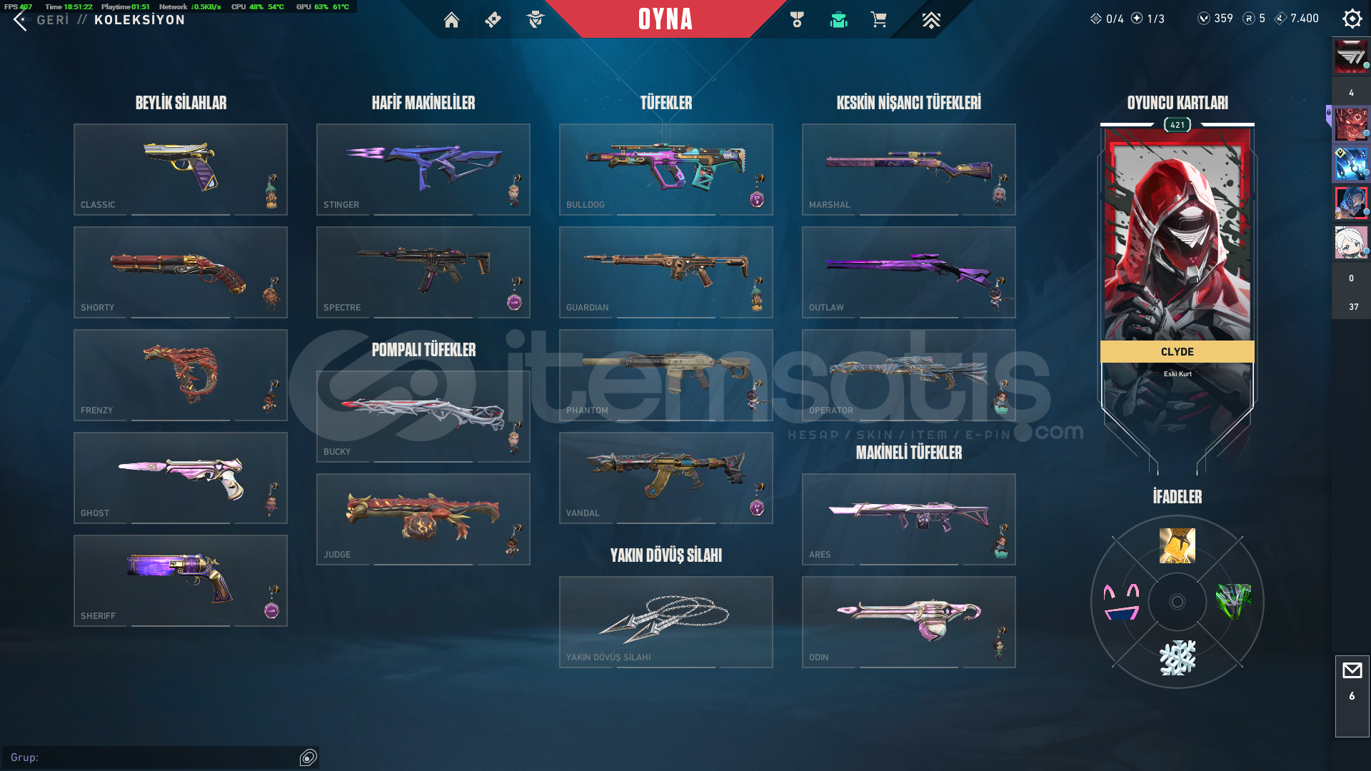 Hesap 421 seviye olup aktif olarak Gold3 rankındadır. Hesap 2021 yılından beri aktiftir ve benden başka kullanan olmamıştır. Tek maildir. Hesapta savaş biletleri hariç mağazadan alınmış 64 farklı skin, hareketli kartlar ve set kartları dahil olmak üzere 246 kart, 240 sprey, 9 donatı ve mağazaya özel ve ücretli olarak gelen Valorant Go 2. Cilt Valorant Mini Karakter Figür uğurlukla...