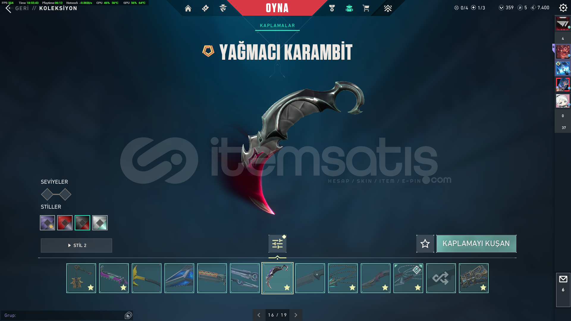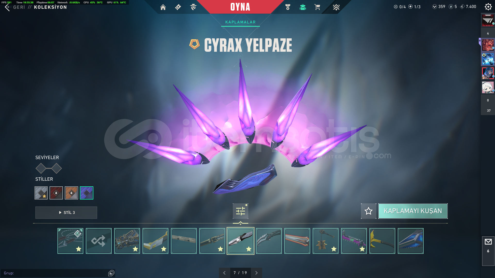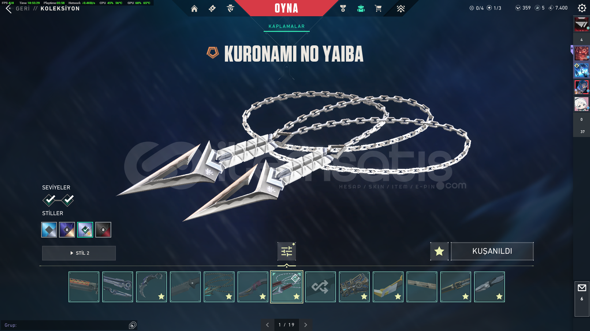 Bıçak: Kuronami, Arcane Eldivenleri, Asil Karambit, Champions 2025 Kelebek, Cyrax Yelpaze, Kaos Gürzü, Ponçik Ecel Testere, Yağmacı Karambit, Yıldız Belası Zincir, Zifiri Tırpan (10)