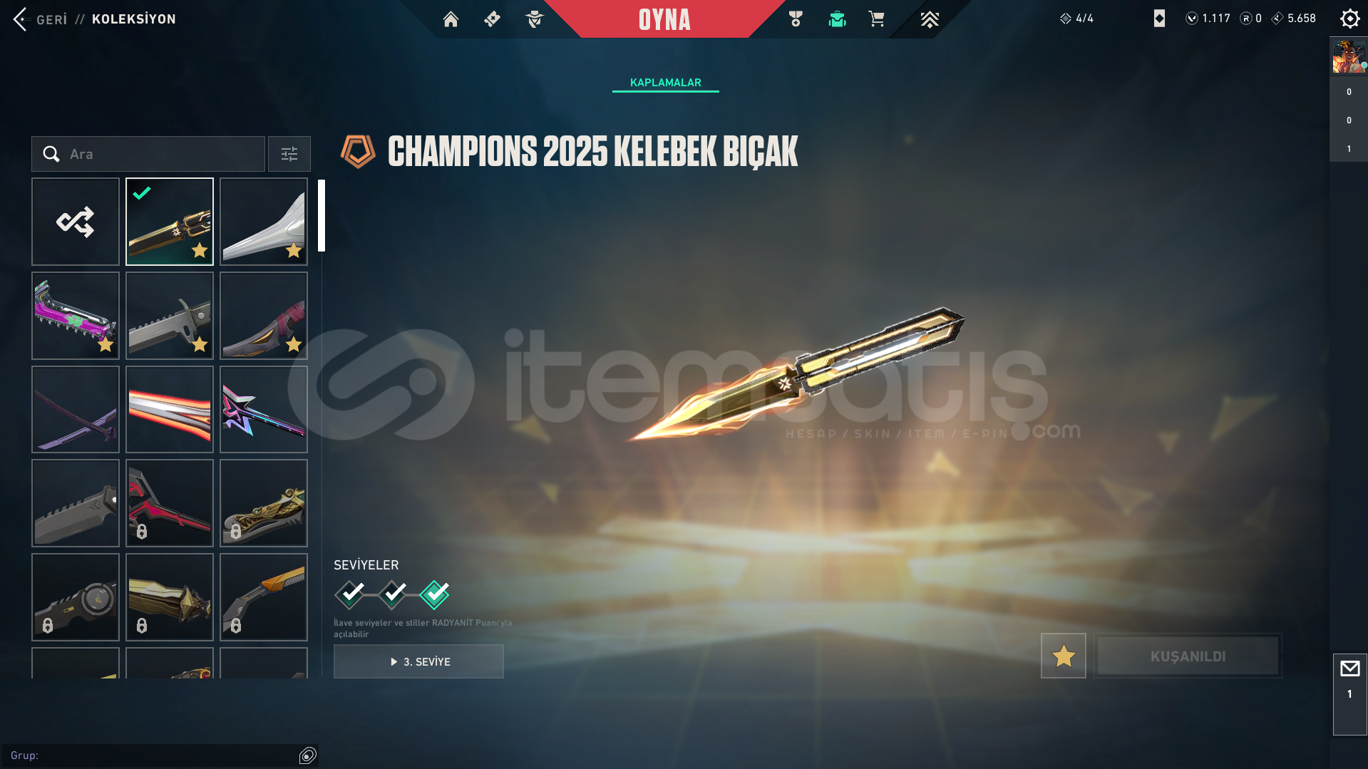 HesaptaExo kılıçChampion 2025 VandalEjder ateşi VandalDolamirin intikamı VandalOni VandalFaz koruyucu VandalPonçik phontomRgx phontamPonçik phontomZifir seti fullPonçik ecel seti fullÇarpışık alemler ghostFaz ghostFaz outlawFaz VandalBıçaklarChampions 2025 kelebekUzaylı avcısıZifir tırpanPonçik ecel bıçağıİyon pençe+2 batlpassOpSır çiçe...