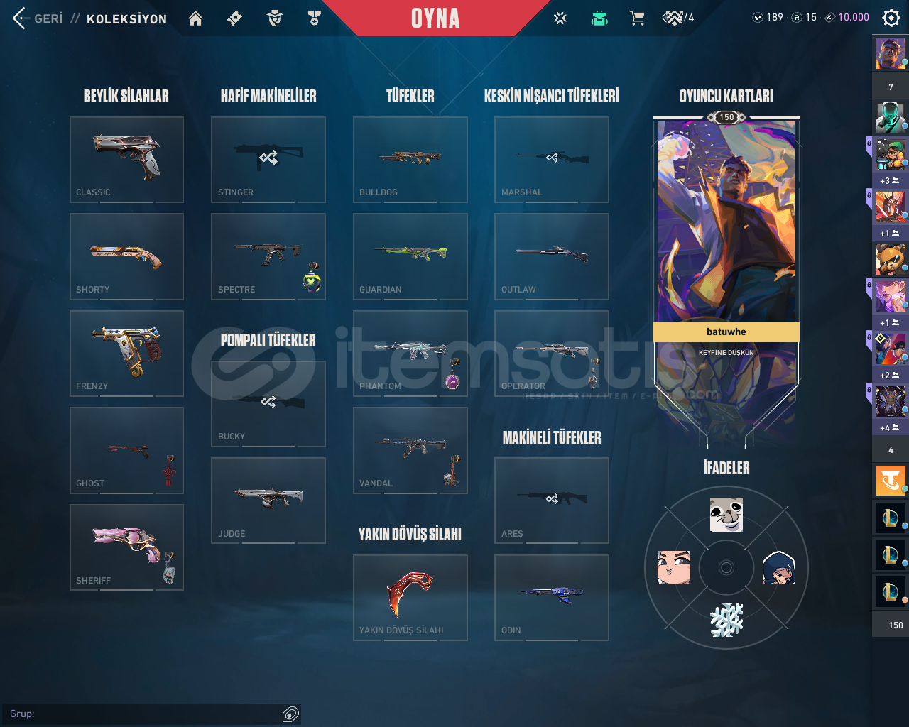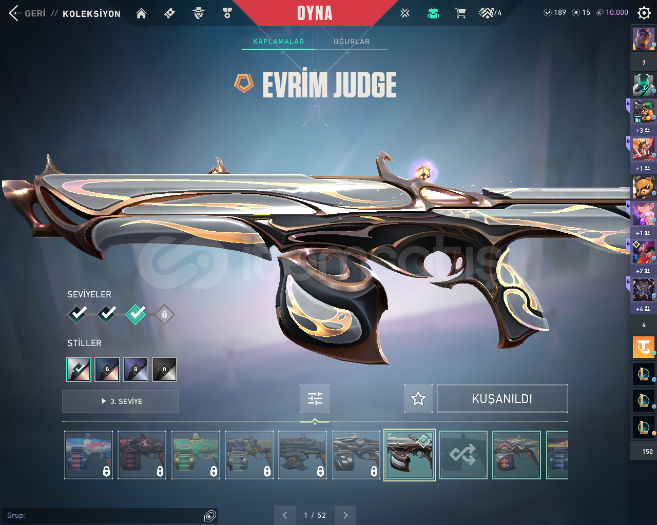 Evrim Classic Oni Frenzy Cyrax Ghost Sır Çiçeği ŞherifKuronomi Spectre Aemondır BulldogRgx Guardian Şimşek Outlaw Evrim Judge Evrim Operator Kaos Vandal Yağmacı Vandal Gaianın İntikamı Vandal Yitik Vandal Evori Vandal Evrim VandalFatih Phantom İyon PhantomVct 2025 Karambit Evrim Asa Rgx 11Z Pro KelebekSemavi Yelpaze Uzaylı Avcısı Bıçağı Yoru'nun Janti Kelebeği