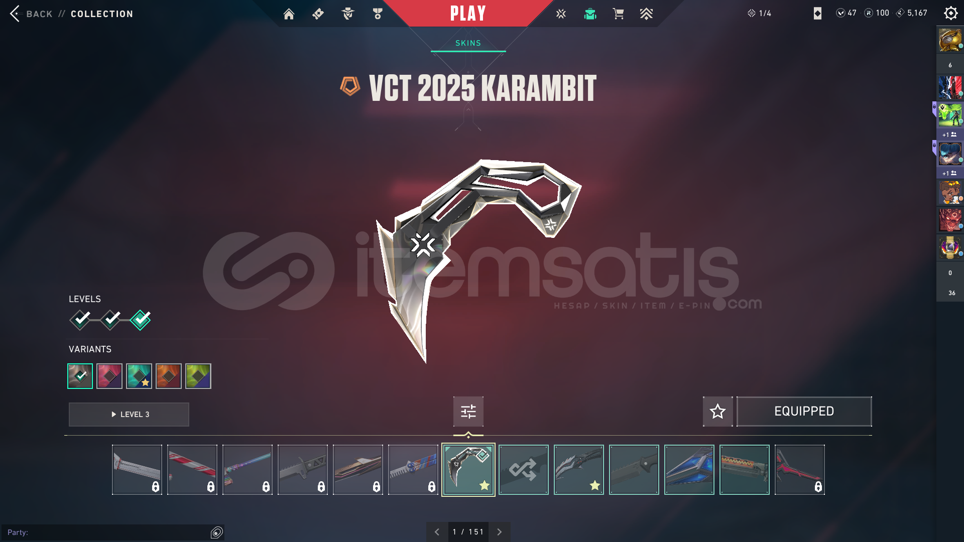 VCT KARAMBİT VE DİĞER 3 TANE BATTLEPASS BIÇAĞI VARDIR