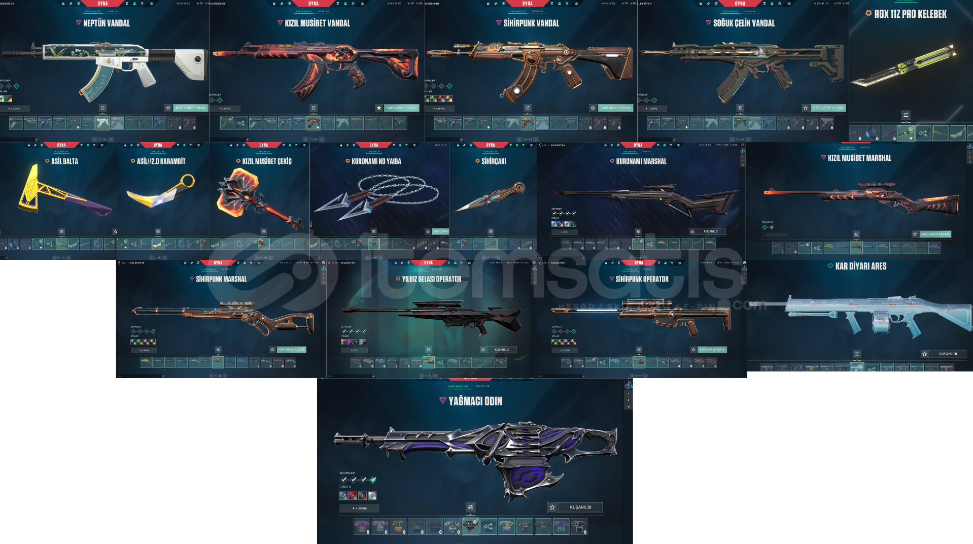 Hesapta birden çok set vardır Her silahta birden fazla skin bulunmaktadır alıcısına h.oPAZARLIK PAYI VARDIR