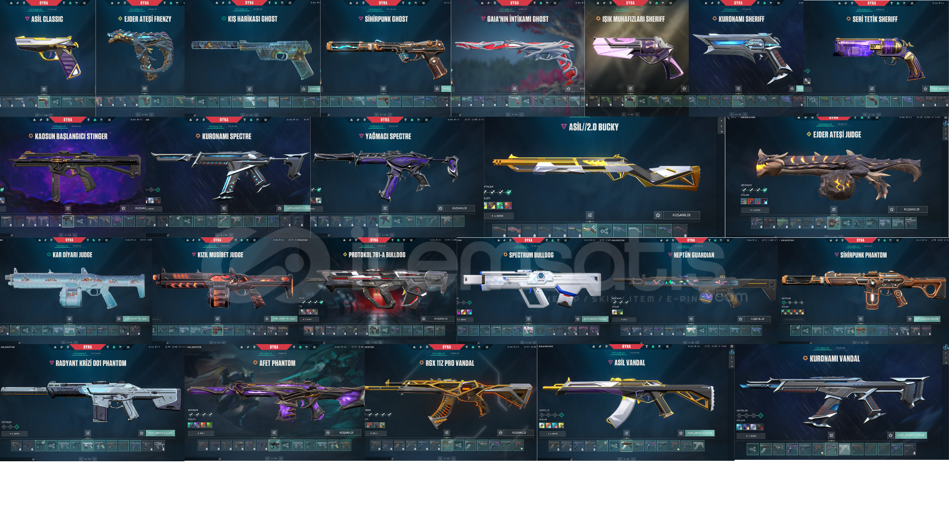 Hesapta birden çok set vardır Her silahta birden fazla skin bulunmaktadır