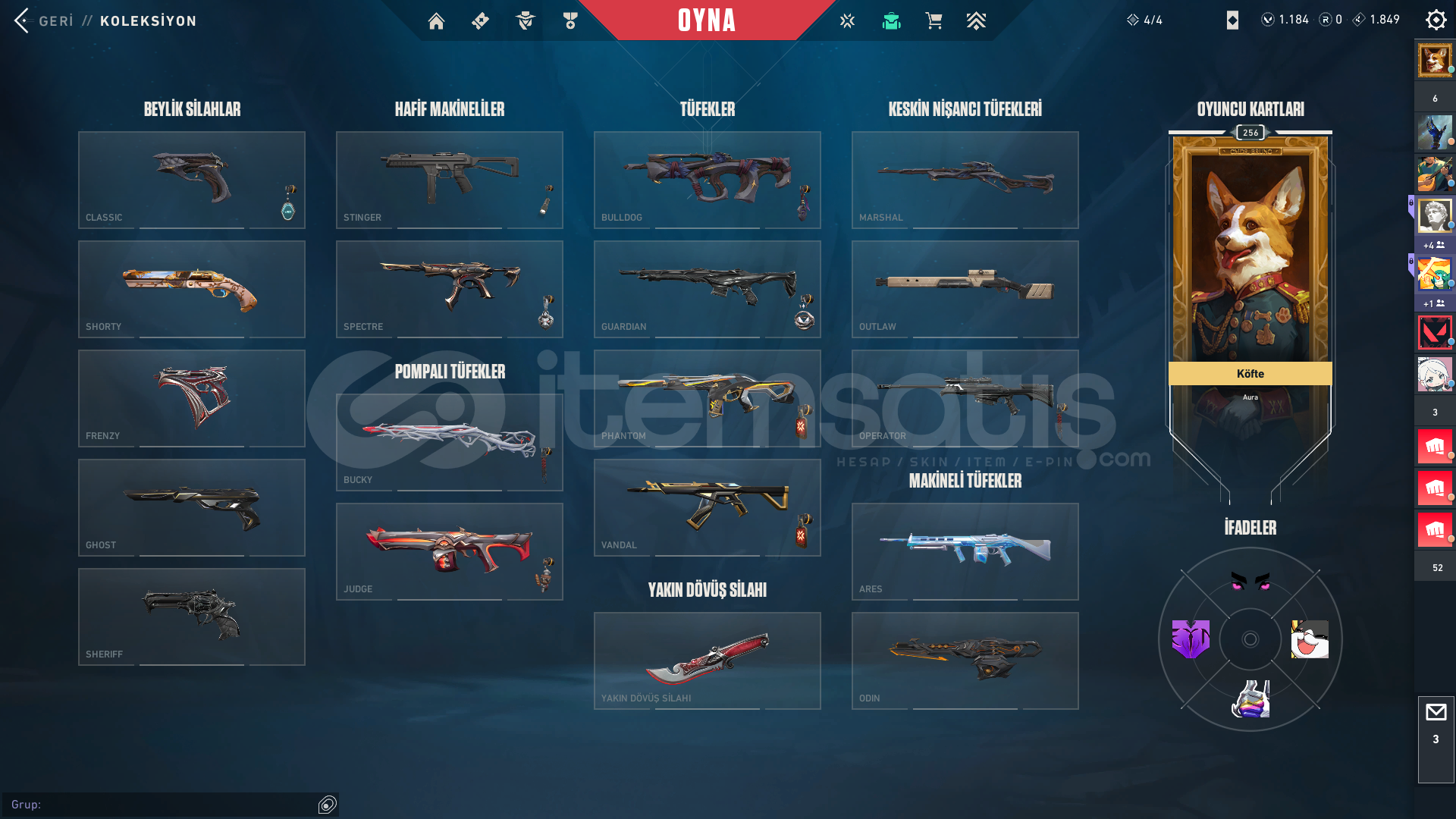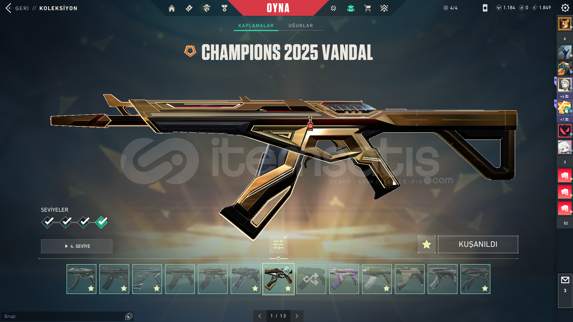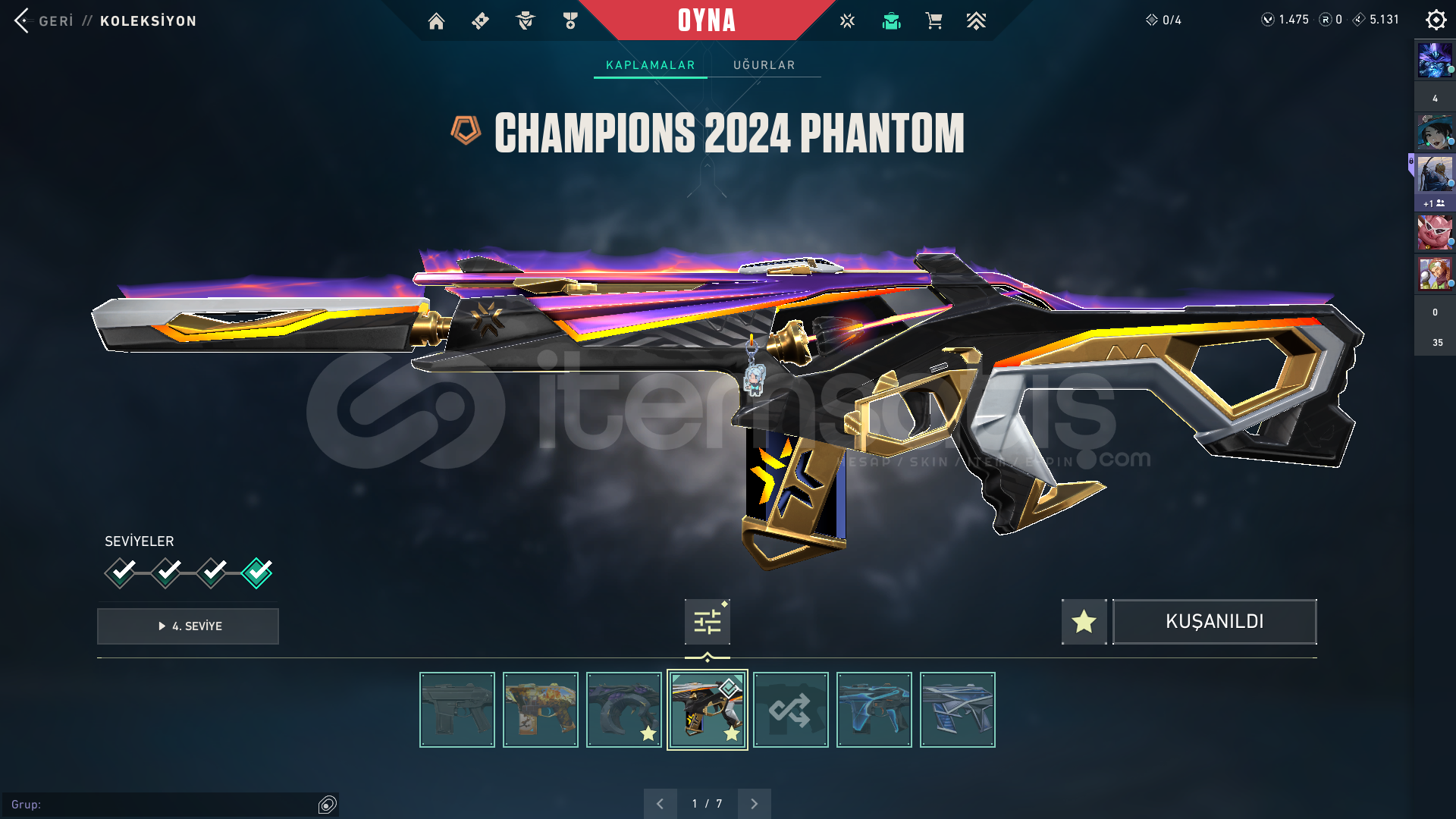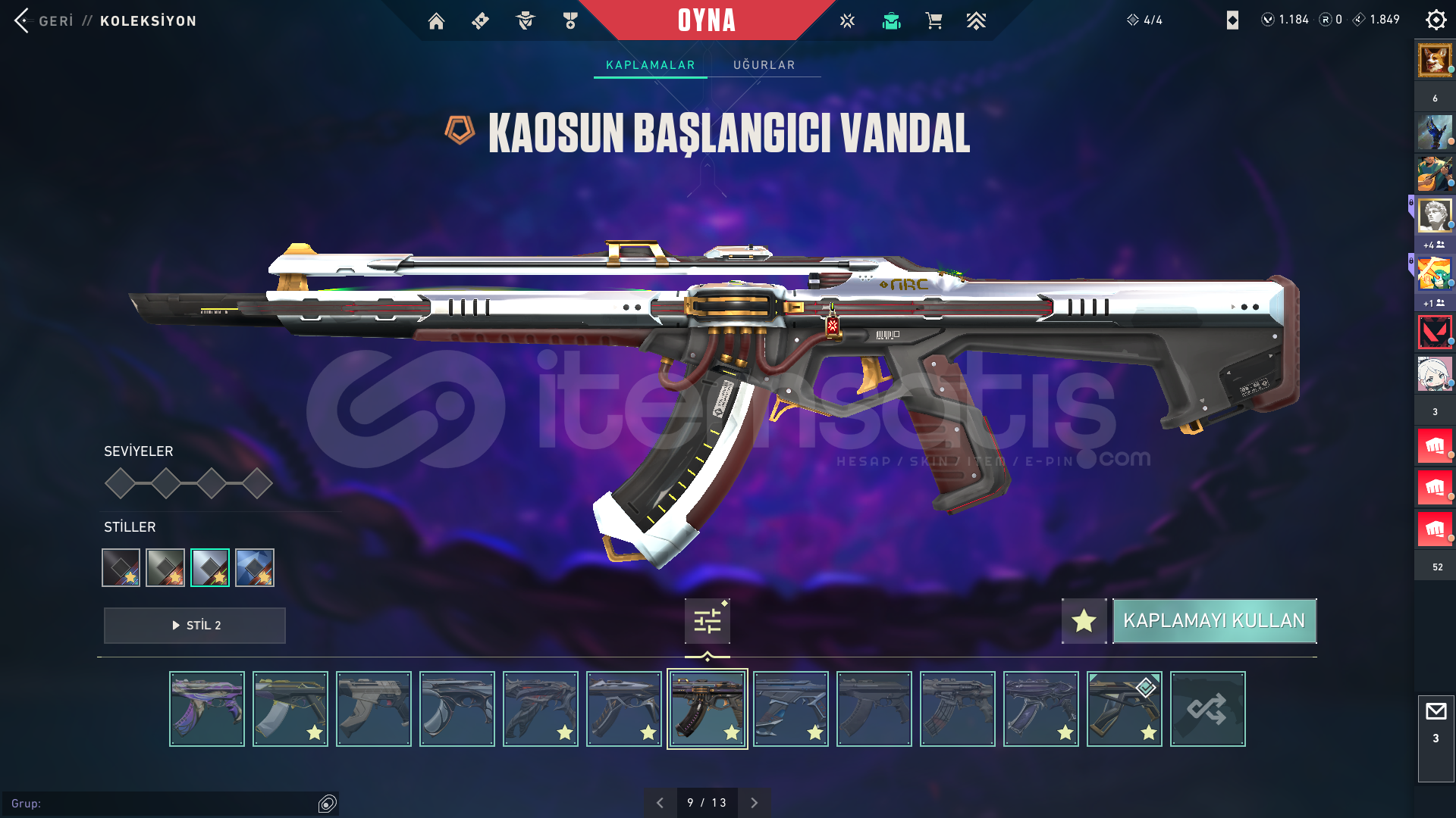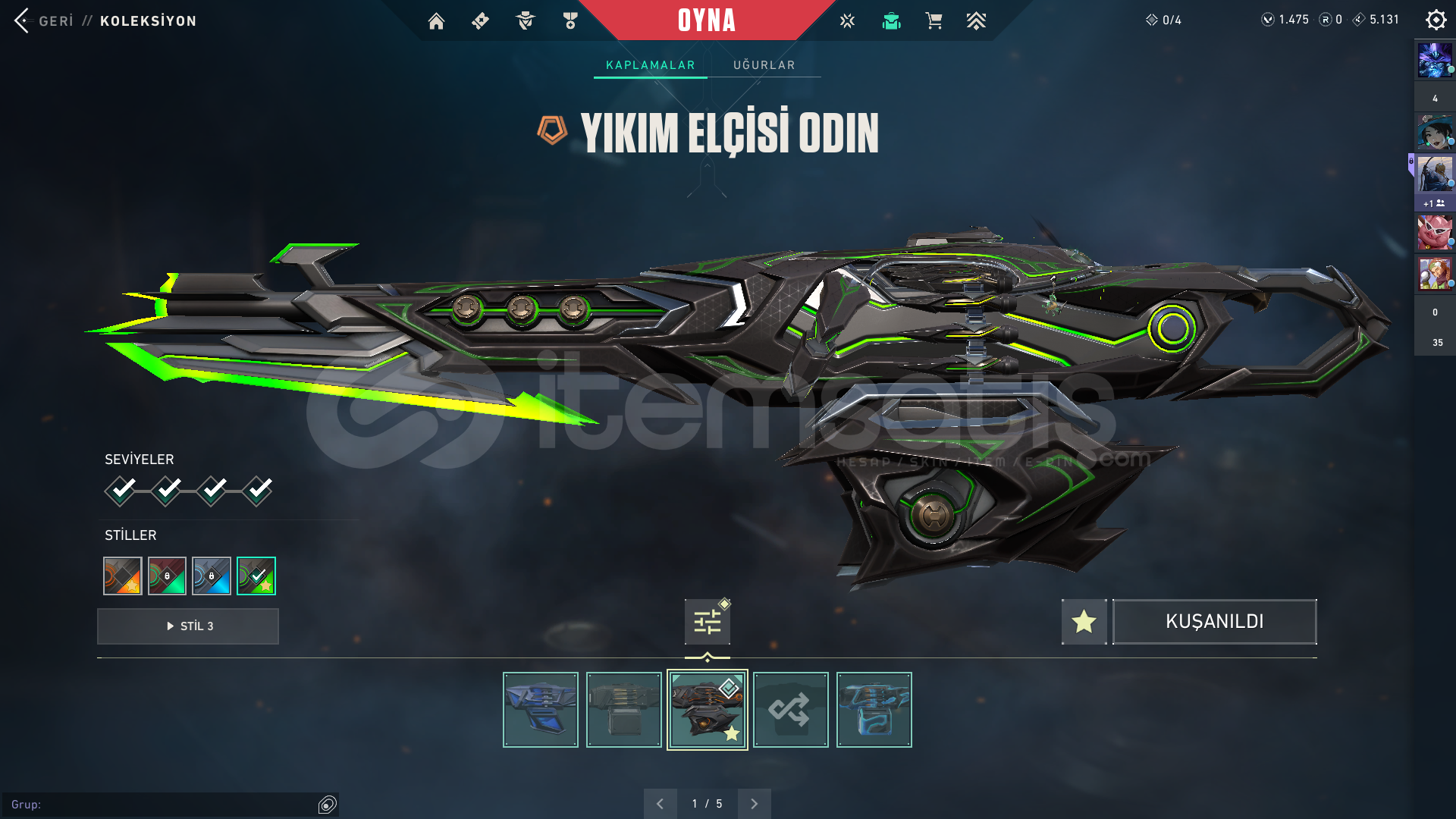 Işık muhafızları vandalEvrim vandalYağmacı vandalAsil vandalFelaketin kalbiKaos vandal Kuronomi vandalChampions 2025 vandal...Champions 2024 phantomZifiri phantom...Yağmacı guardian...Zifiri bulldog...Gaia bucky...Helezon spectra...Zifiri marshal...Yağmacı operatör...Yıkım elçisi odin...Yağmacı şheriff ...Ulupençe ghost...Fatih frenzy...Zifiri classic...5 yers beta remastered bıçak...