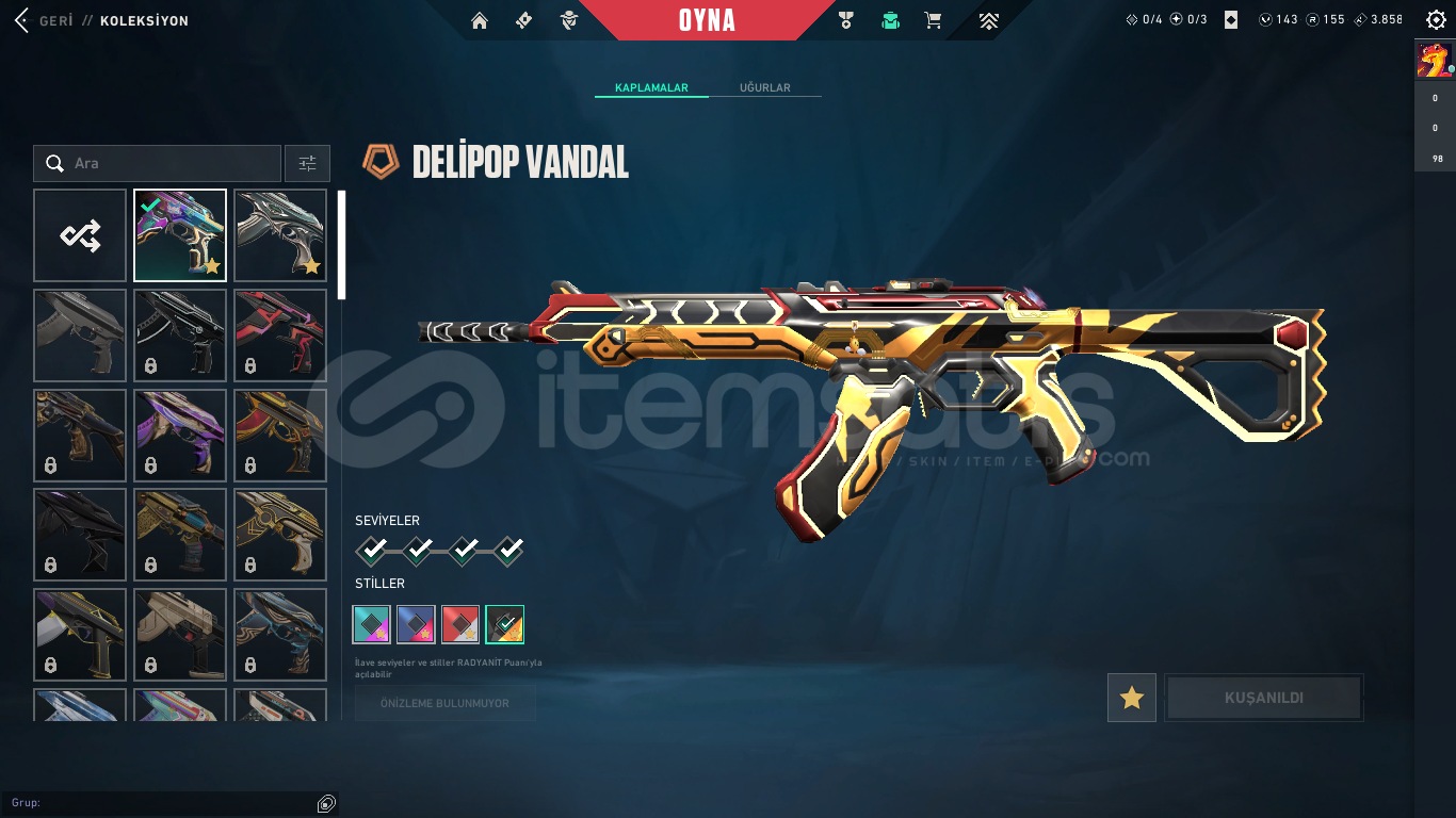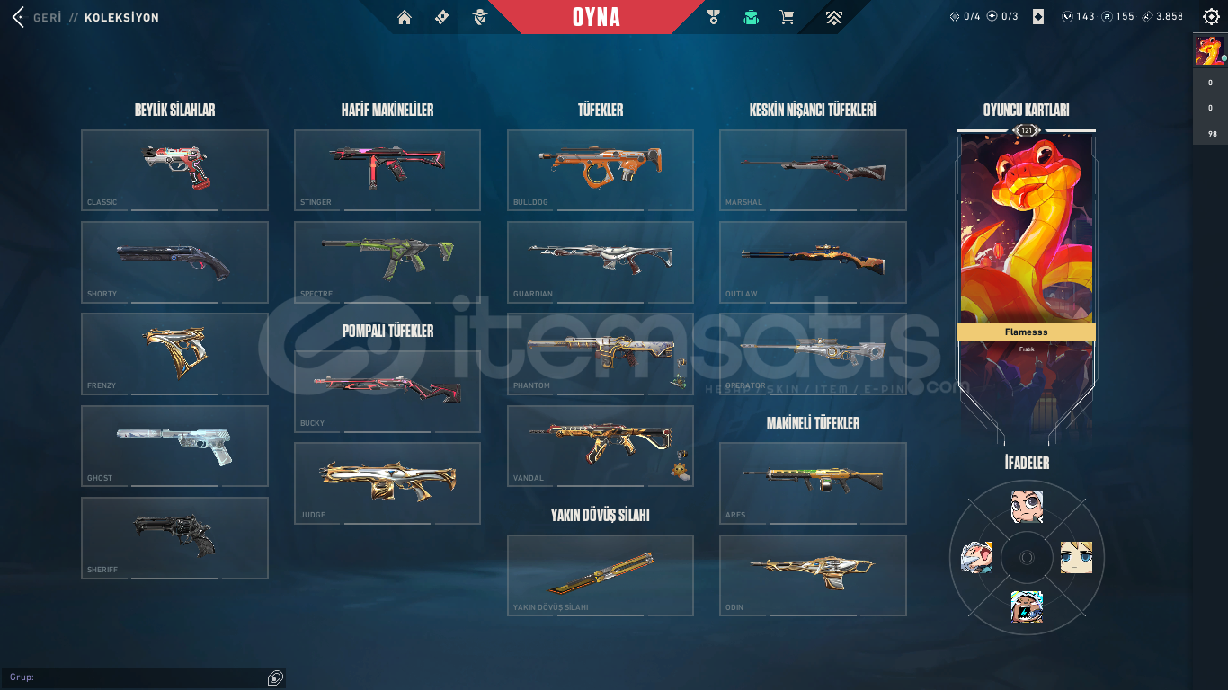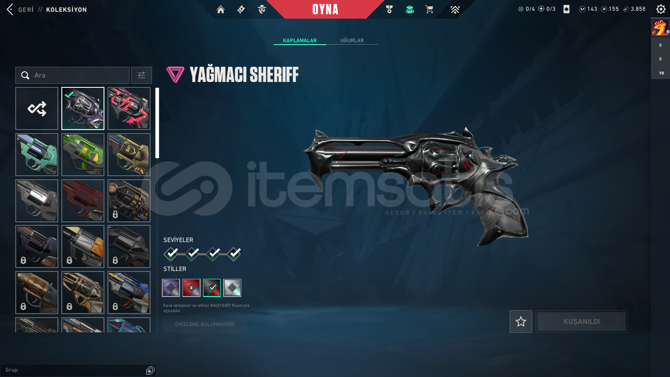 Valorant Hesap içerisinde birçok silah koleksiyonu bulunmaktadır tüm silahlarda birden fazla silah skini var.