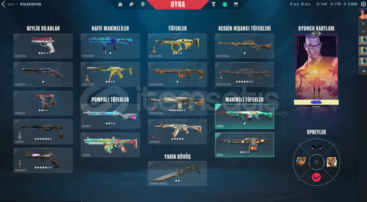 Bıçaklar: Yağmacı karambit - Özel harekat kelebek - Uzaylı avcısı bıçağıVandallar: Yitik vandal - Yağmacı vandal - Asil vandal - Ejder vandalPhantomlar: Asil Phantom - Oni PhantomSheriffler: Anomali Sheriff - Yağmacı SheriffOPler: Ejder op - İyon opGhostlar: Yağmacı ghostHarici olarak 4 adet battle pass alınmıştırValorant hesabı ile birlikte lol hesabı hediye olarak ge...